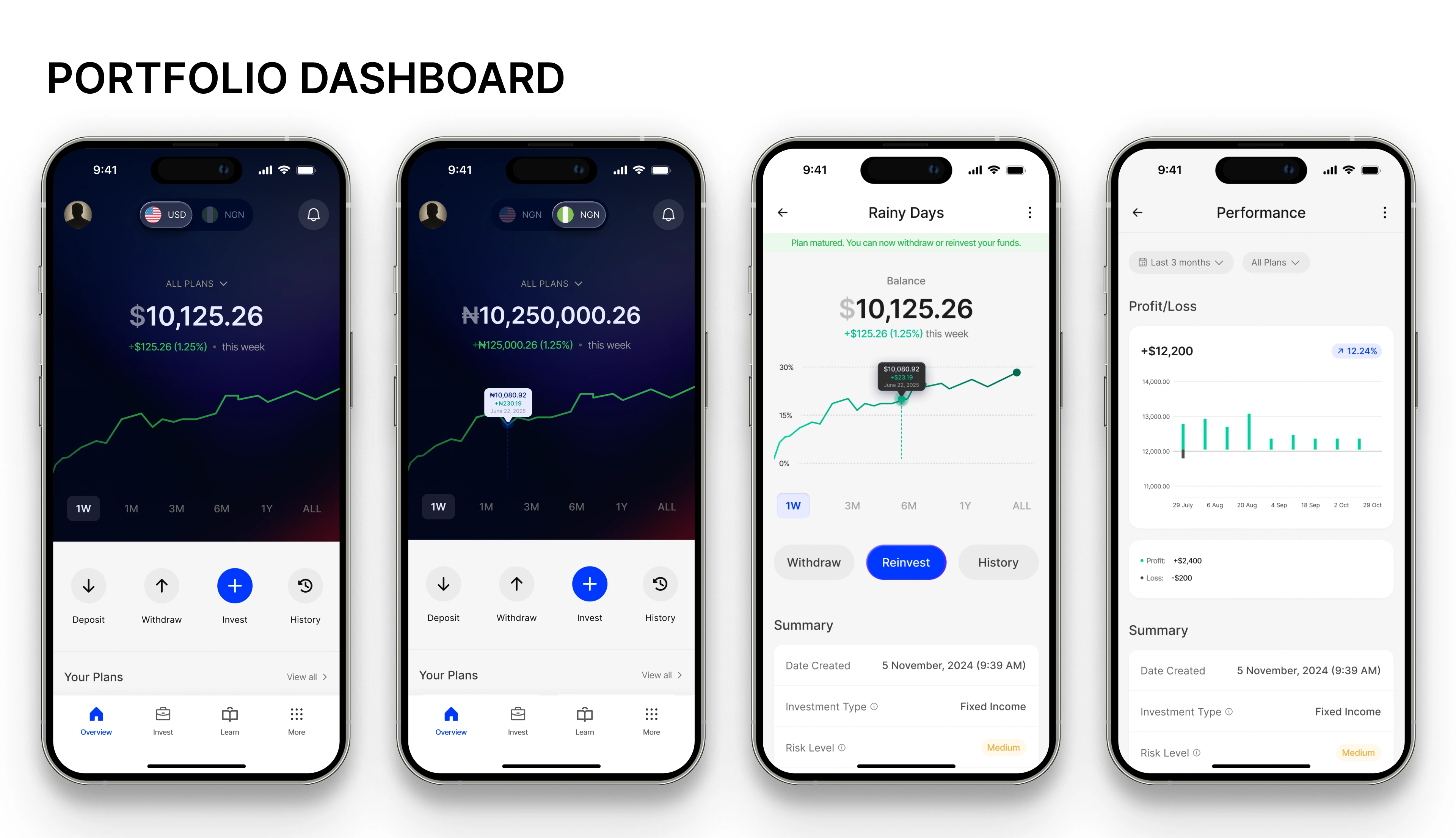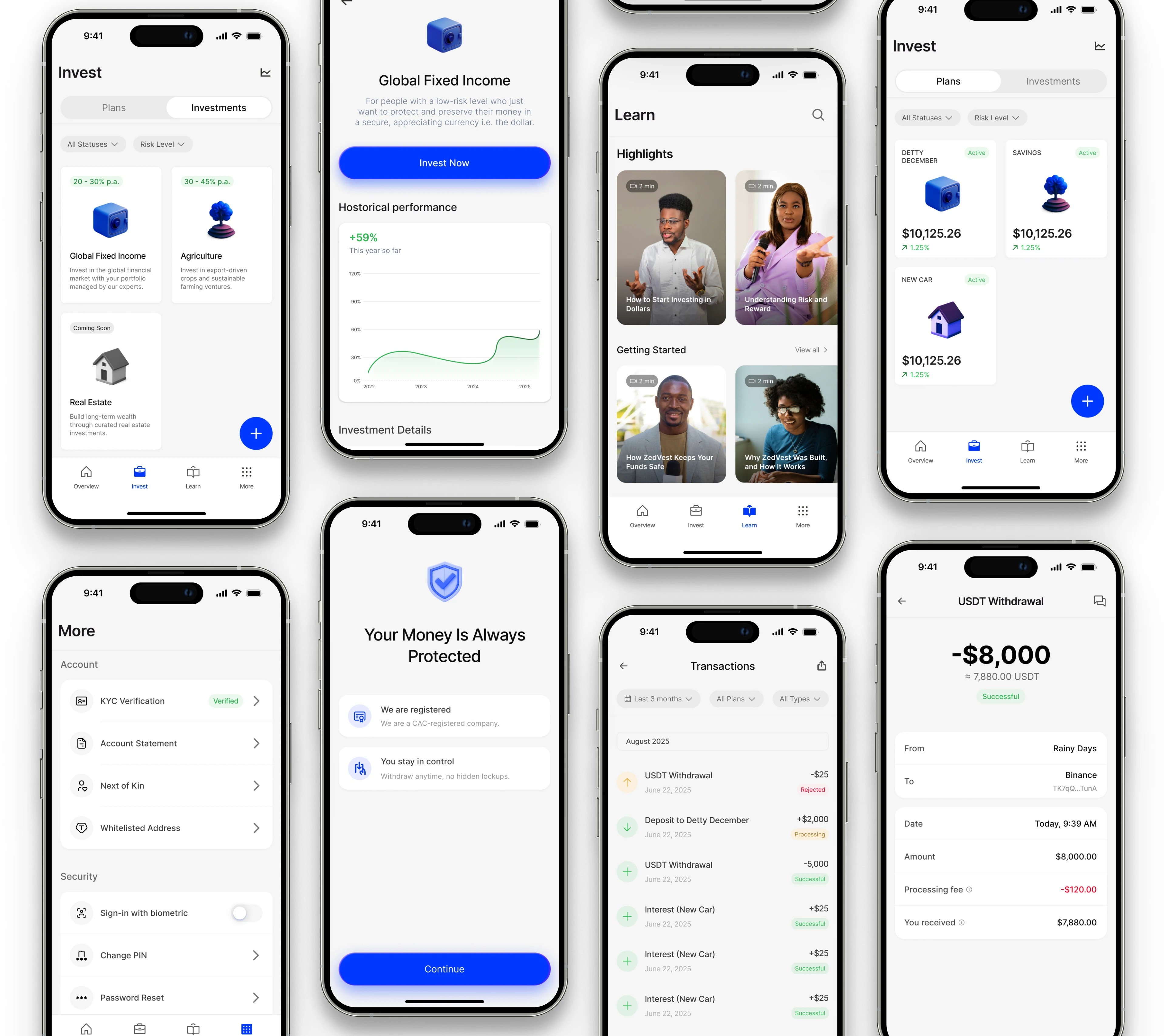 My role was to design the end-to-end user experience, from onboarding and funding flows to investment discovery, performance monitoring, and withdrawals. The goal was not only to create an intuitive interface but also to tackle systemic barriers to investment: lack of trust, limited financial literacy, and the friction of cross-border transactions.