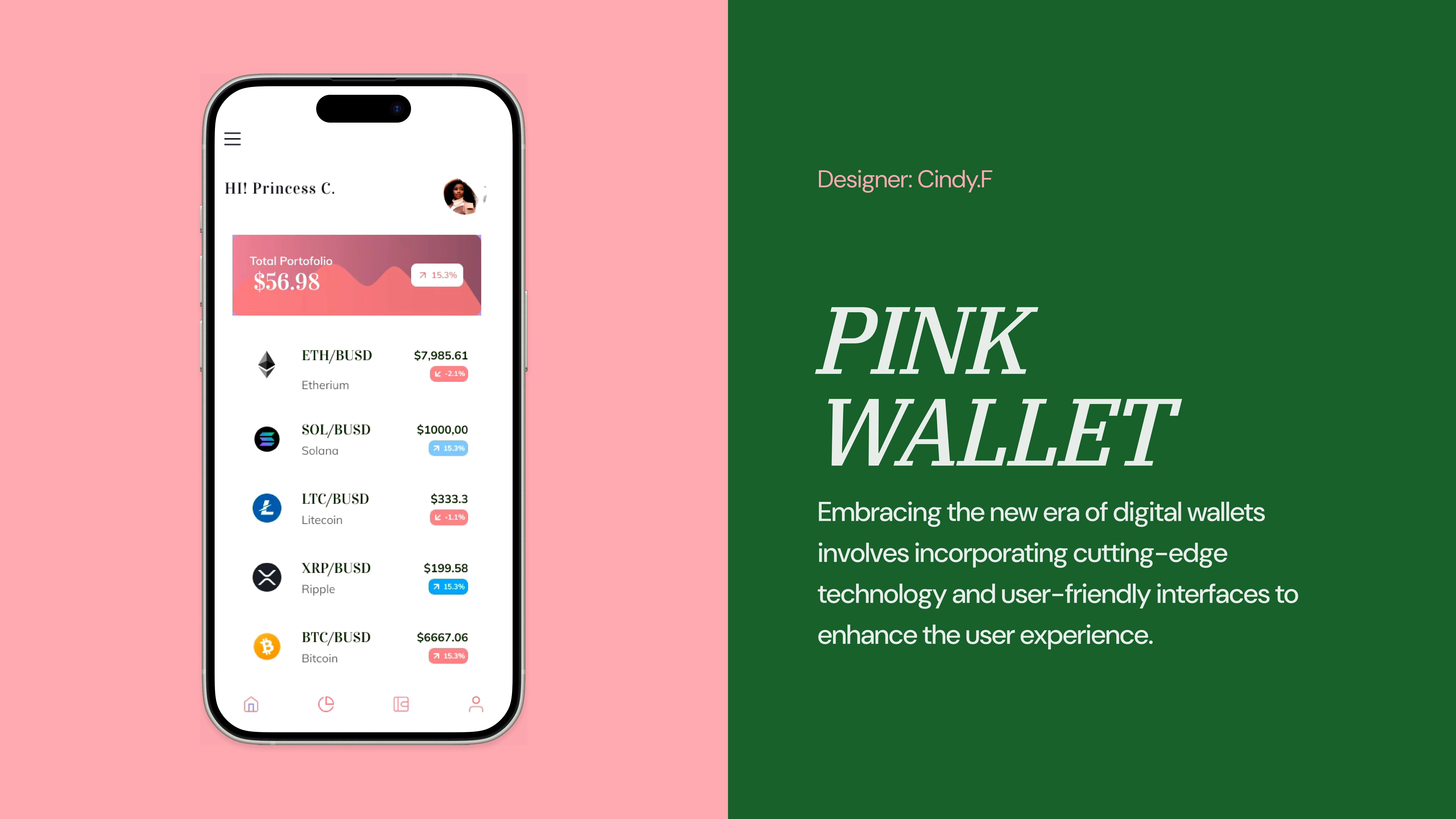 For Pink Wallet, I designed the complete UI/UX with a focus on clarity, modern aesthetics, and usability.