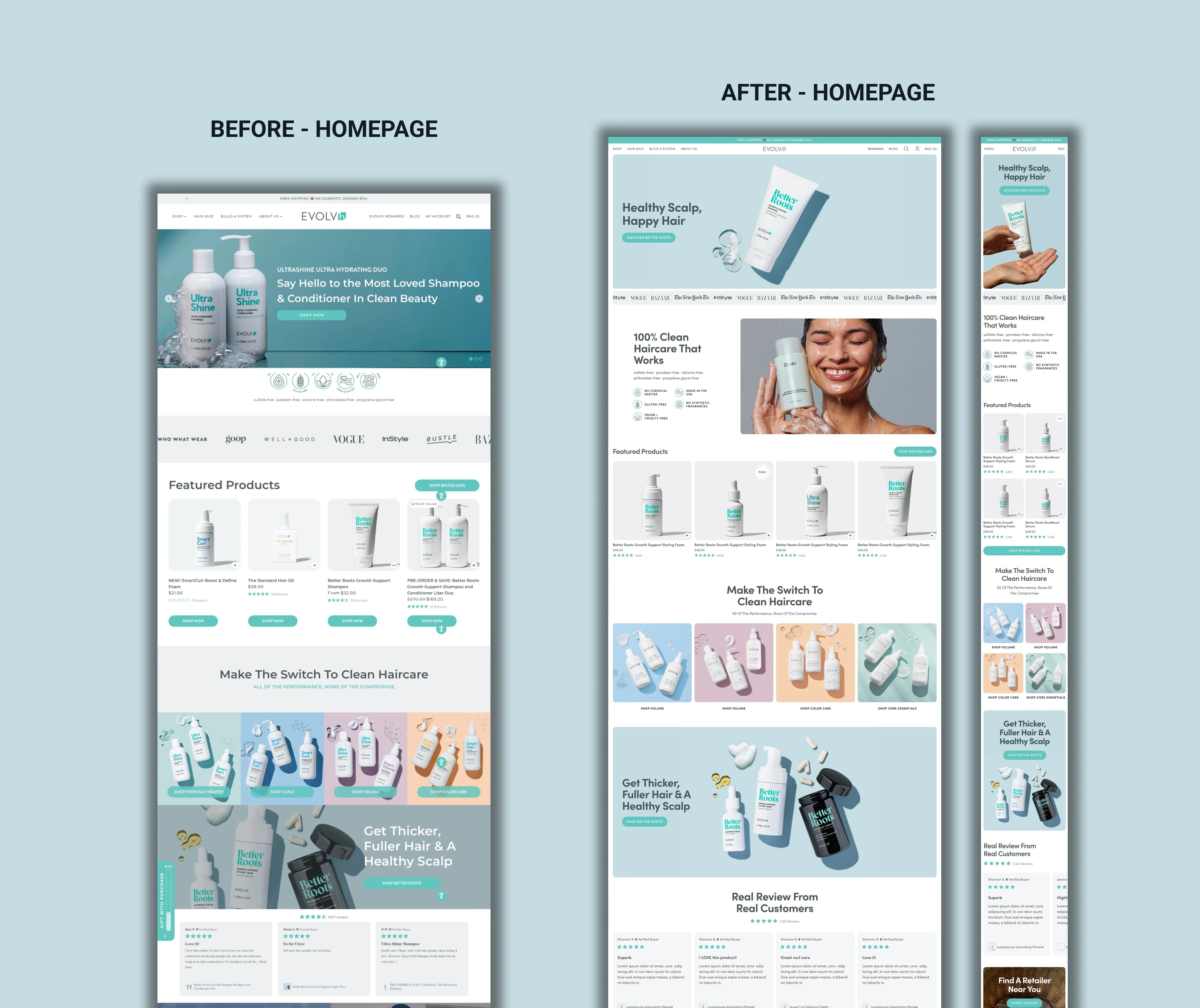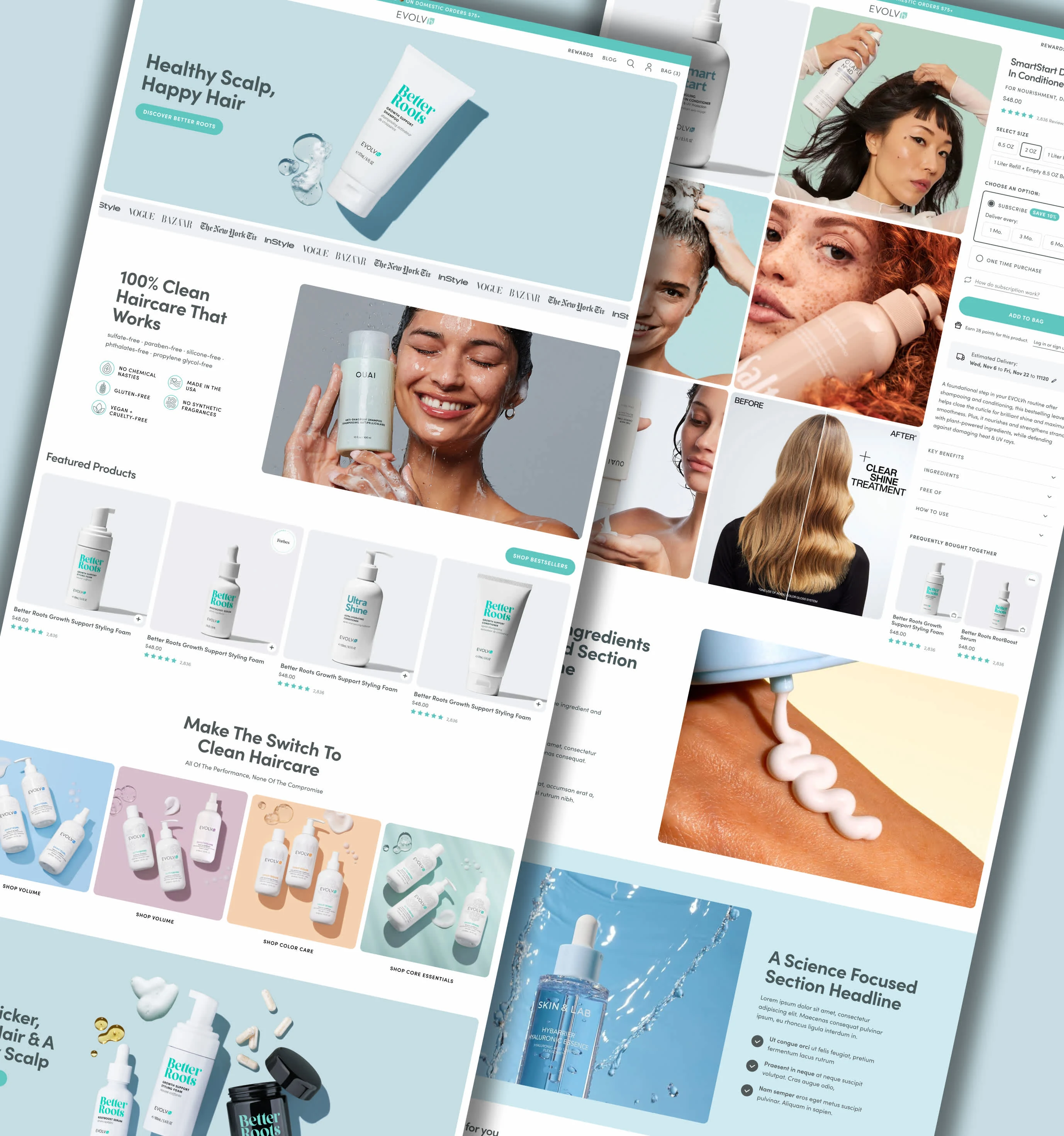 EVOLVh is a premium haircare brand trusted by wellness-focused women 30+. The site needed visual refinement, improved clarity in decision-making, and more intelligent personalization — all without alienating loyal repeat customers. Assets included a brand guideline deck, new product photography, and strong internal clarity on business goals.