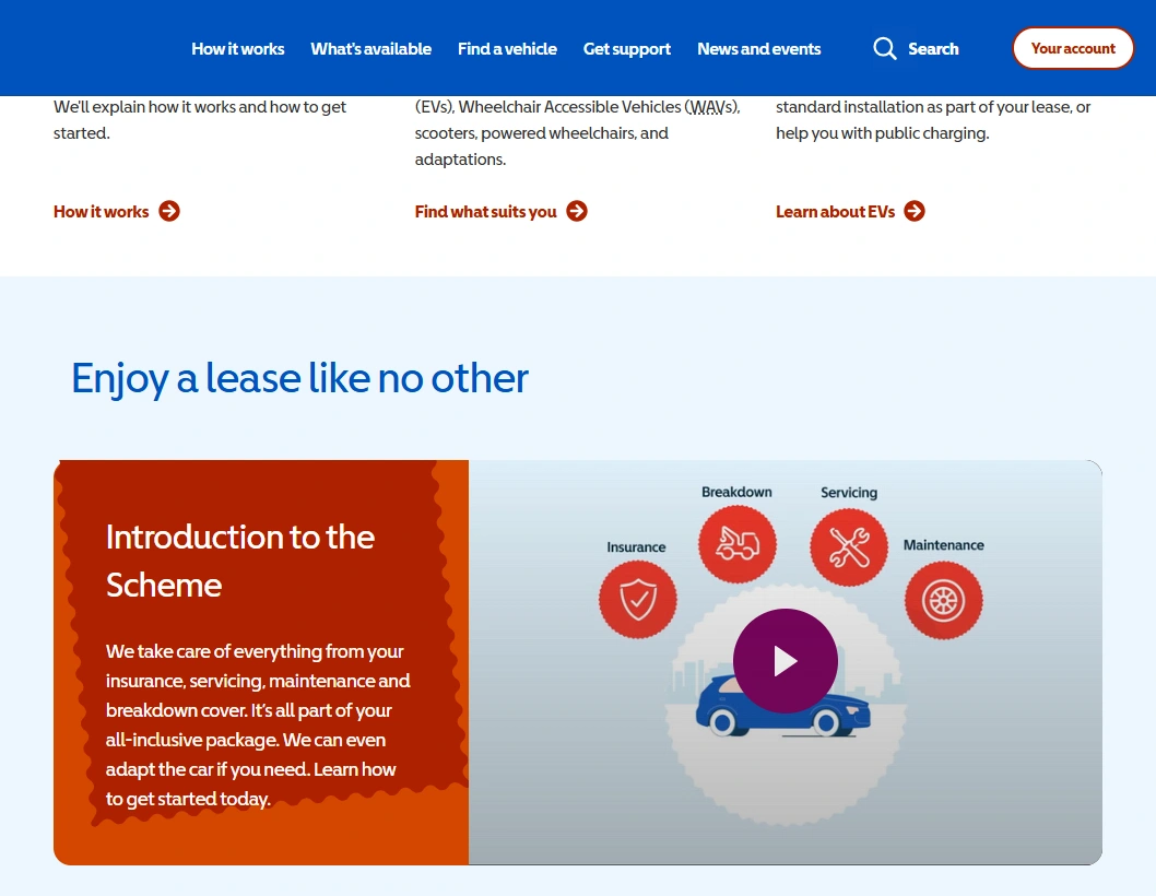 Built a comprehensive online portal for a government-backed mobility scheme, designed to help eligible users access vehicle leasing services, including cars, scooters, and powered wheelchairs. The platform emphasizes usability, accessibility, and clarity, ensuring all users can navigate the site effectively and find information or services quickly.