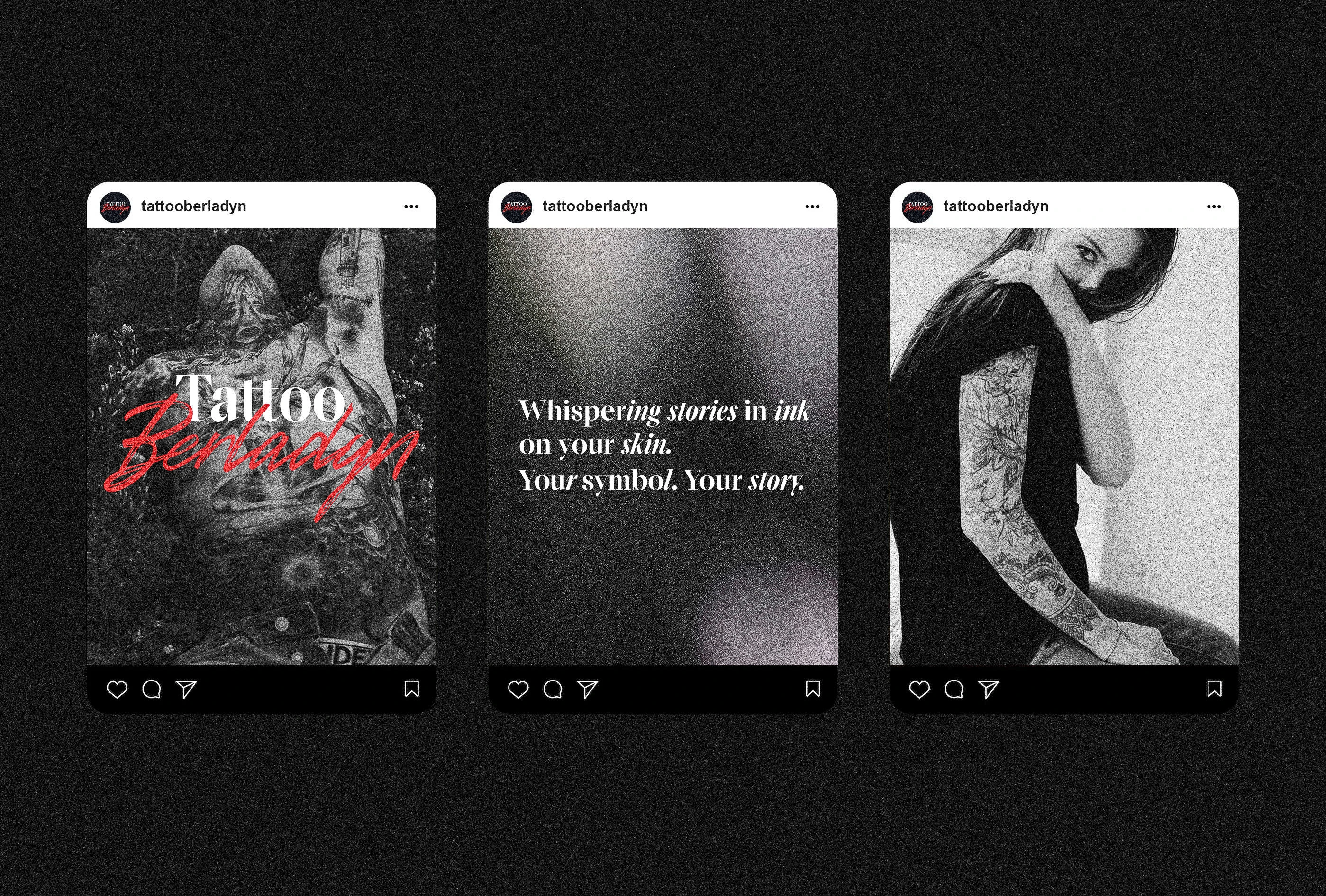 Created brand identity for Tattoo Berladyn: logo, colors & fonts, social media style (posts & stories), and business card design