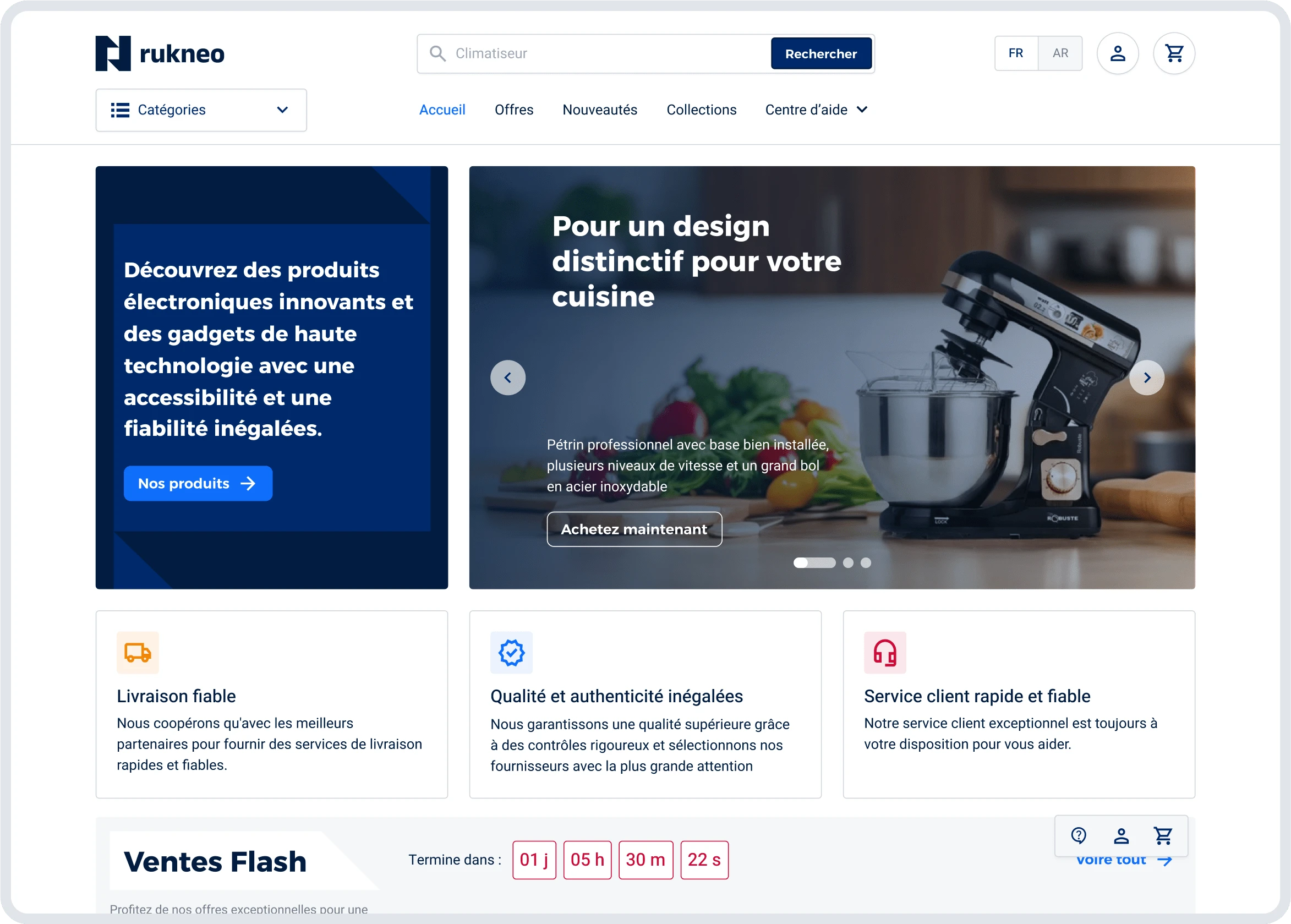 In collaboration with Rukneo, I had the honor of building a product that will elevate e-commerce standards in Algeria. My role encompasses the full spectrum of product design, from strategy to execution, ensuring that the platform delivers an exceptional user experience aligned with the brand's strategy and business objectives.