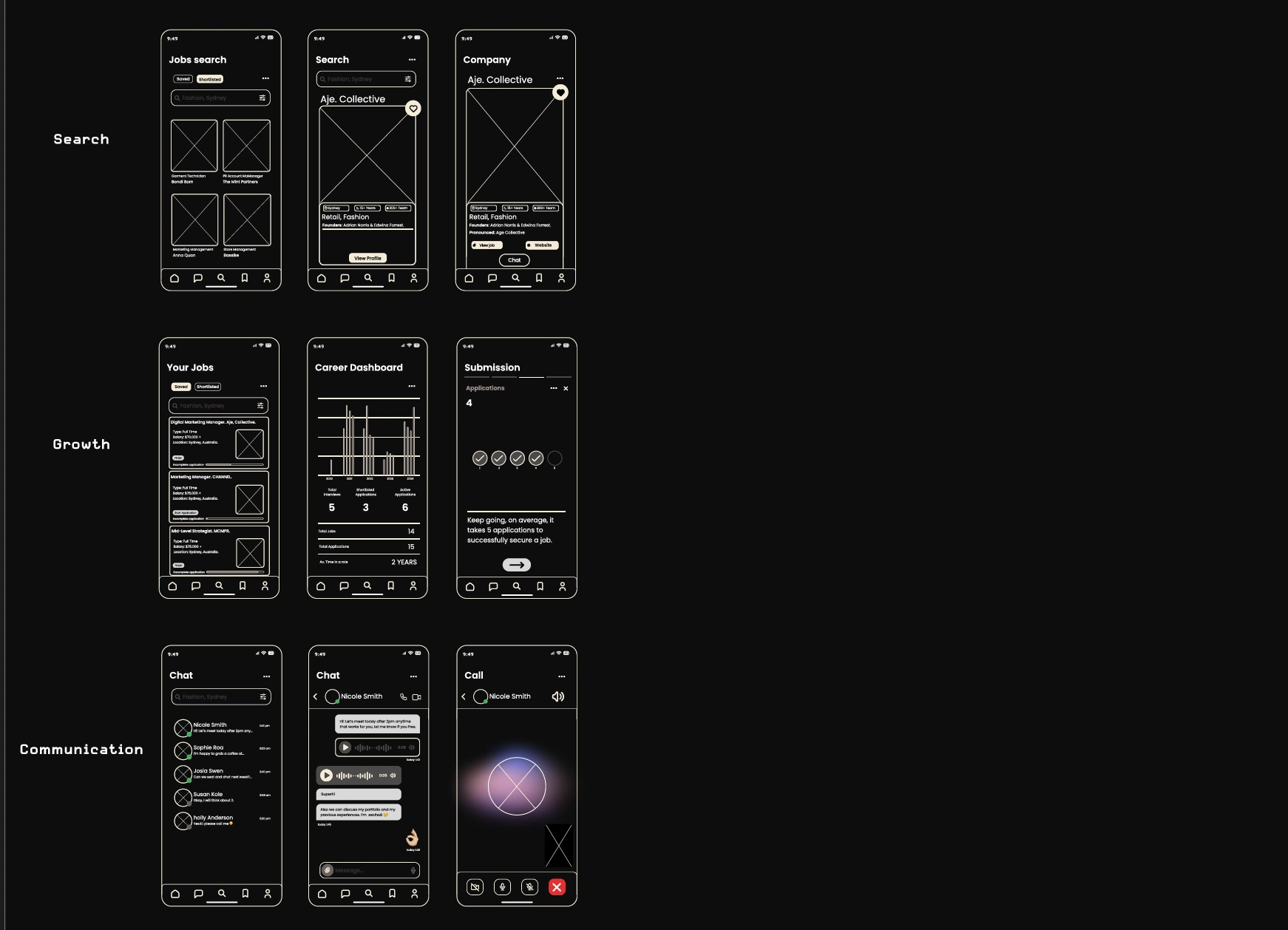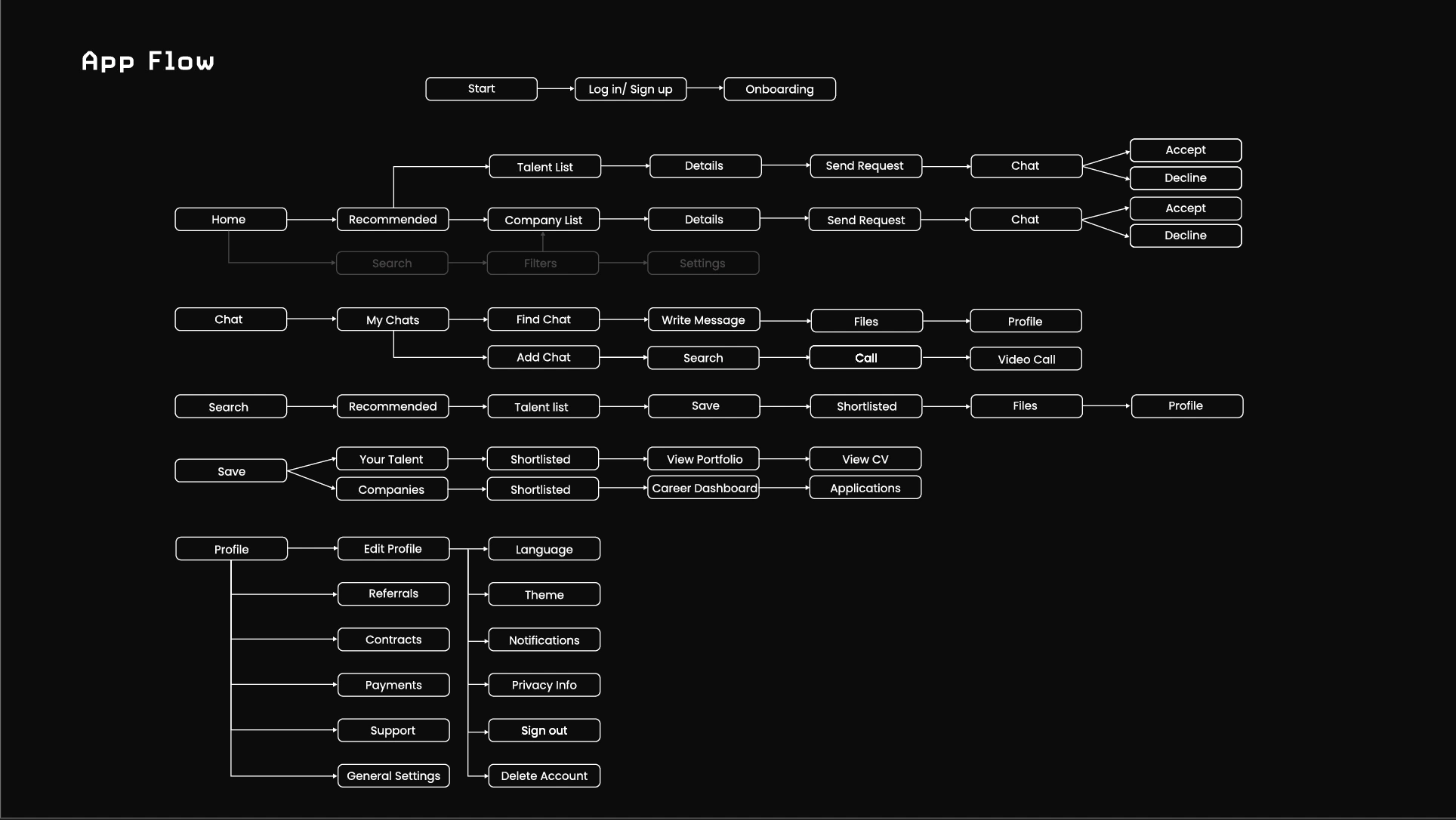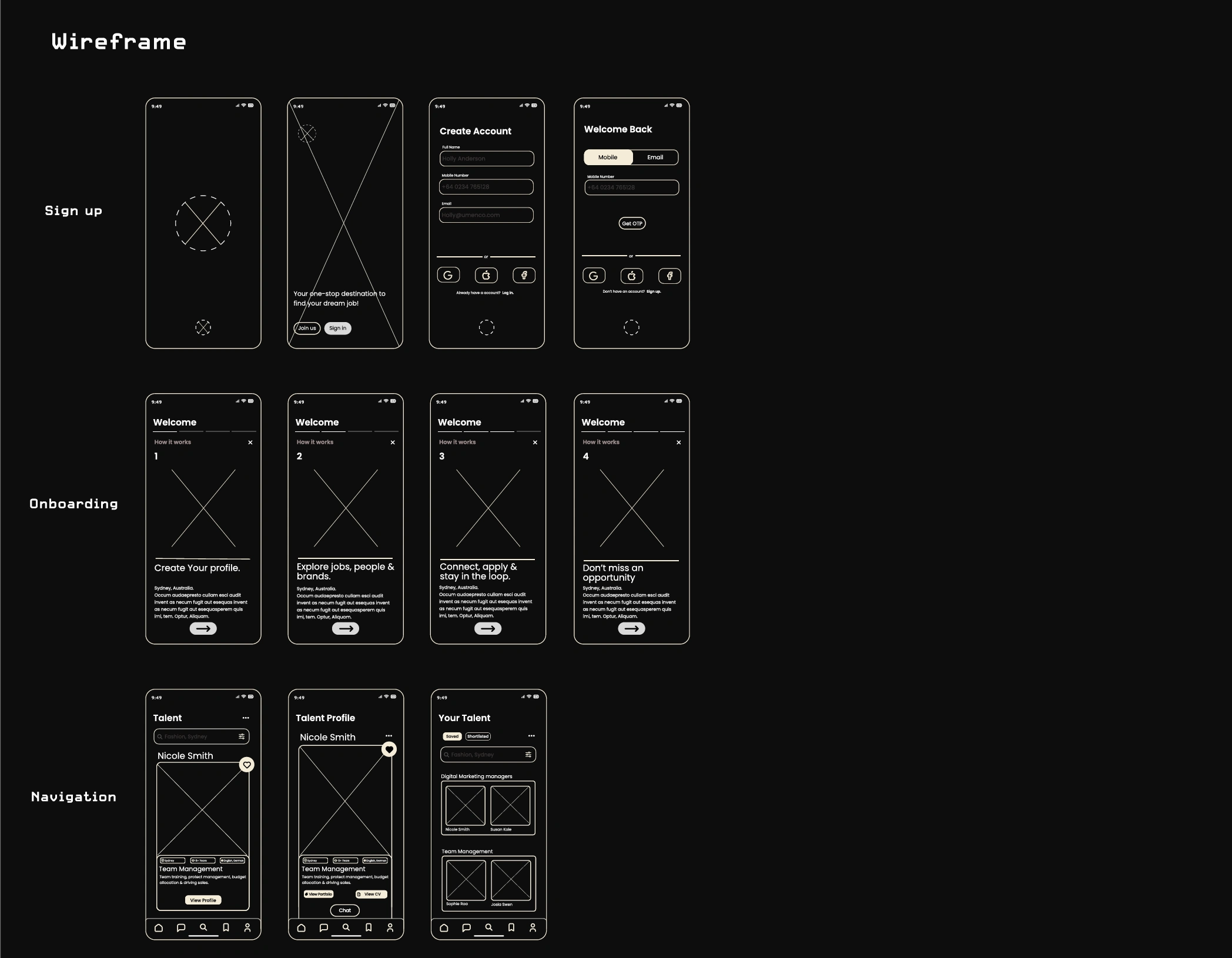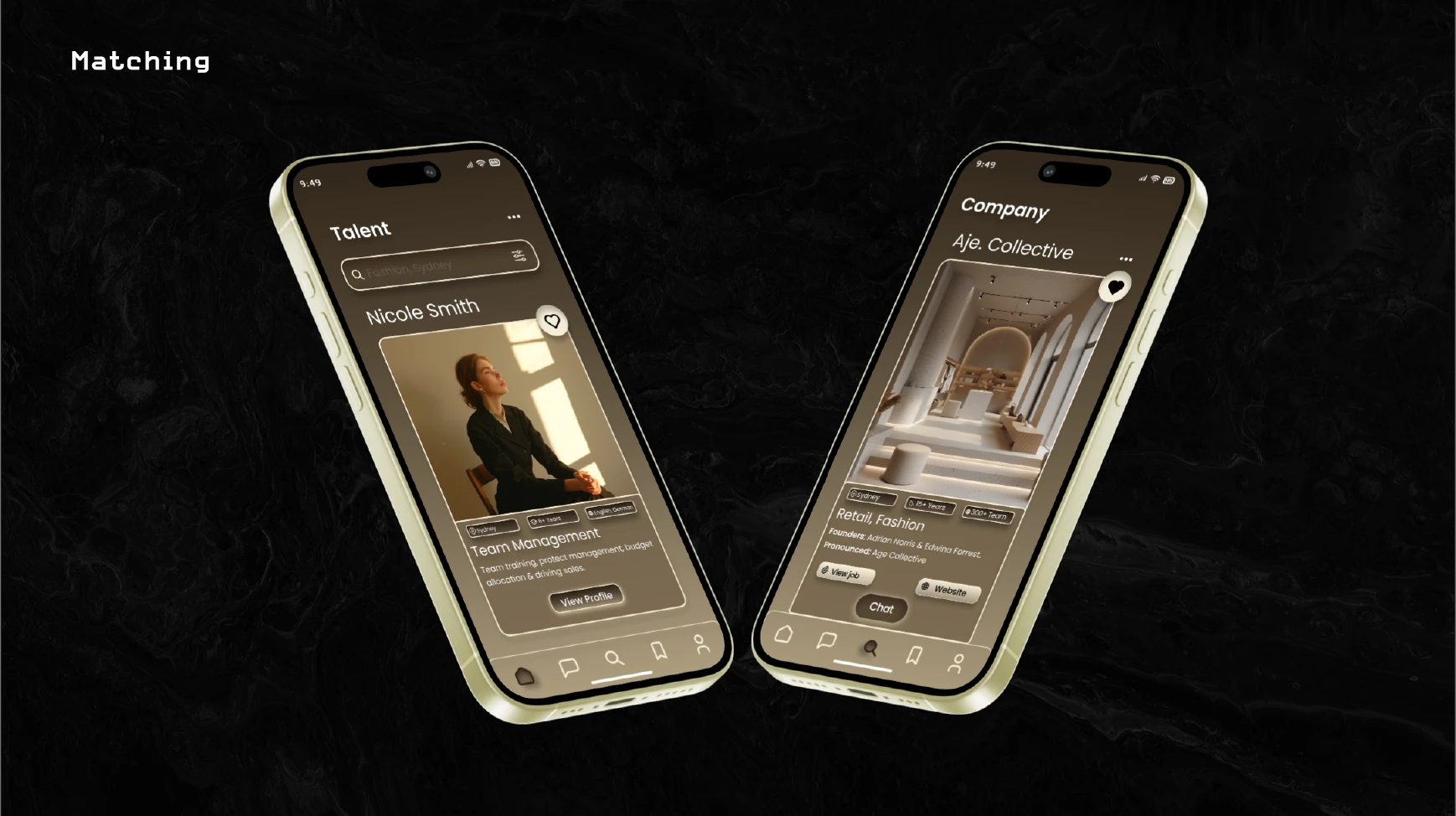 UX design, the idea was to connect talent with industry, taking the concept of matching interests like popular dating apps, but for talent