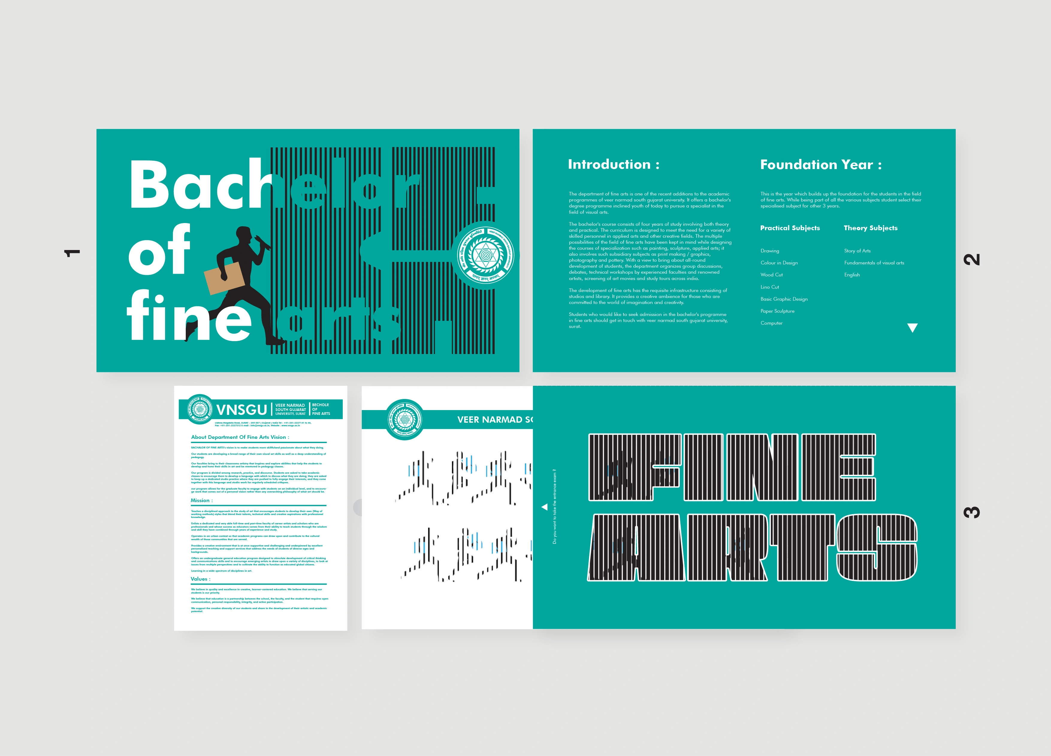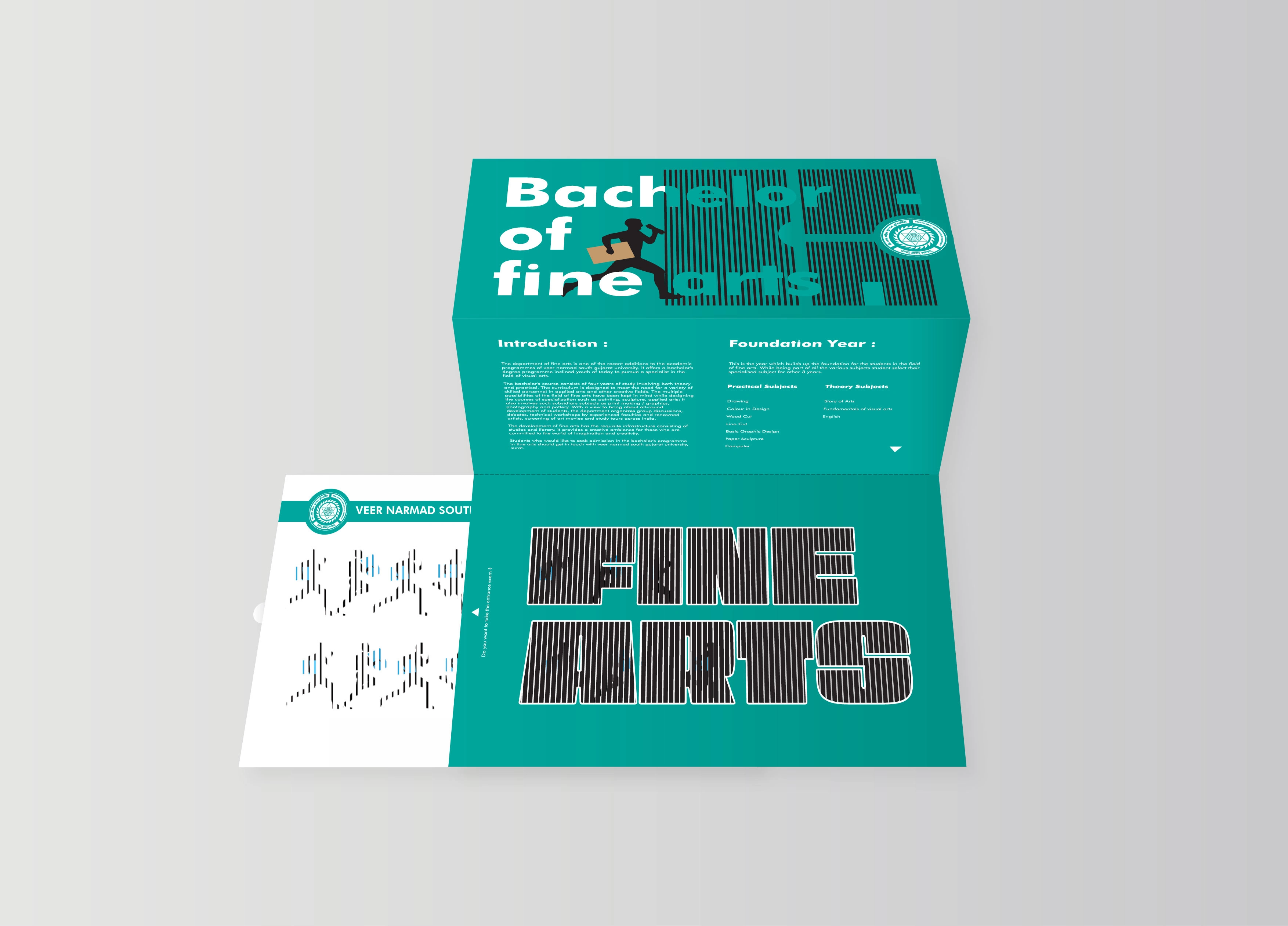 In this Brochure, I have used an optical illusion that represents the brochure of a creative field. In which minimum details are kept so that people come to visit college and “When the Brochure opens, it looks like the student is leaving for a college visit”.