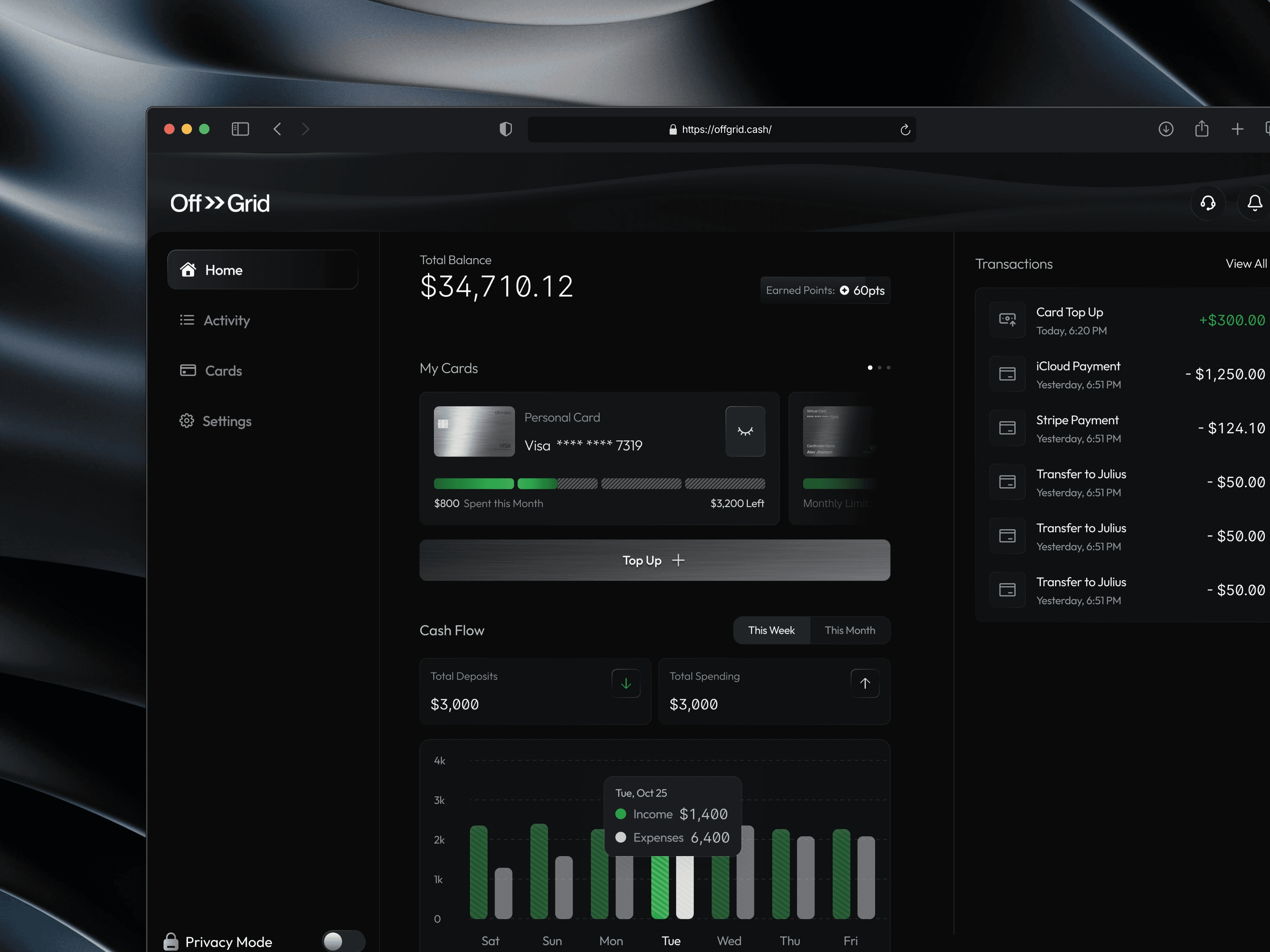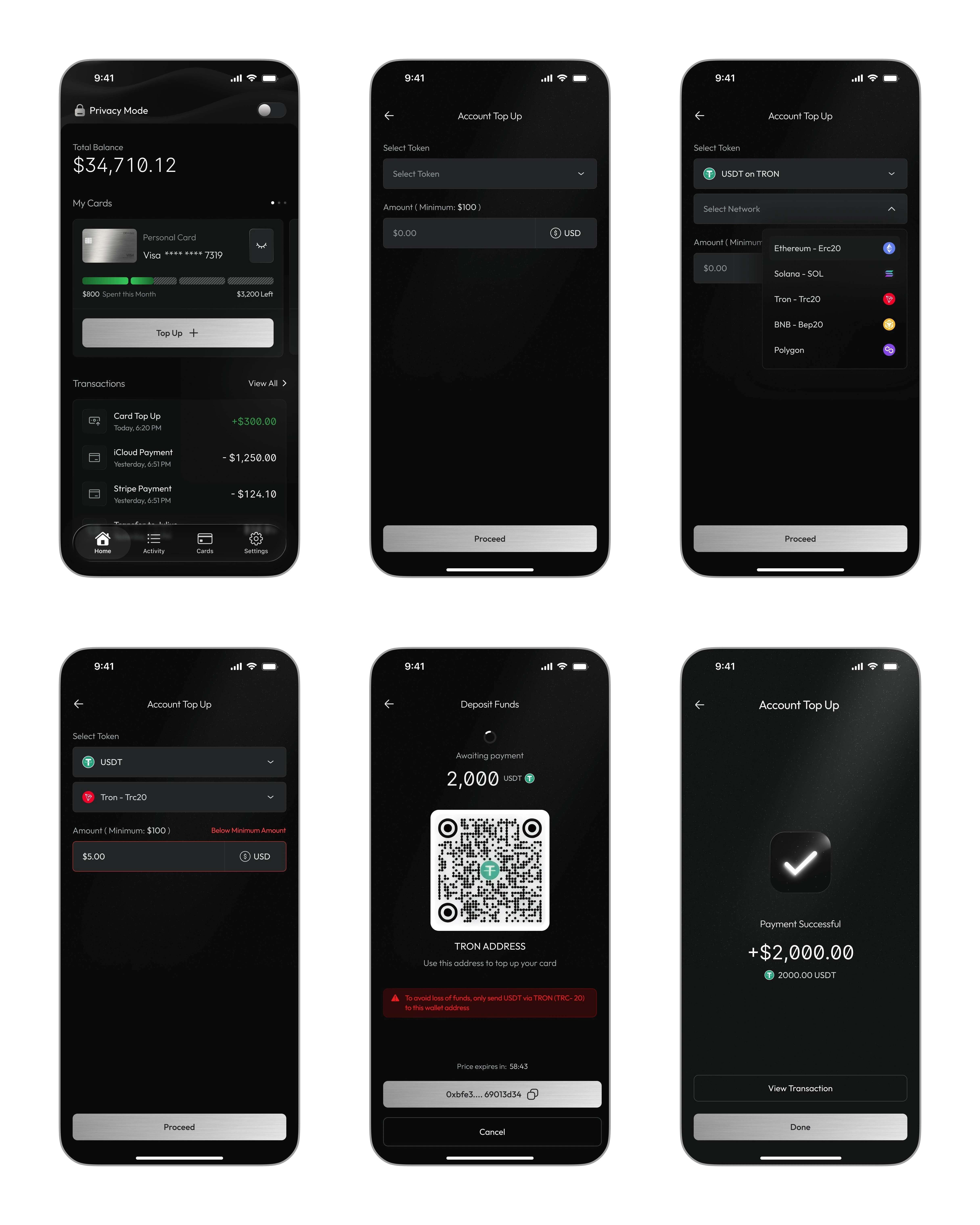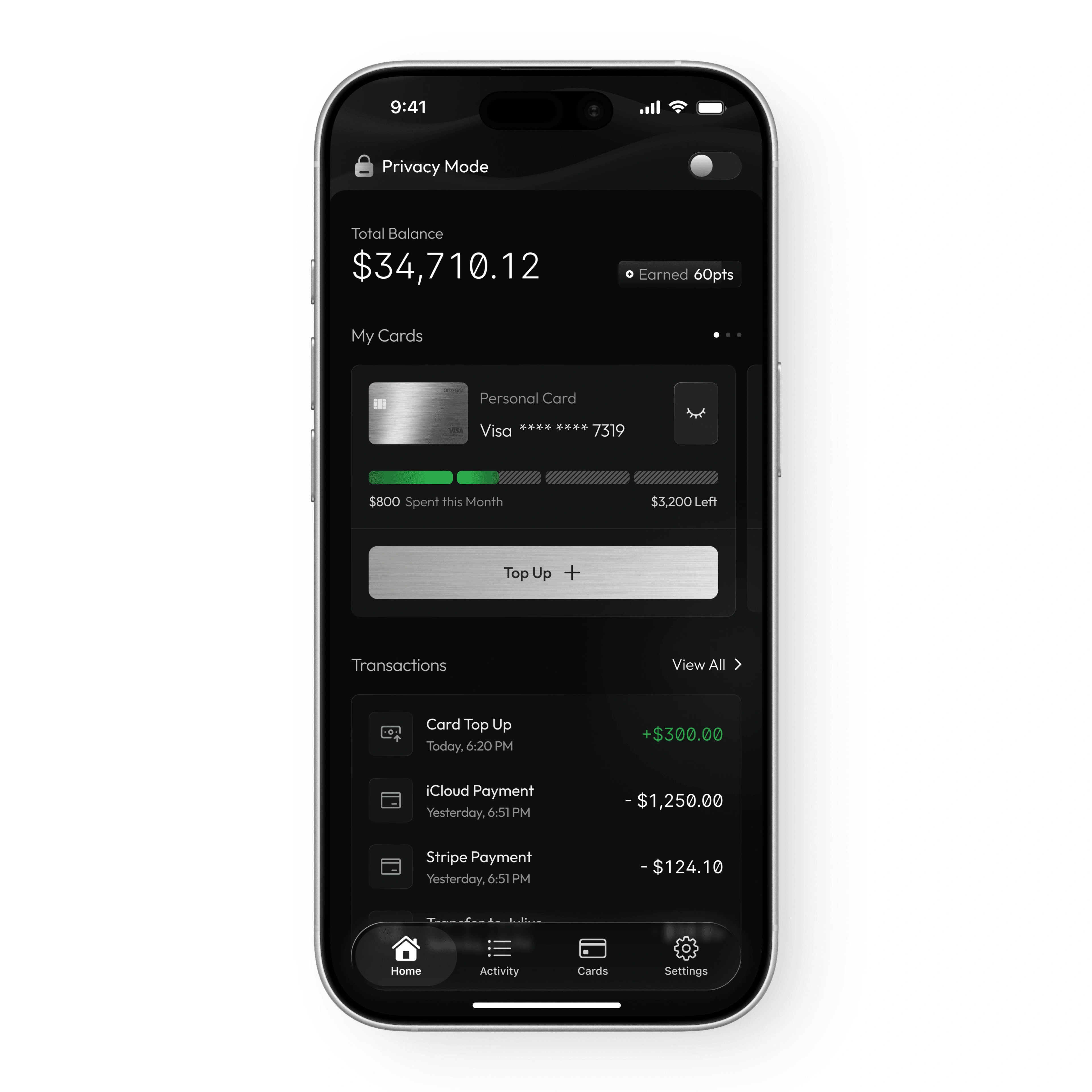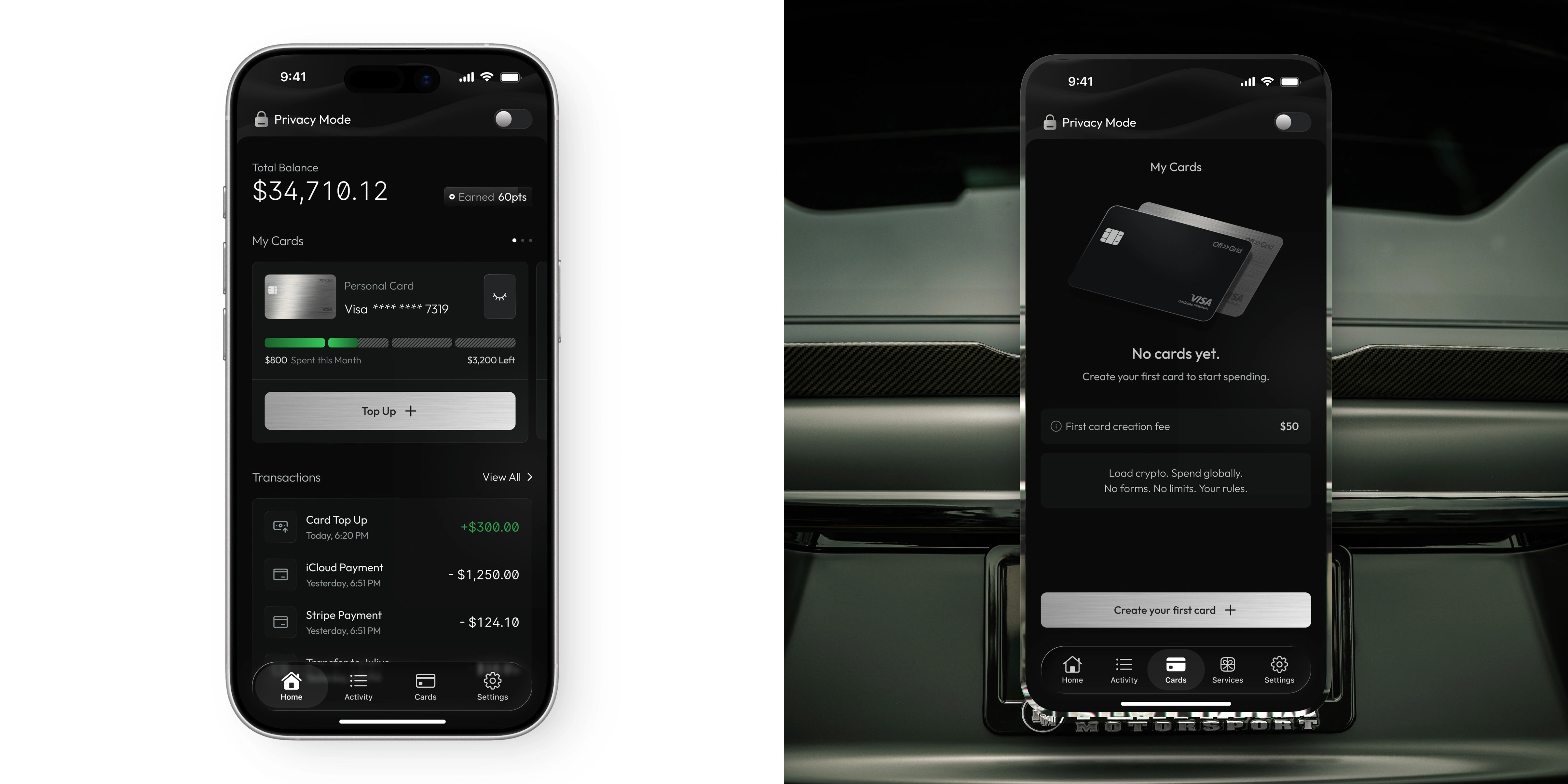 Traditional fintech products are built around identity verification, data collection, and compliance-heavy flows. This creates friction, excludes users who value privacy, and removes control from the user. There was a need to design a financial product that: Minimizes personal data requirements, Reduces onboarding friction and Still feels secure, modern, and trustworthy