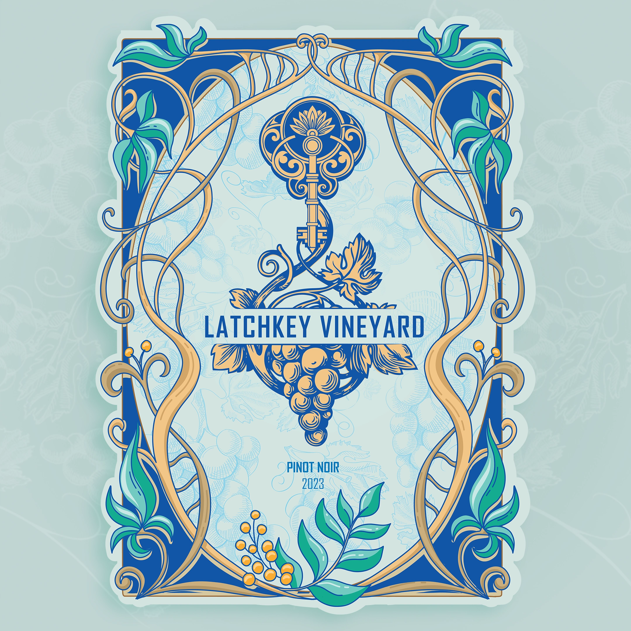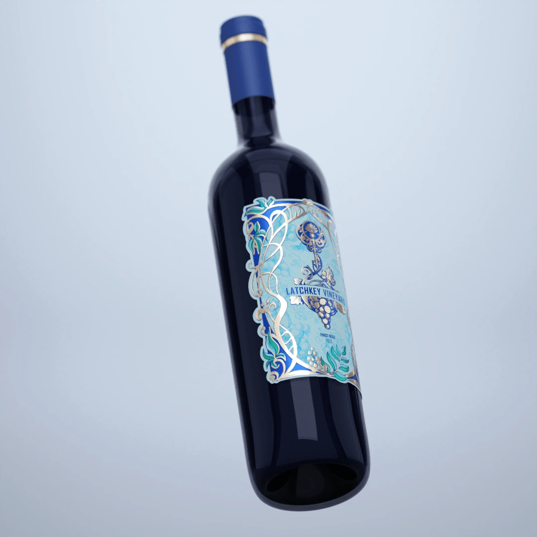 They've been seeking a distinctive and elegant wine label design for Latchkey Vineyard’s 2023 Pinot Noir. The label should embrace an Art Nouveau style.