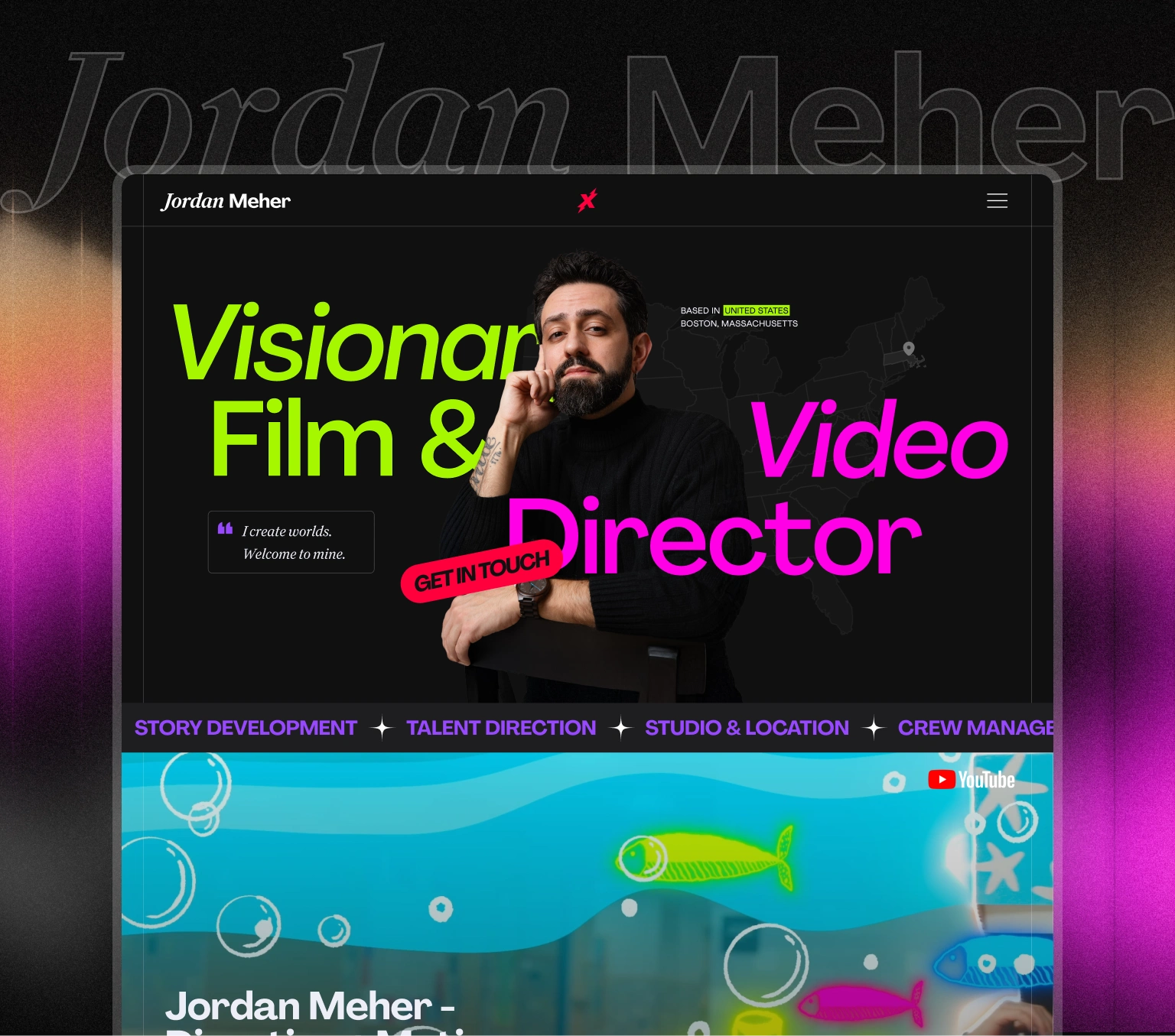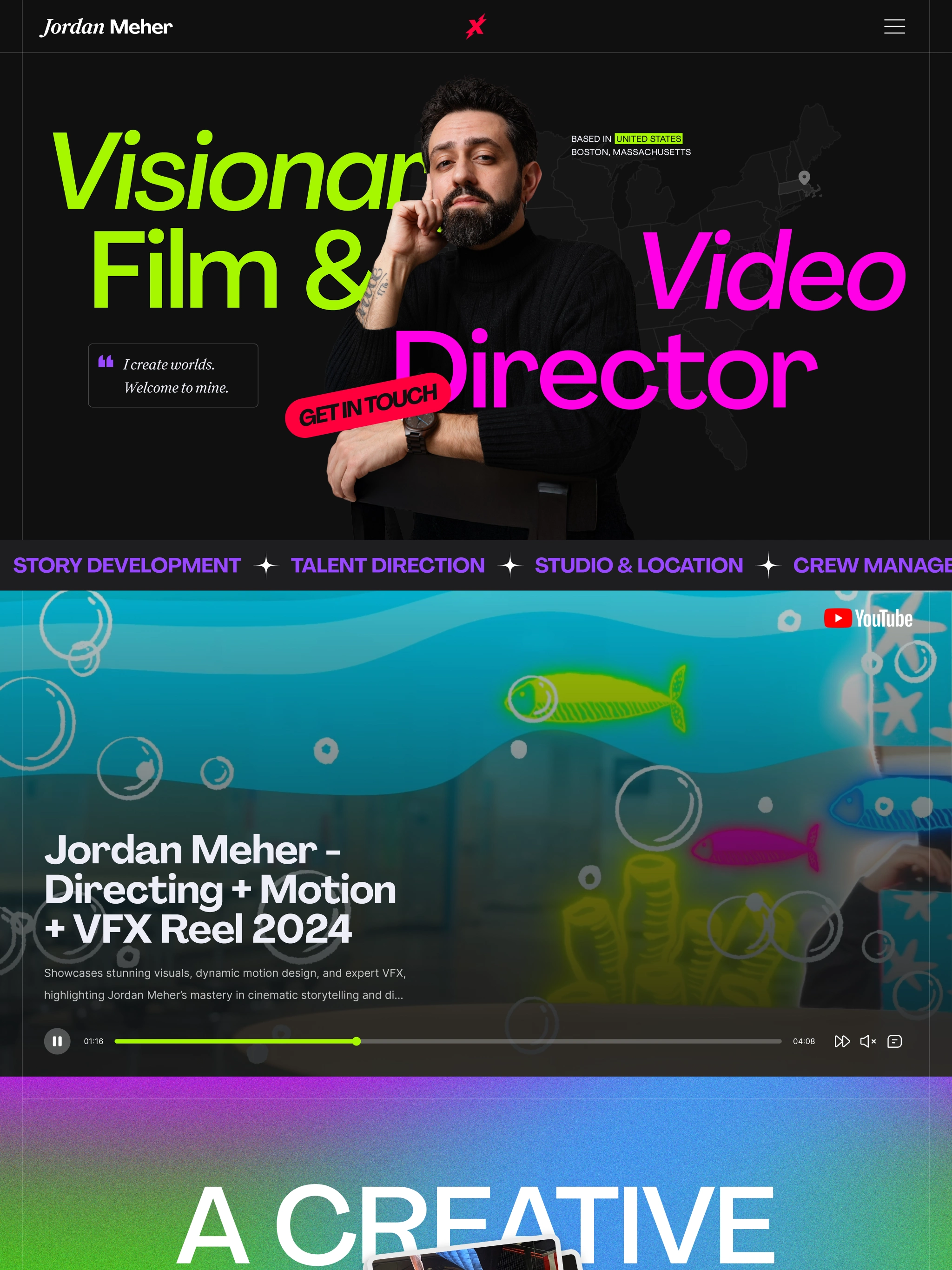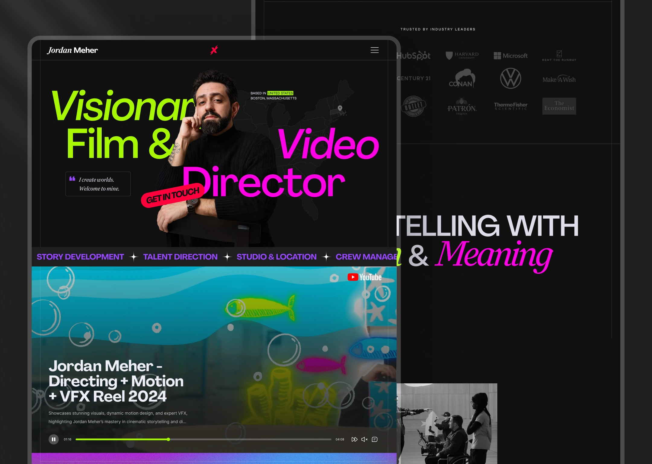 Jordan Meher is an independent filmmaker and creative director based in Boston, Massachusetts, with 15 years of industry experience. Known for producing thought-provoking films, commercials, and animation, Jordan has worked with industry leaders including NASDAQ, Pfizer, The Economist, , Make-A-Wish, and Harvard University. He specializes in translating complex ideas into visually striking, value-driven narratives across directing, motion design, and VFX.