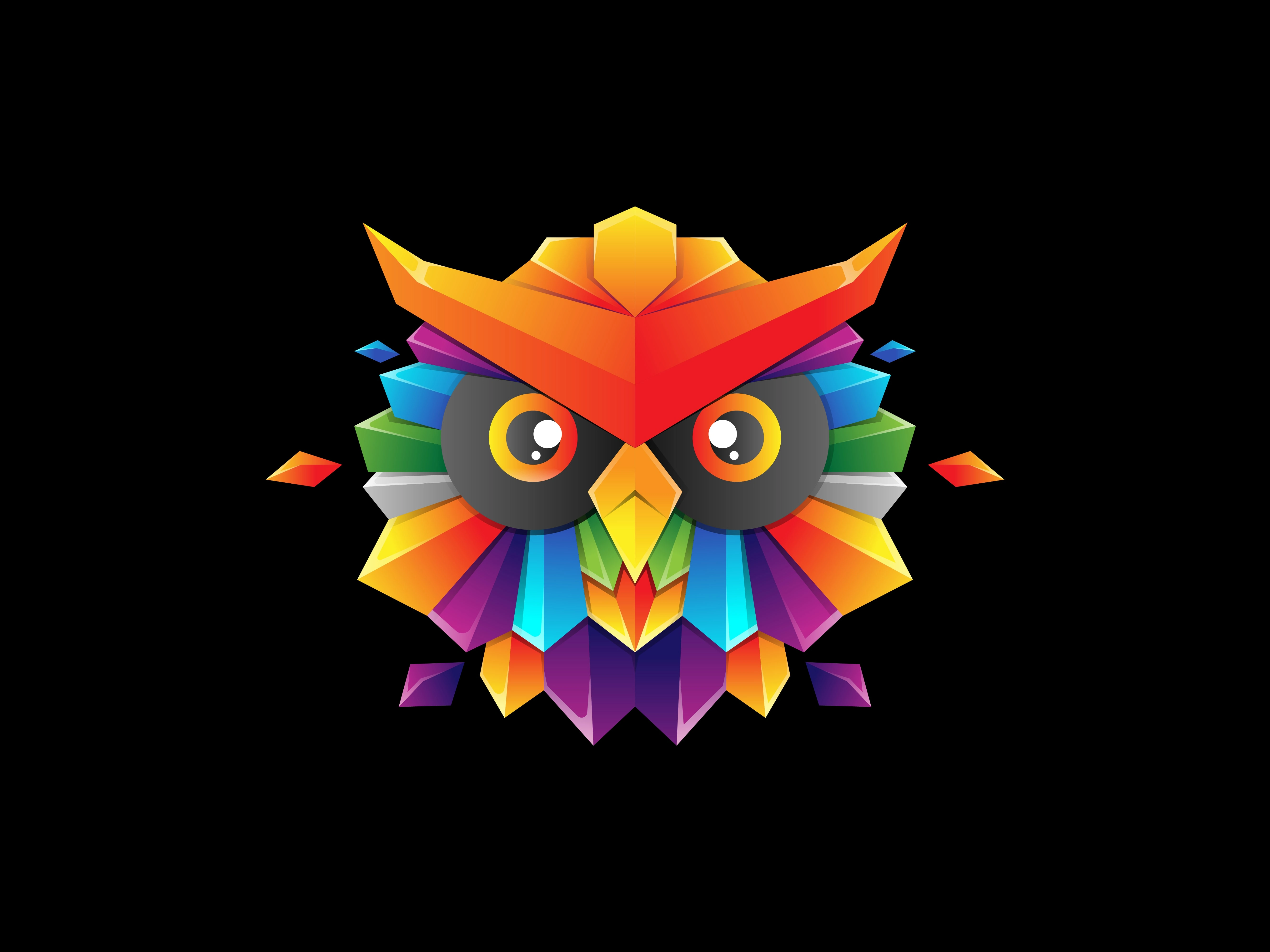 A vibrant 3D geometric owl with bold colors and sharp symmetry, blending depth and modern style.