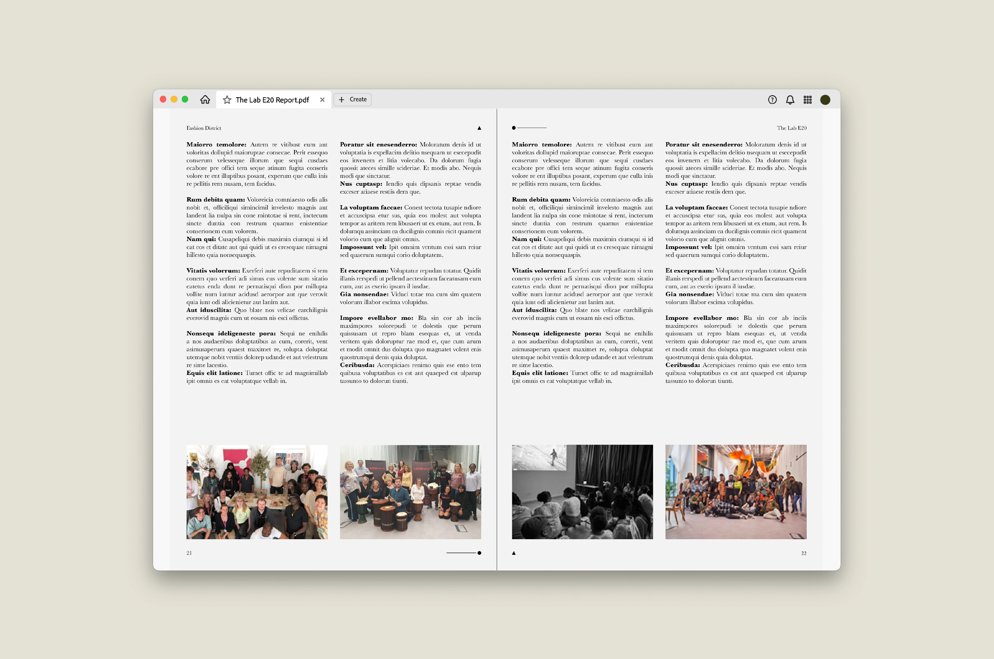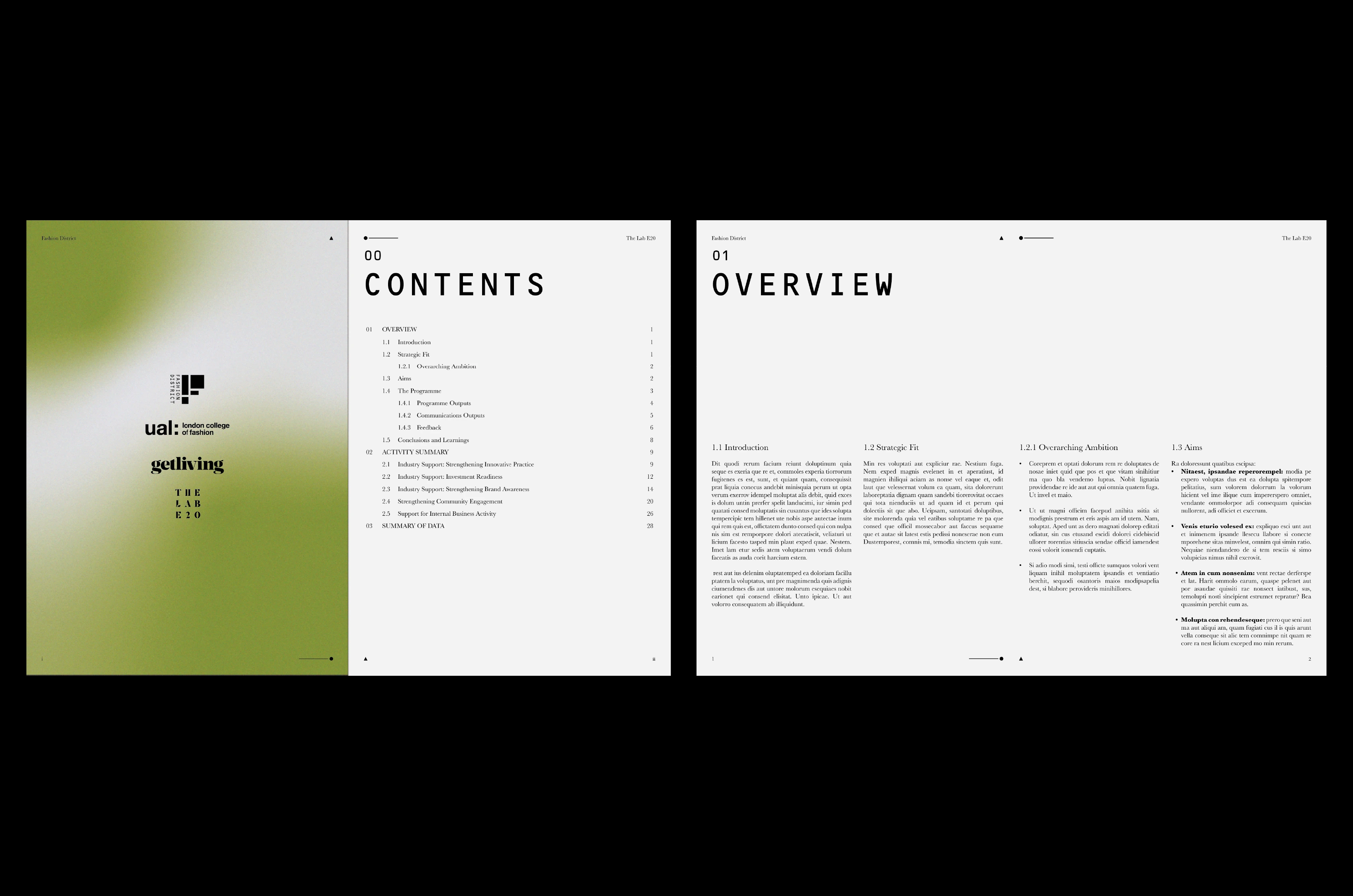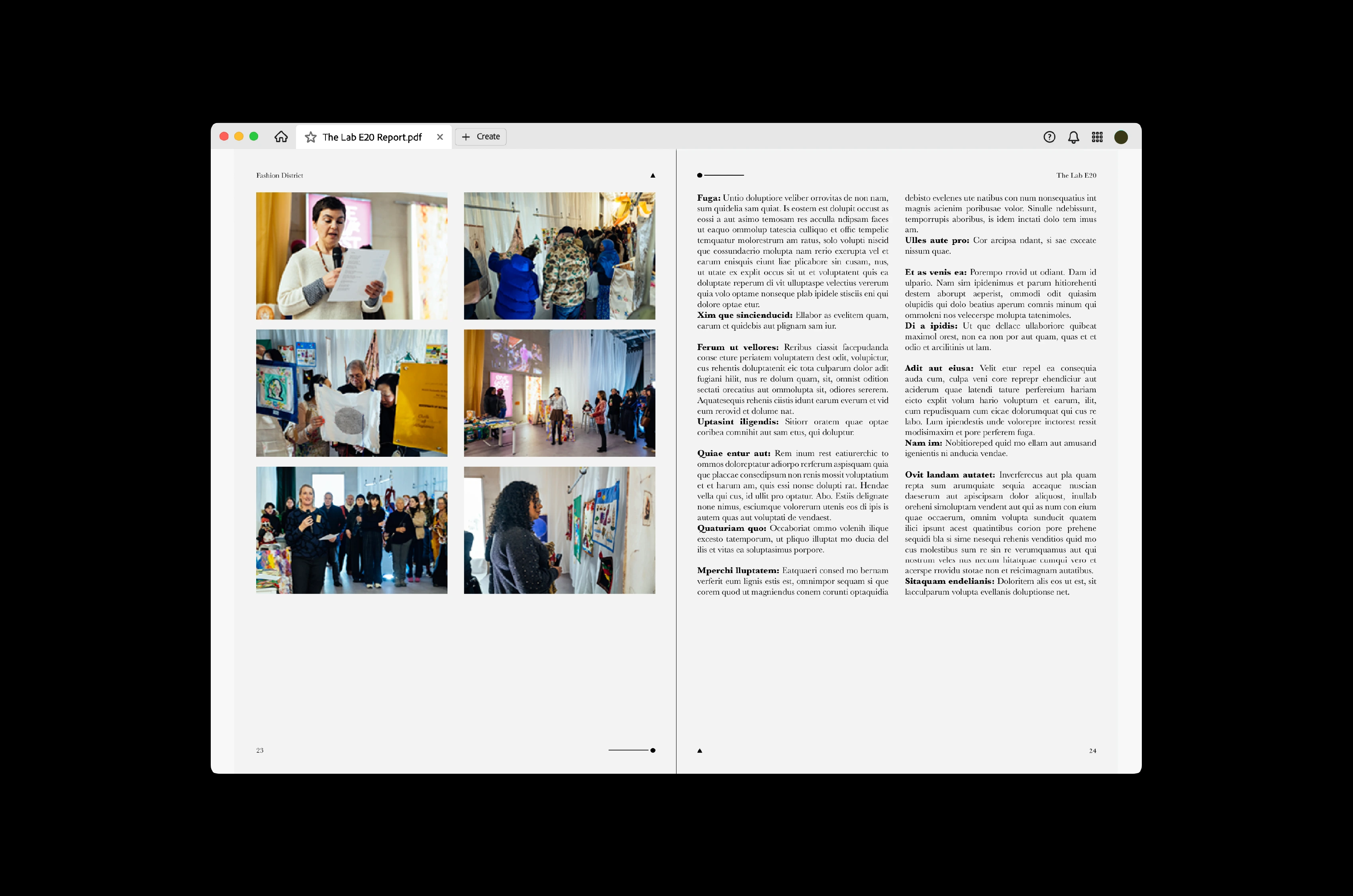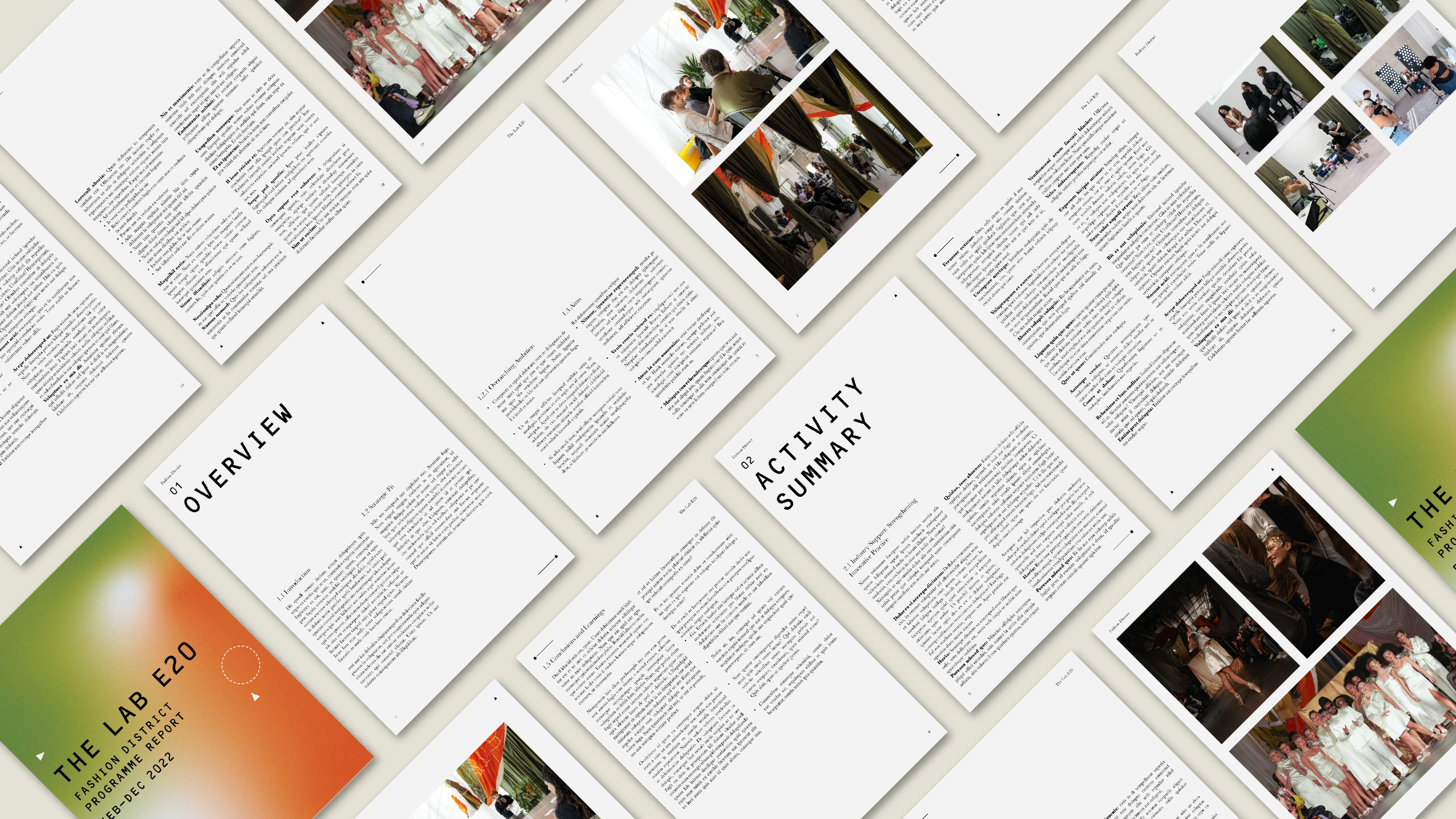 Design: I led the creative direction and formatted this report, creating an aesthetic that incorporated the colour palette from The Lab E20 and Fashion District’s heading and body fonts. I also created custom gradient backgrounds, and curated and edited supporting photography that enhanced the written content through visual storytelling.