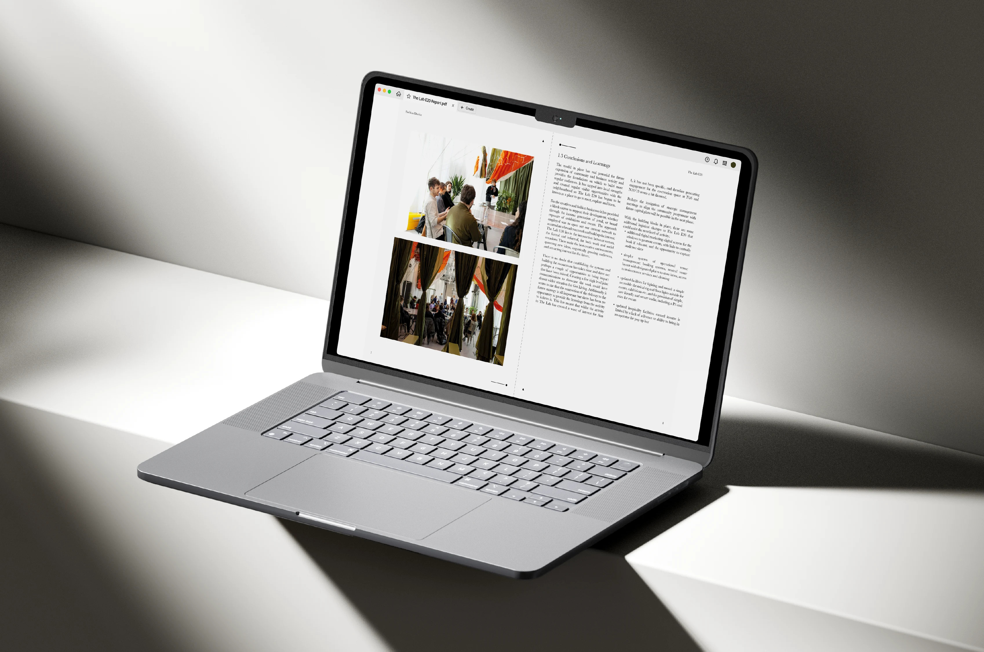 Designed the report layout, color palette, and typography, creating custom gradient backgrounds and curating photography to enhance visual storytelling.