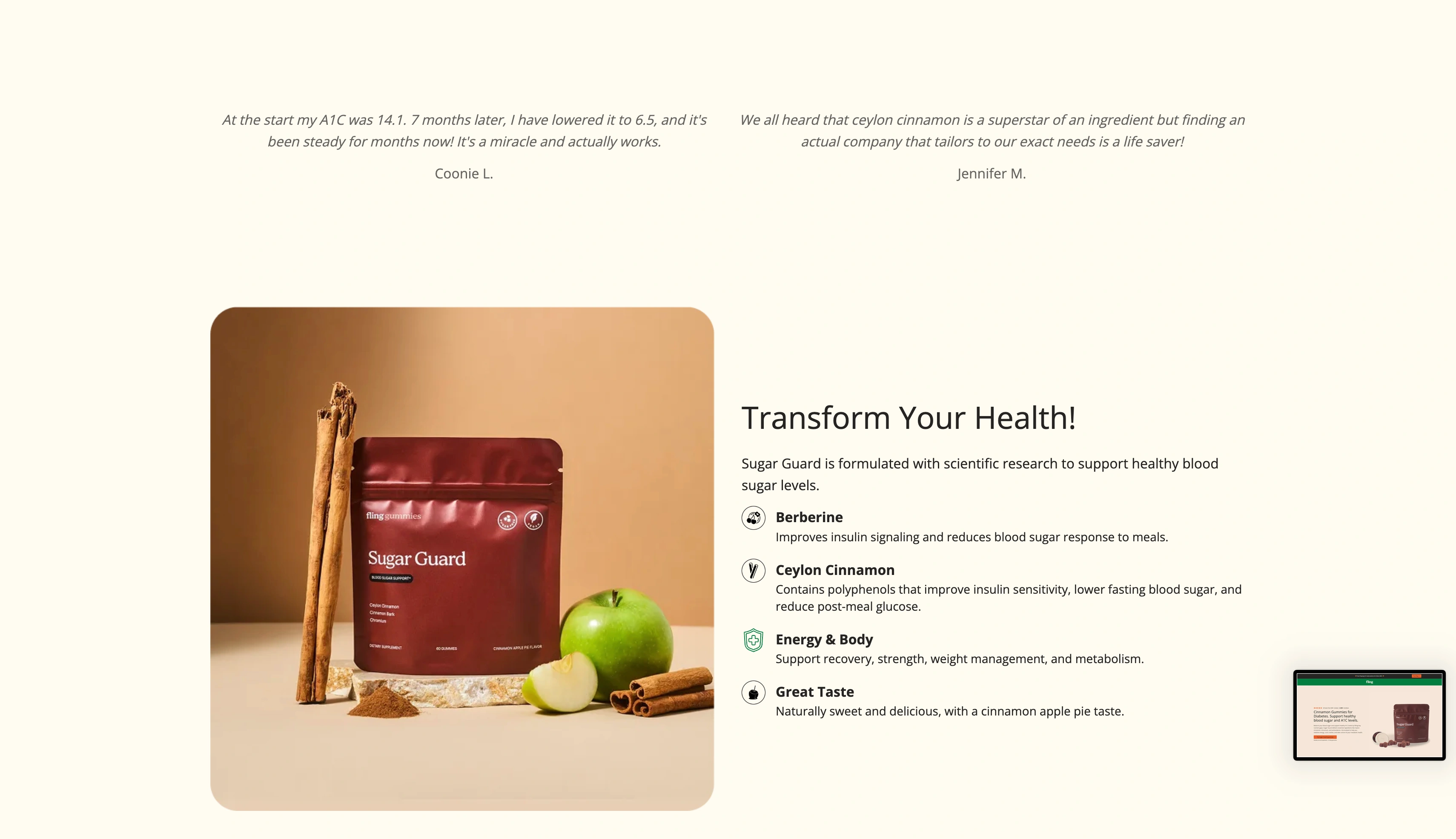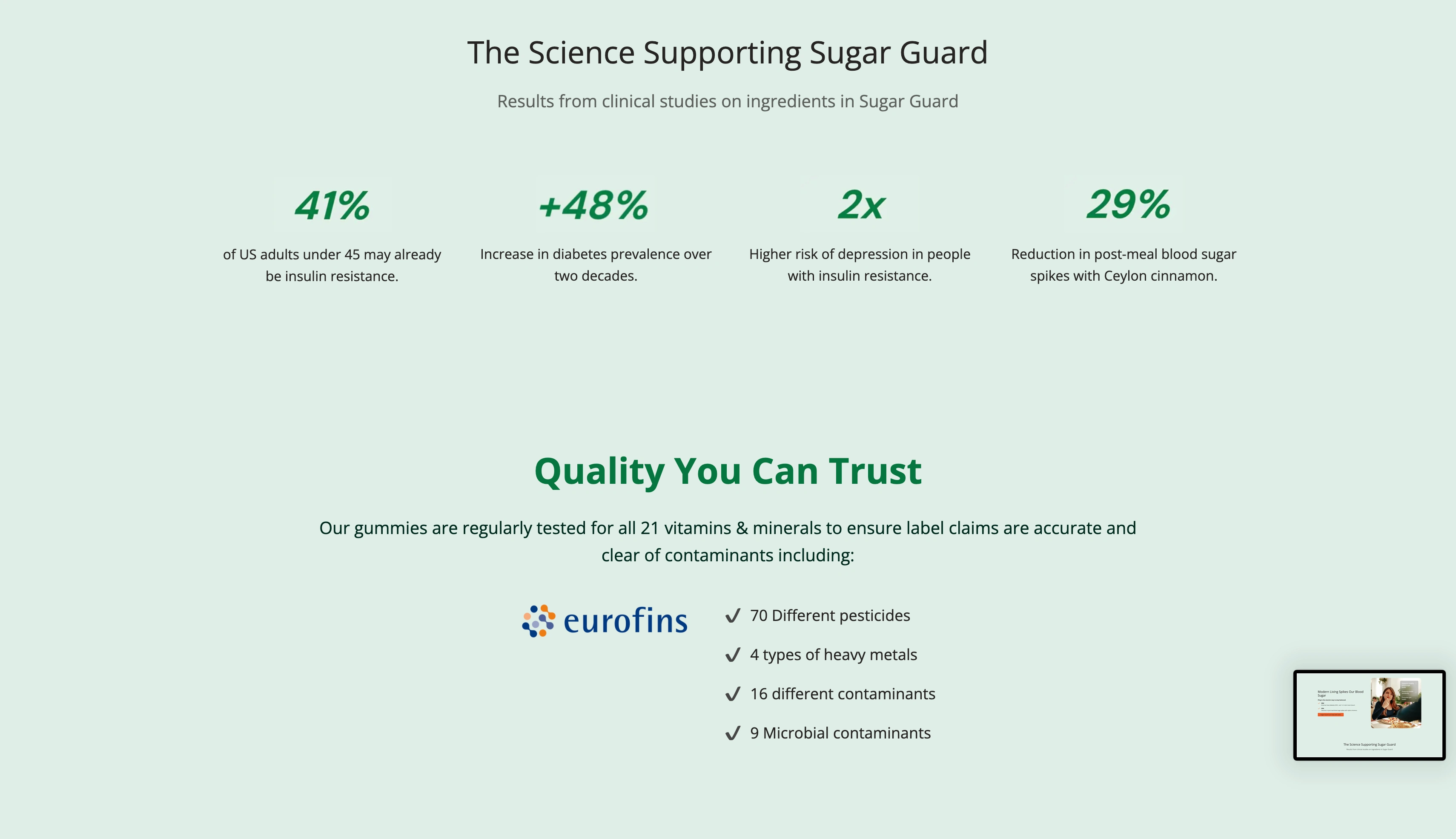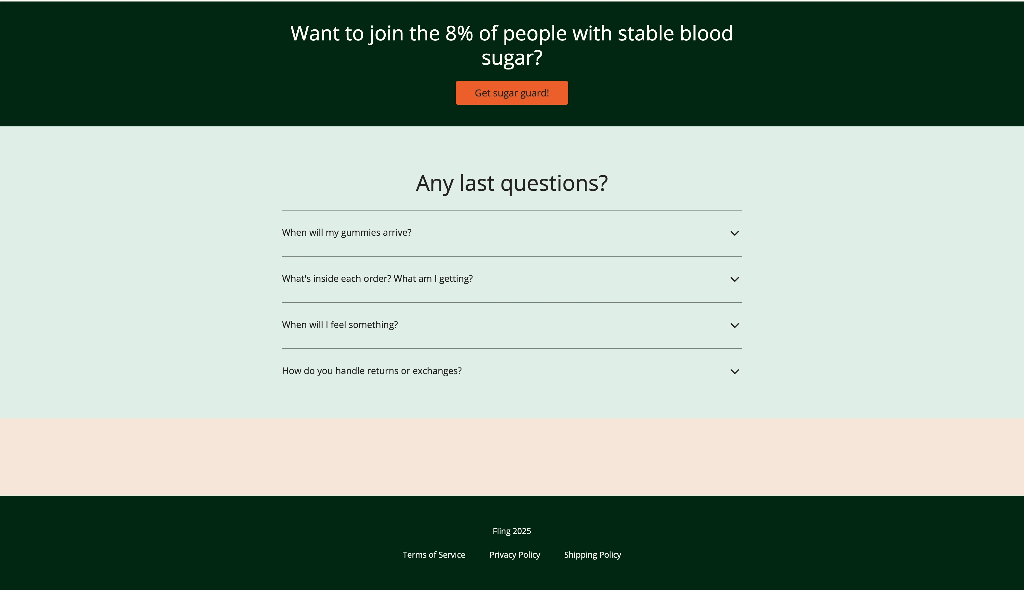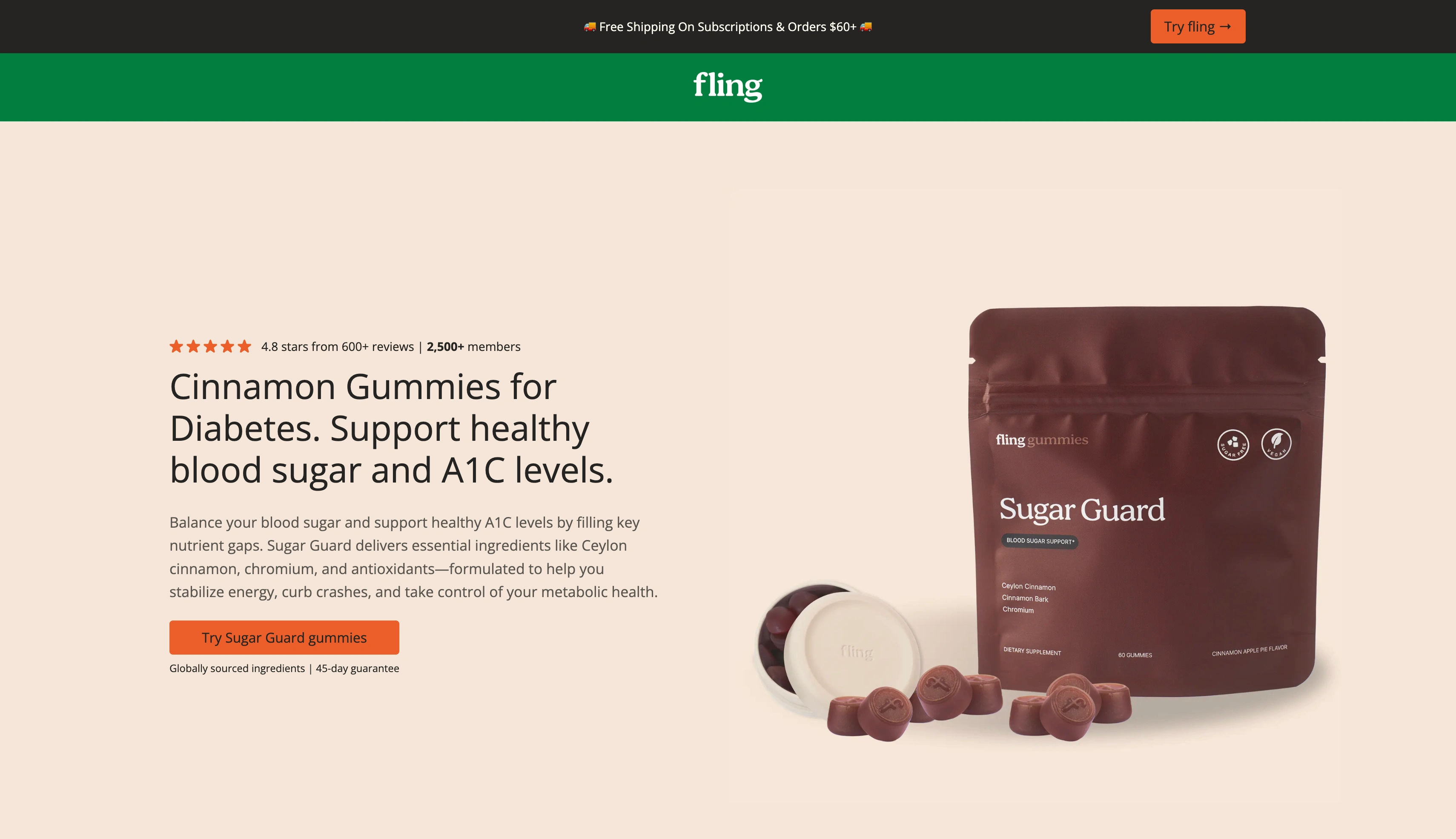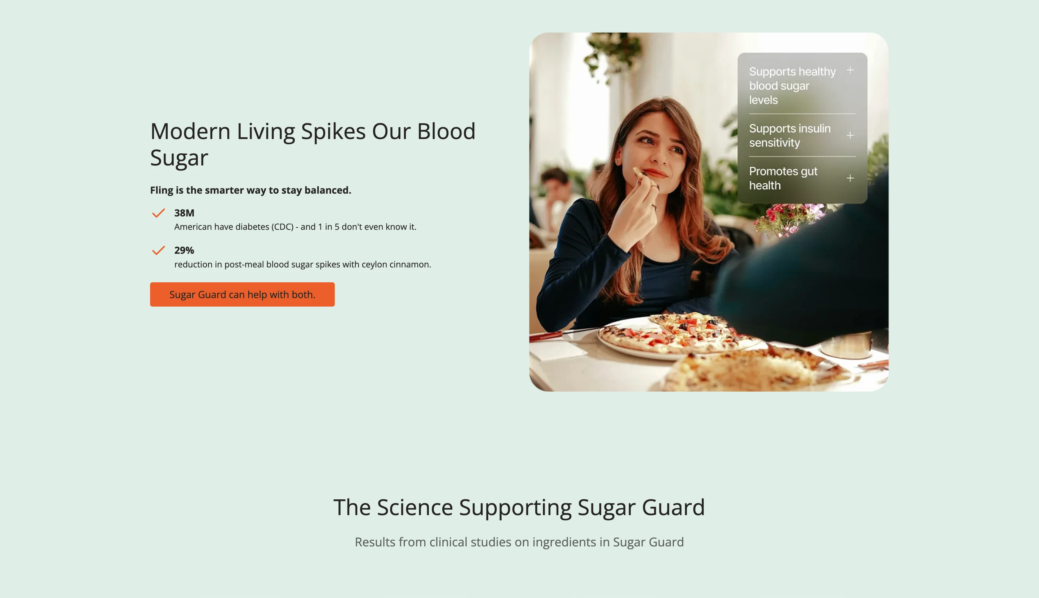 The result is a high-conversion landing page that expertly navigates the sensitive D2C health market. It successfully positions "fling Sugar Guard" as a credible, effective solution by prioritizing social proof and clear, benefit-driven messaging.