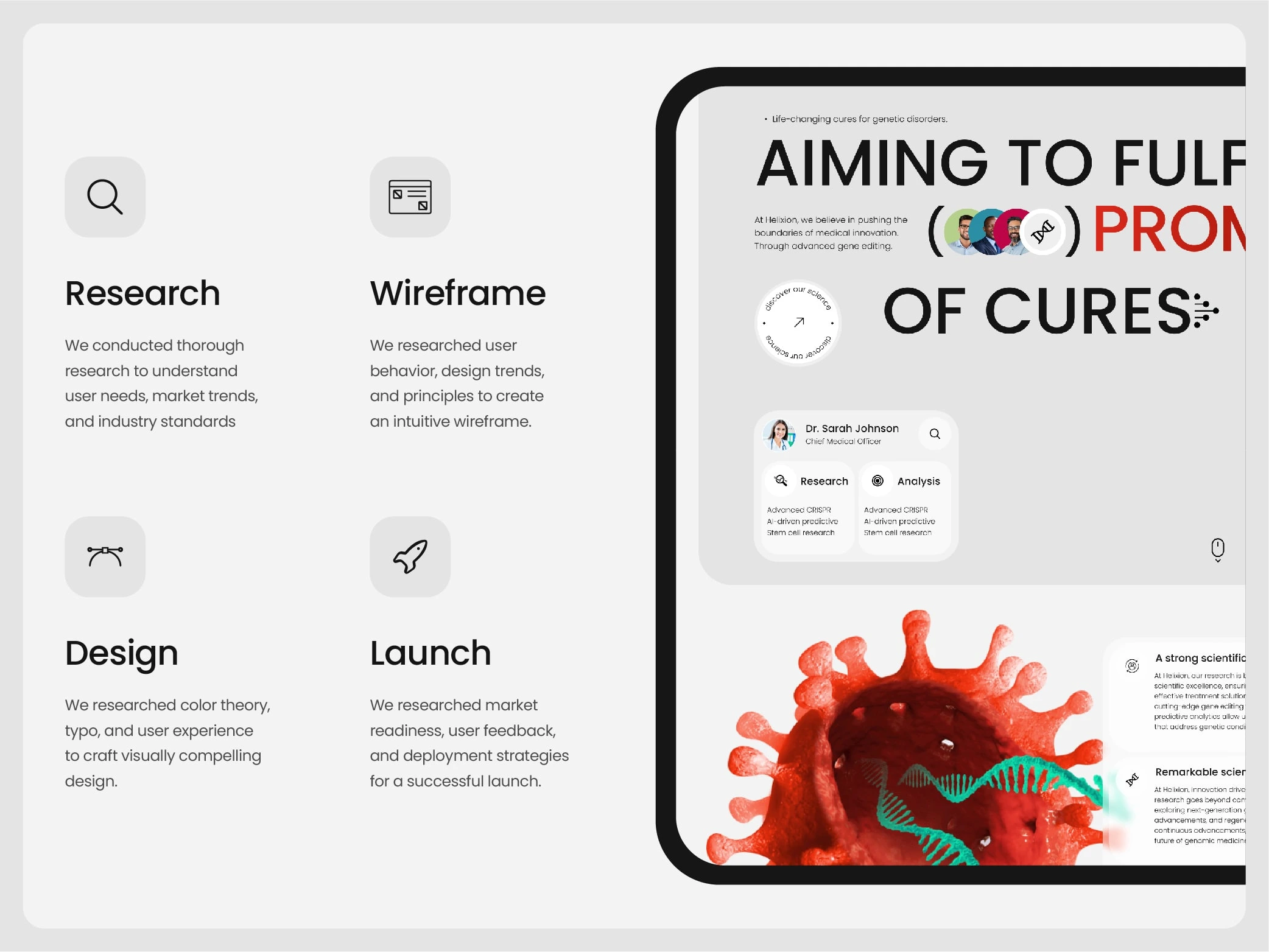 I worked on the website design for a biomedical company building new solutions in healthcare. The idea was to make the site simple to explore and easy to read while clearly showing what the company does. The client wanted a creative yet professional UI design, so I focused on structure and flow first, then added visuals that feel reliable and well-balanced. The final design helps visitors understand the company’s work without getting lost in technical details and works smoothly across all devices.