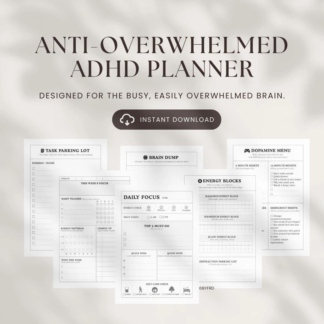 👉 Proposed concept: “The 6-Page Anti- Overwhelmed ADHD Planner” — simple, visual, no setup anxiety.