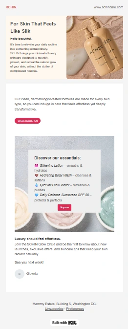 Designed a luxury skincare email template for SCHIN using KIT.