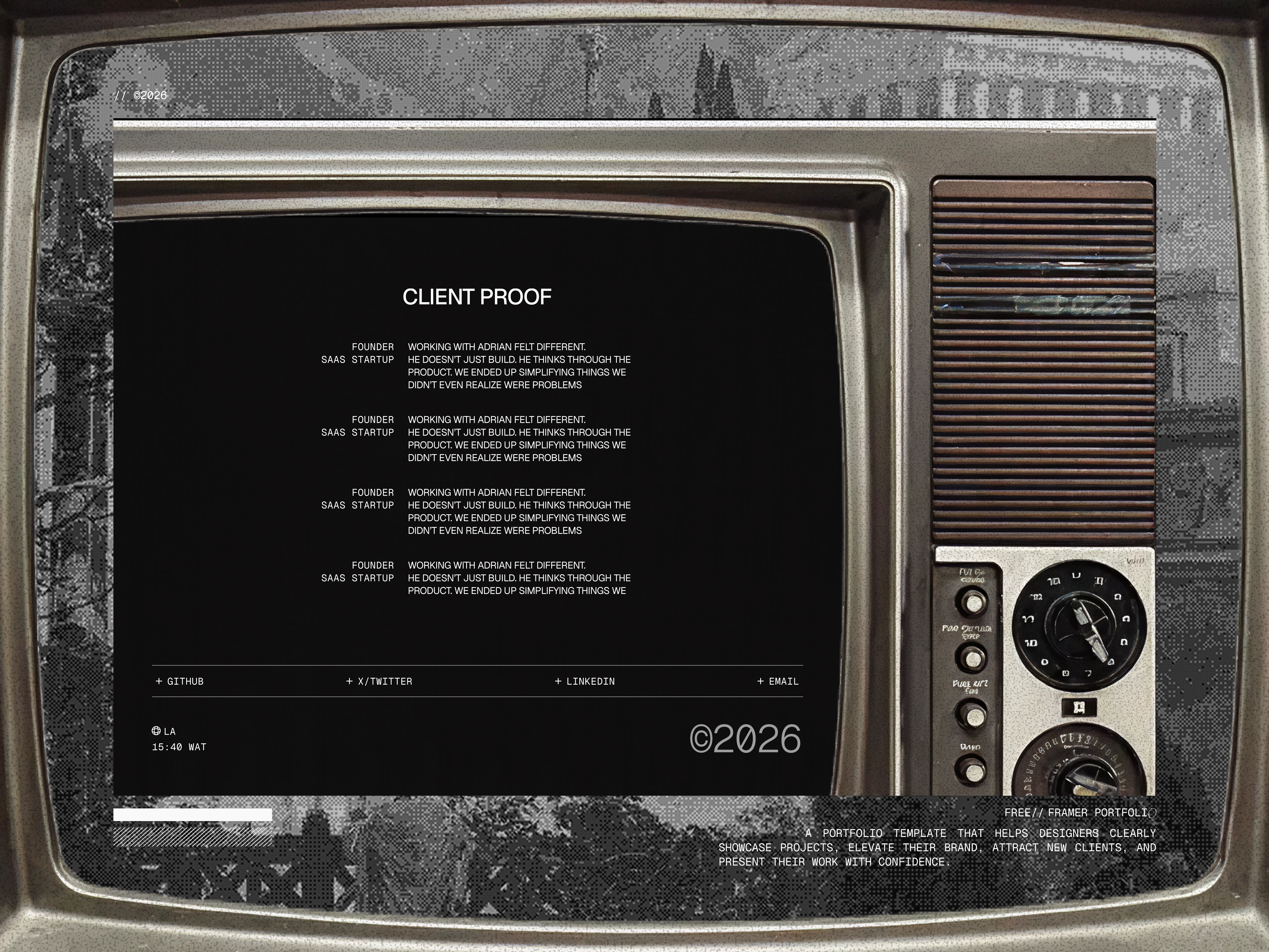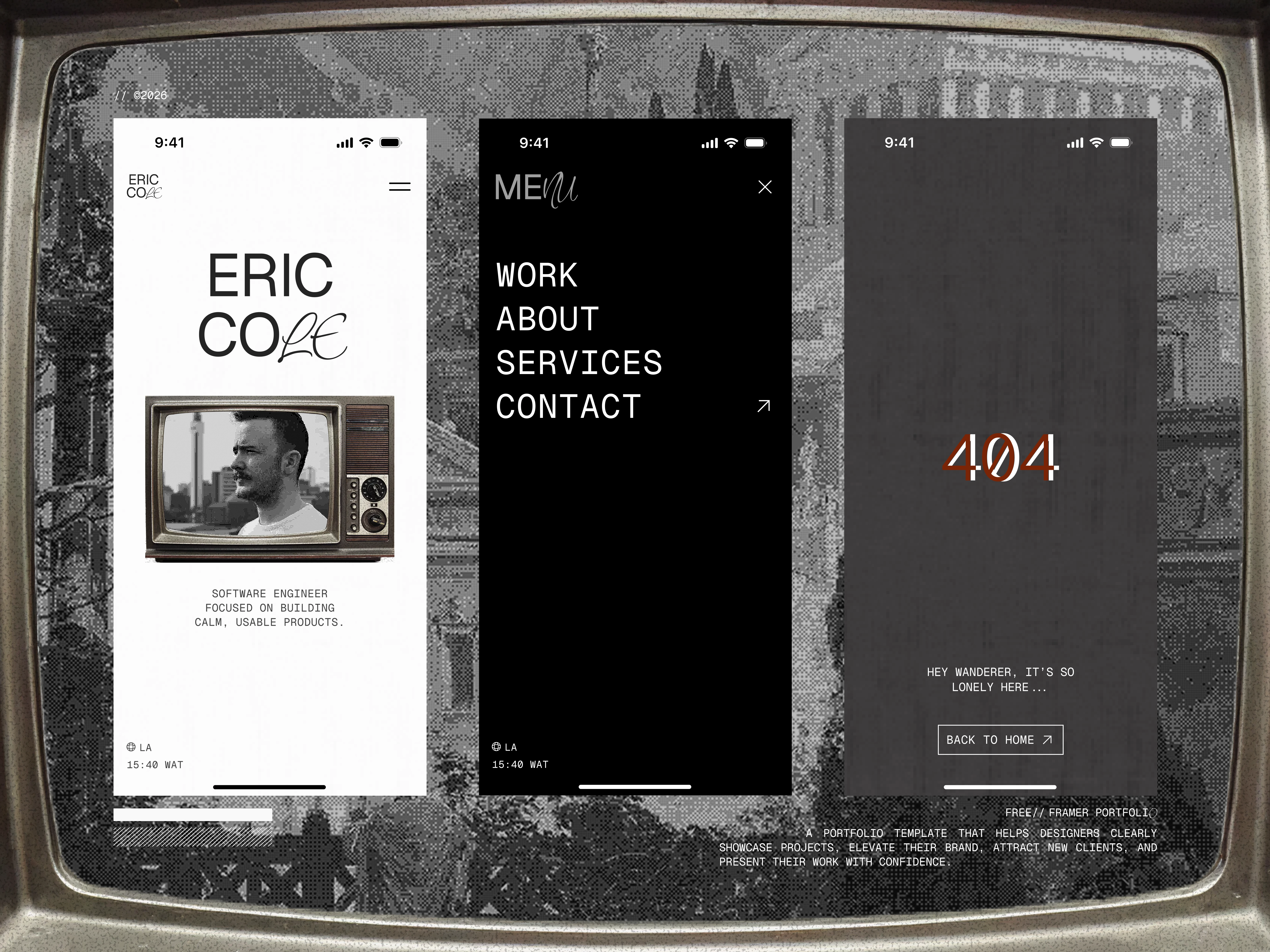 ERIC COLE is a personal portfolio Framer template designed for freelancers and independents who want their website to match the quality of their work. Built to look like a personal brand, not a template.
