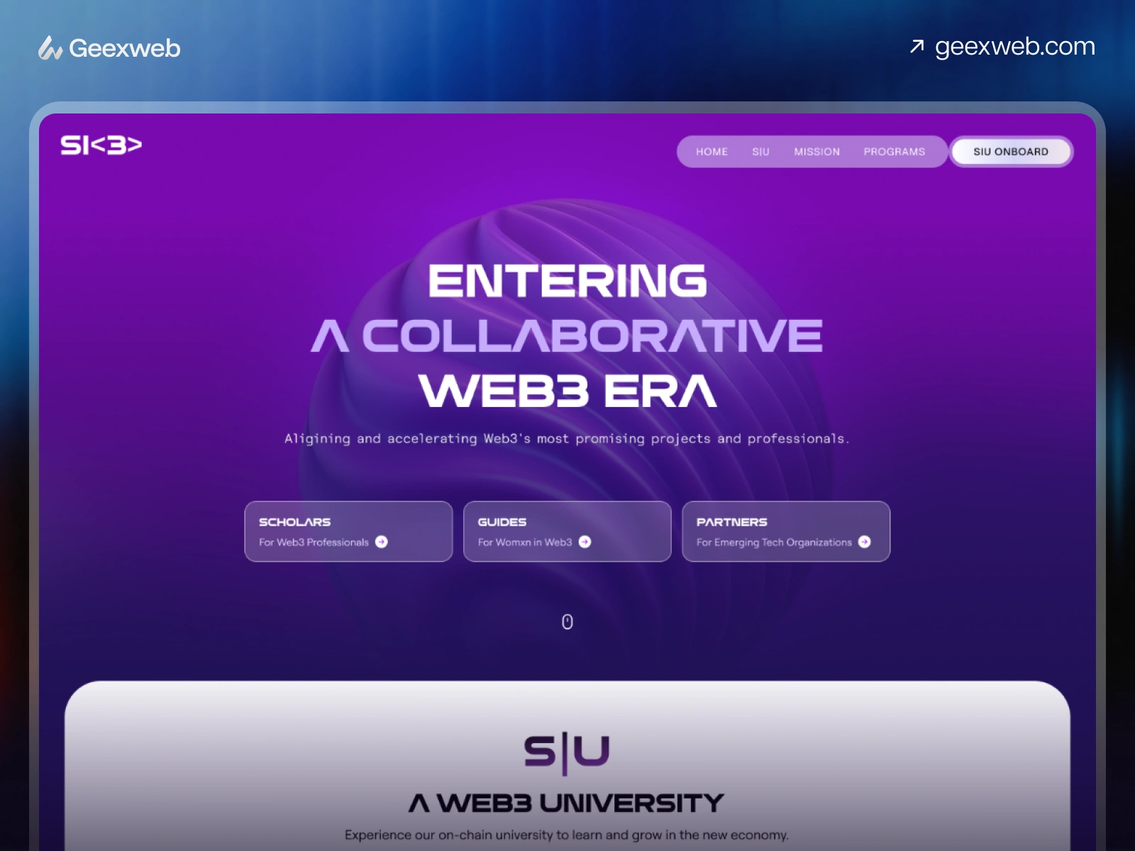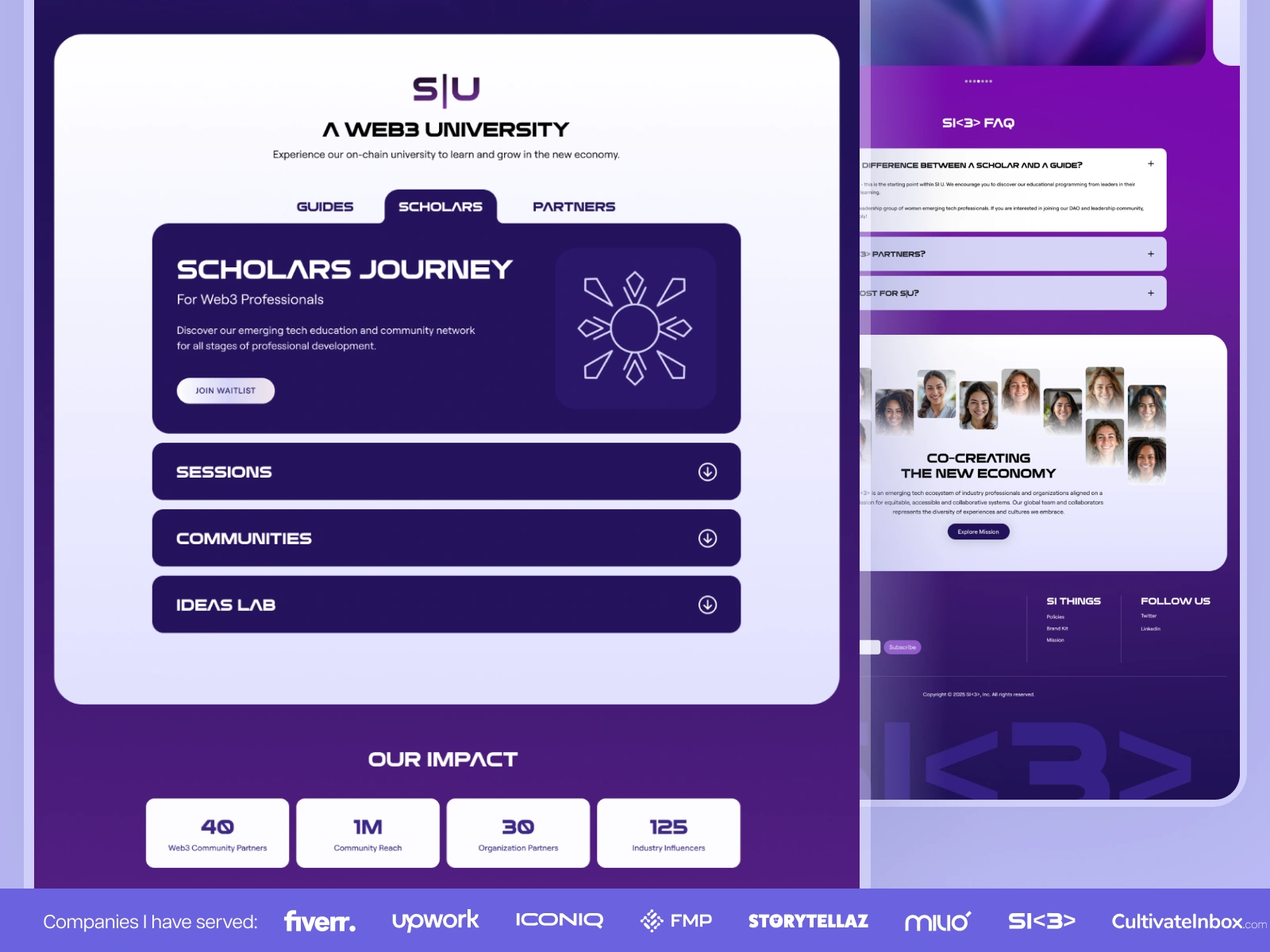 SI3 is a Web3 organization empowering women, scholars, and partners through decentralized learning and collaboration. The platform is built around three key personas: Guides, Scholars, and Partners each representing a unique role in the SI3 ecosystem.