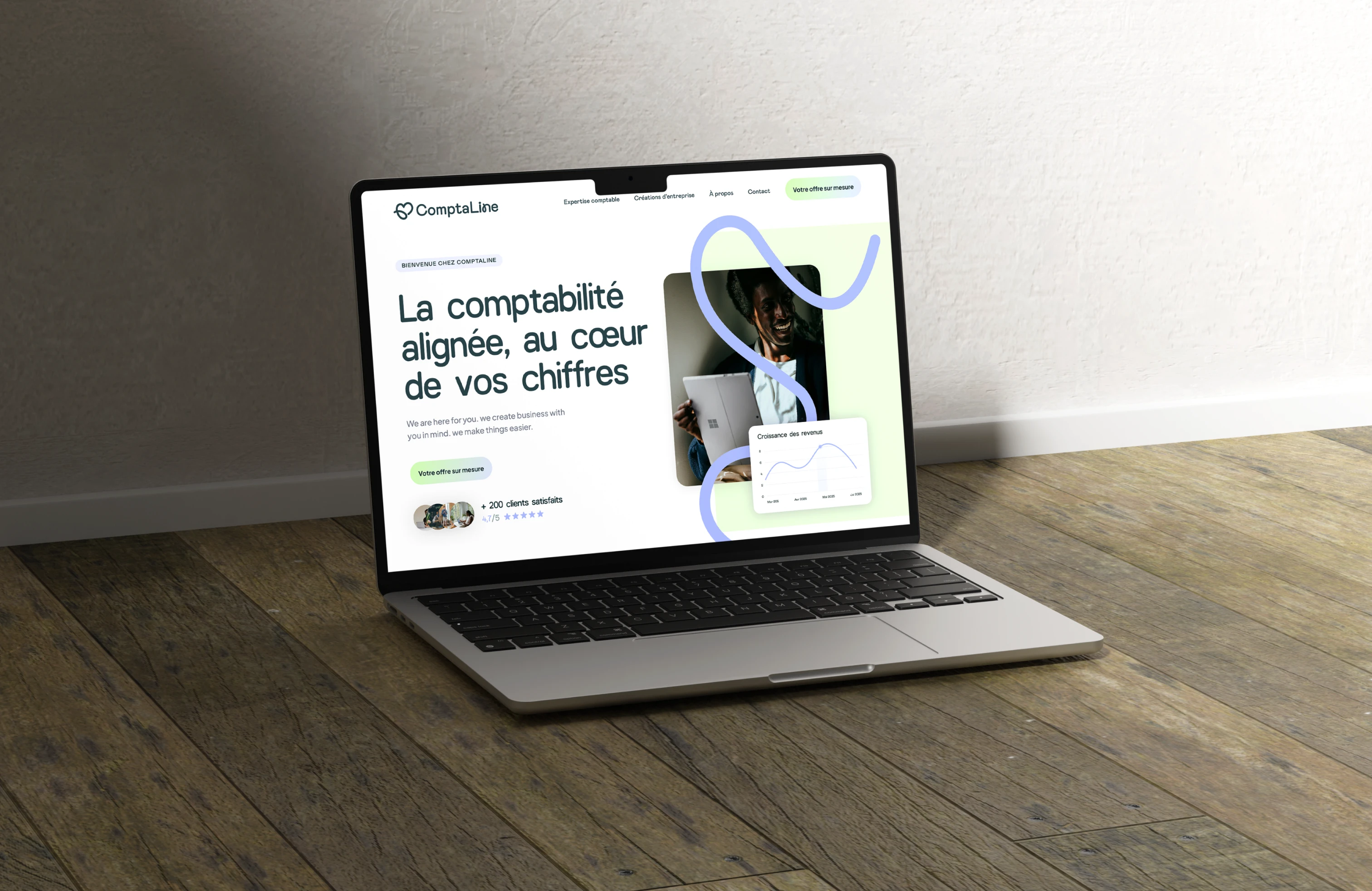 Creation of the brand positioning, visual identity, and website for Comptaline, a next-generation accounting firm supporting entrepreneurs.
