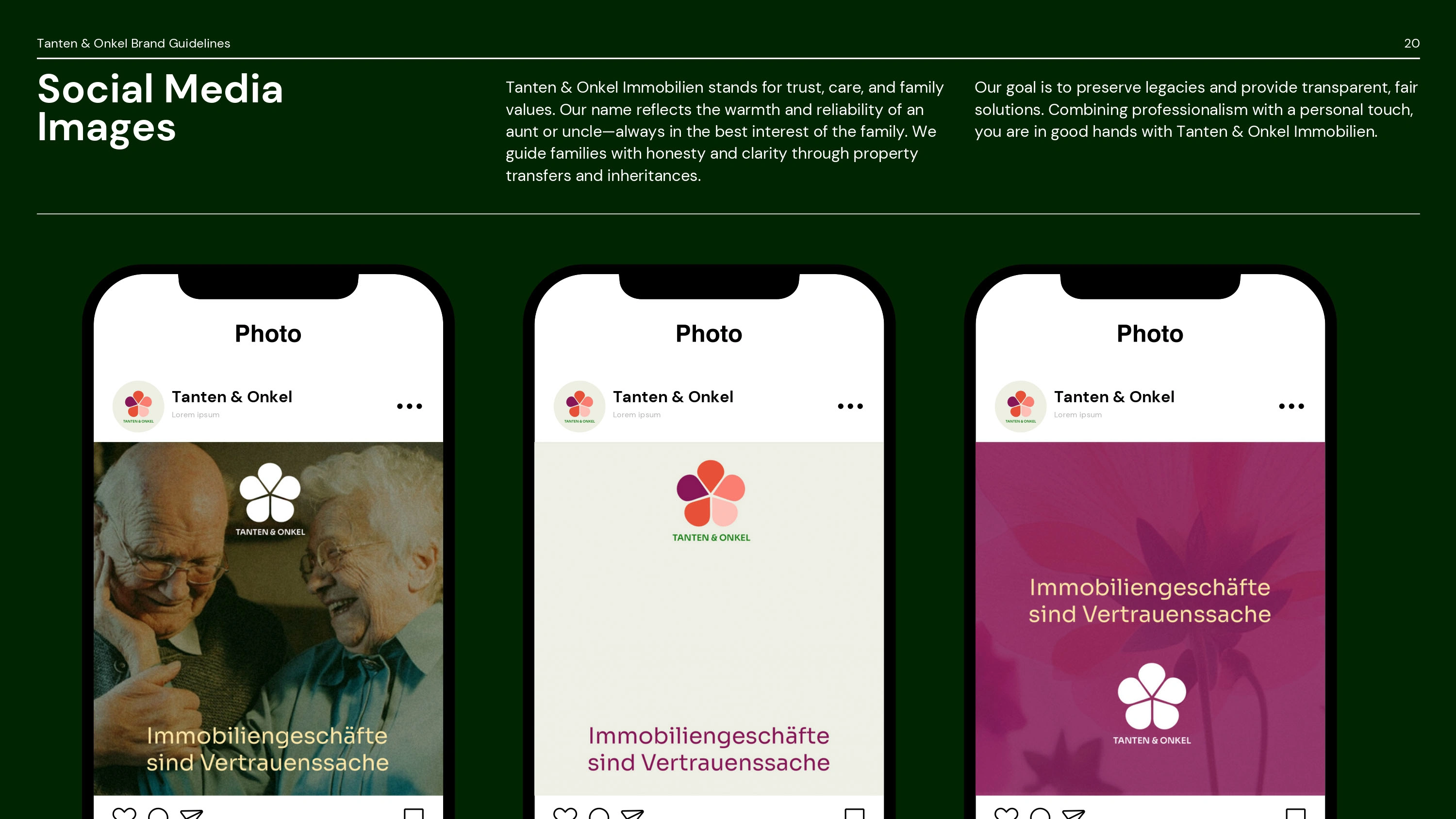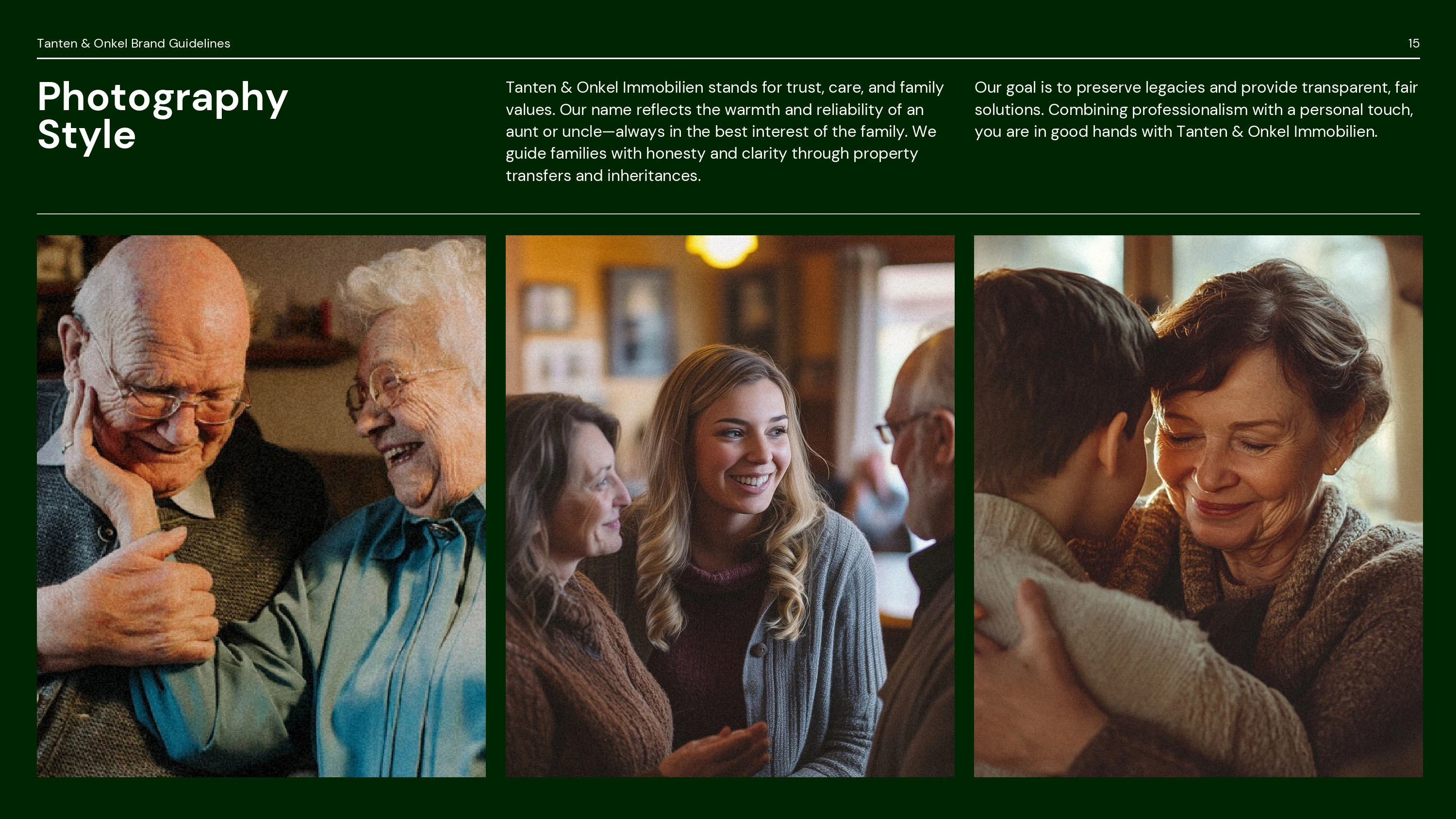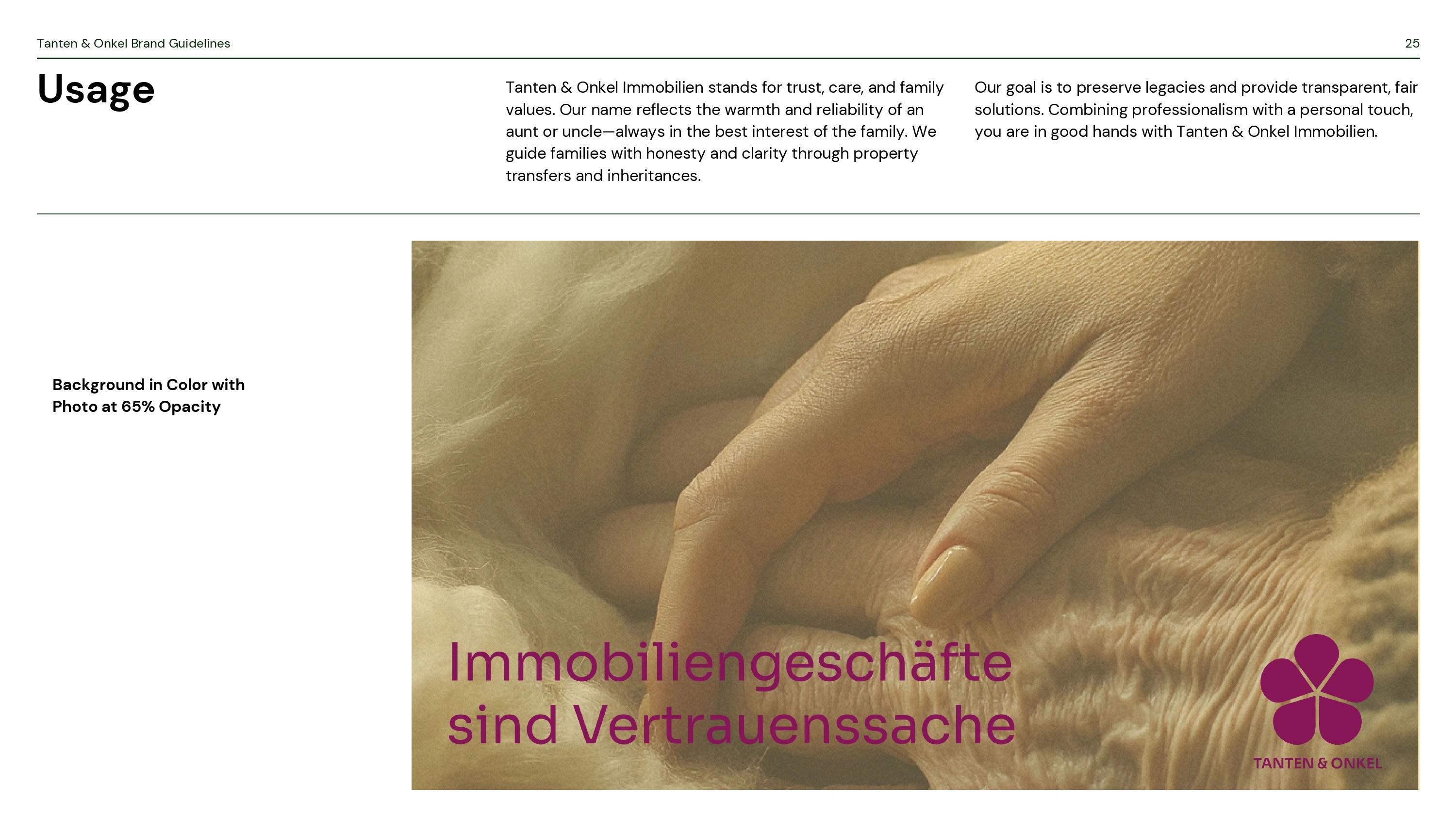 I developed a professional and family-oriented visual identity for Tanten & Onkel Immobilien, a brand specializing in property transfers and inheritances.