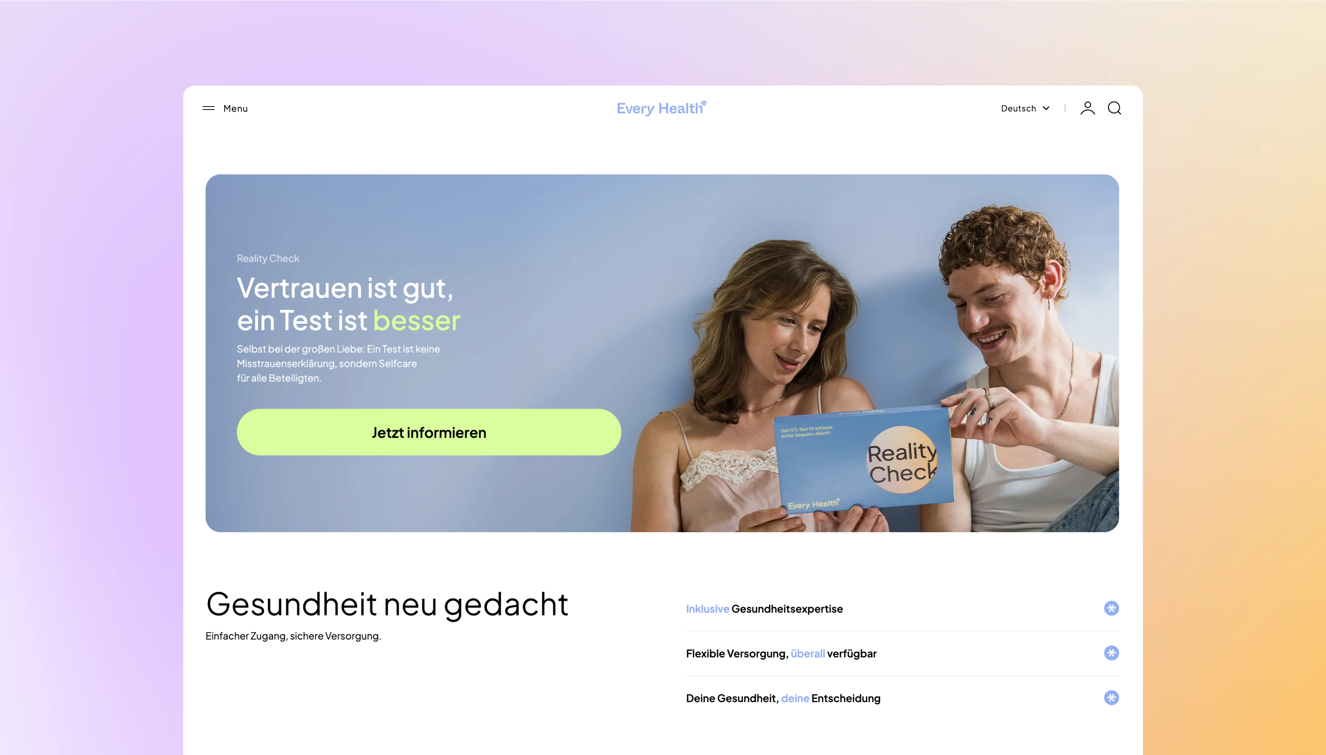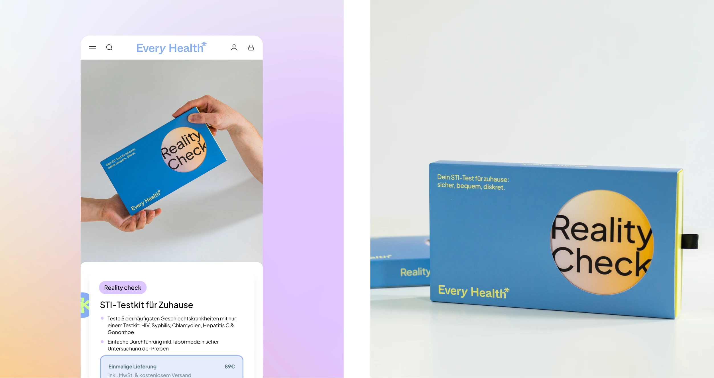 To balance clarity with empathy, I used the brand’s existing gradient, bringing a sense of calm to what can be a stressful moment. The rest of the packaging relies on Every Health’s main colors, reinforcing a trusted, medical feel. It turns a potentially stressful moment into a thoughtful interaction, transforming packaging into storytelling.