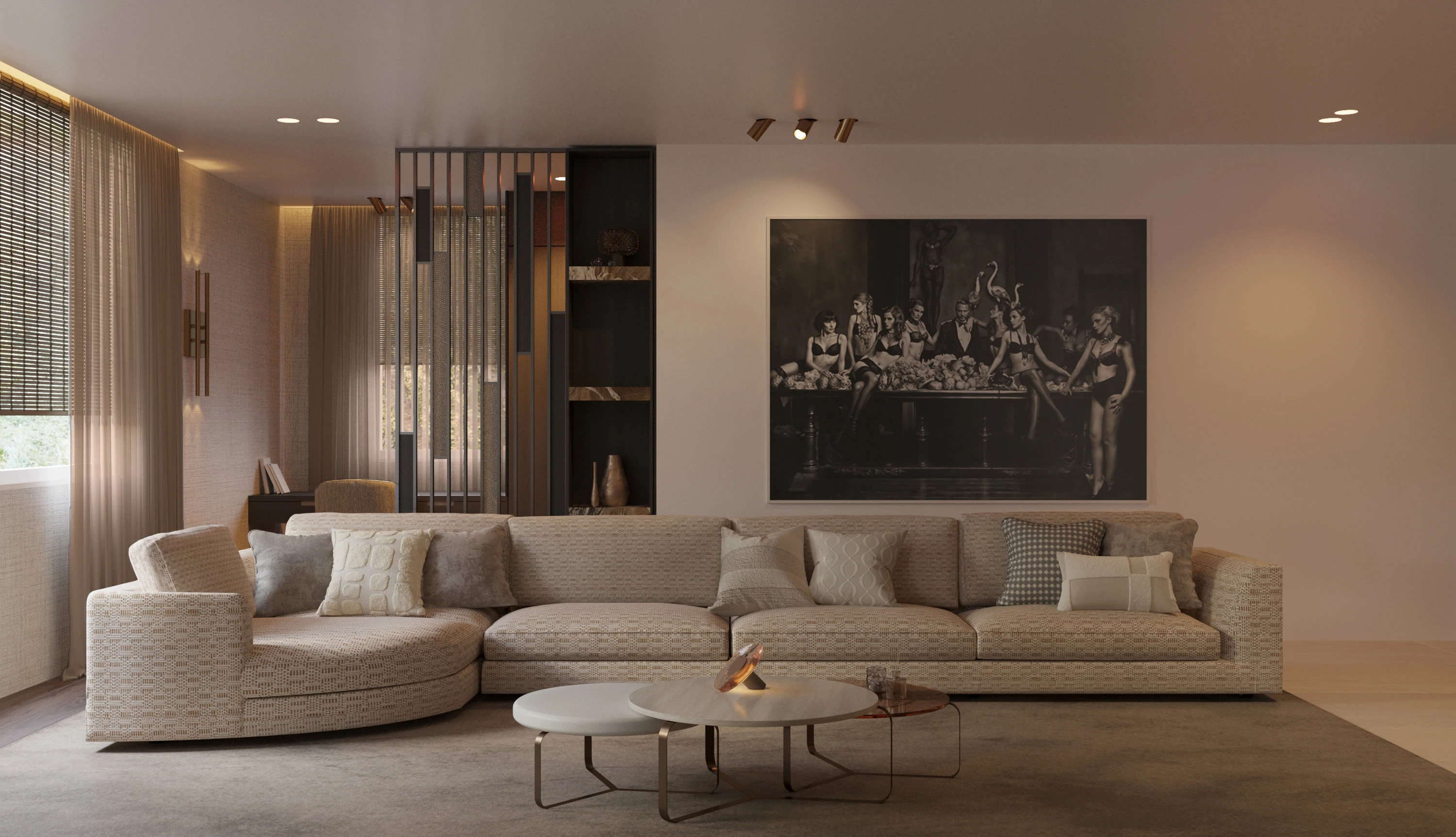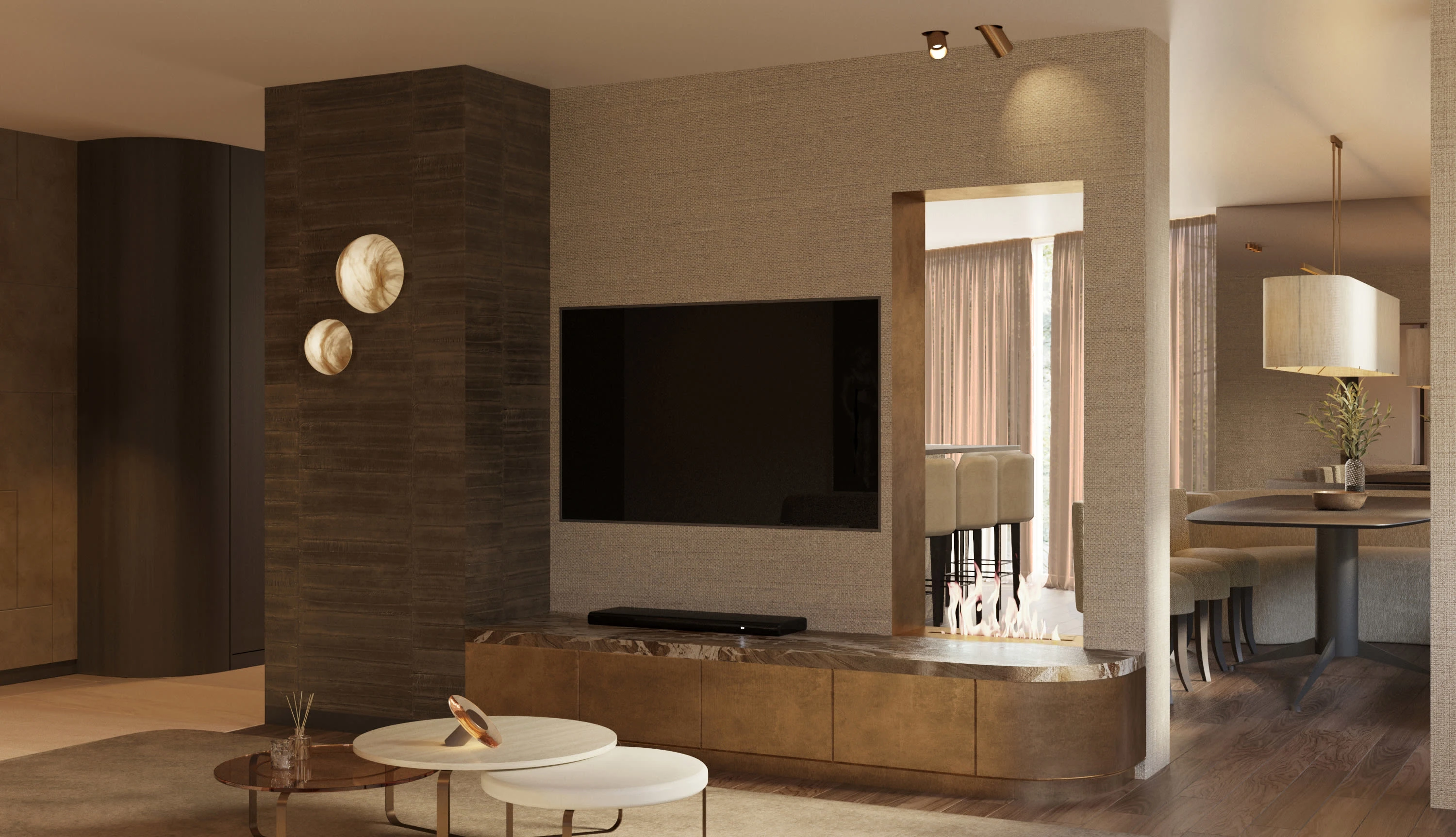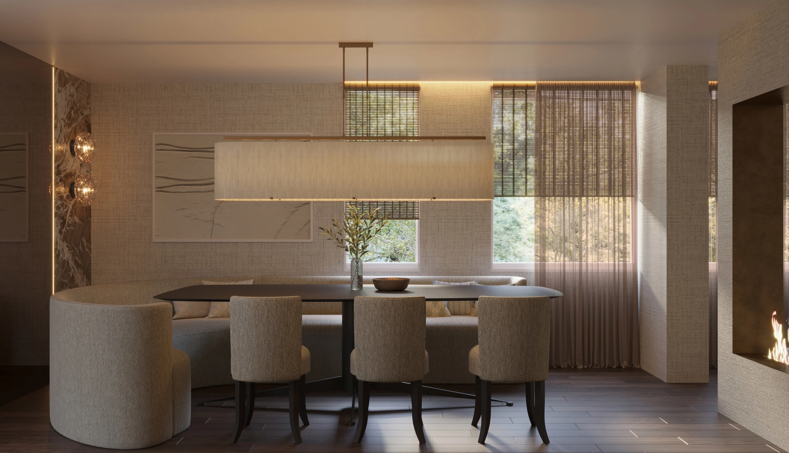 • Focused on realistic materials — stone accents, wood flooring, bronze metal, and soft fabrics