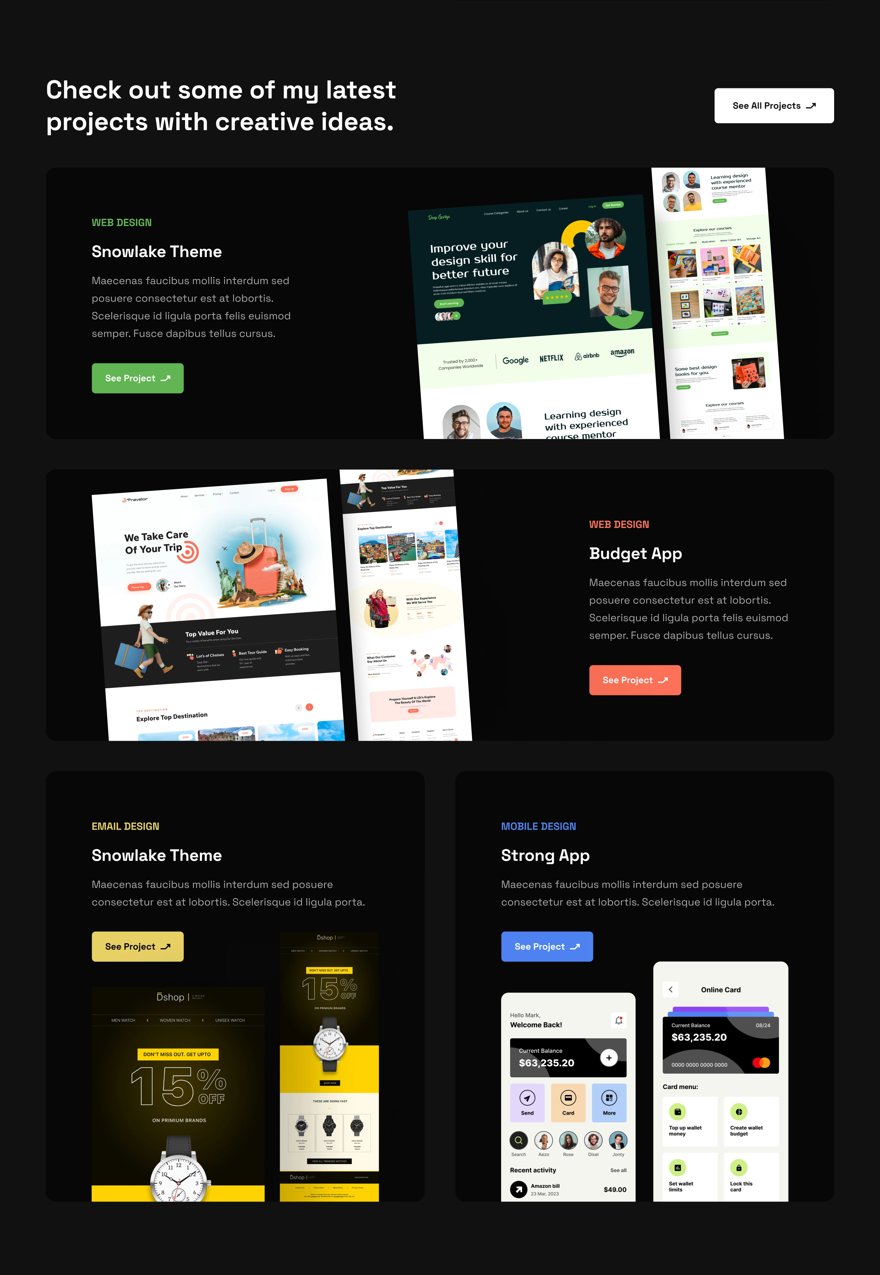 A modern portfolio website design focused on clean aesthetics, easy navigation, and visual appeal to showcase creative work effectively.
