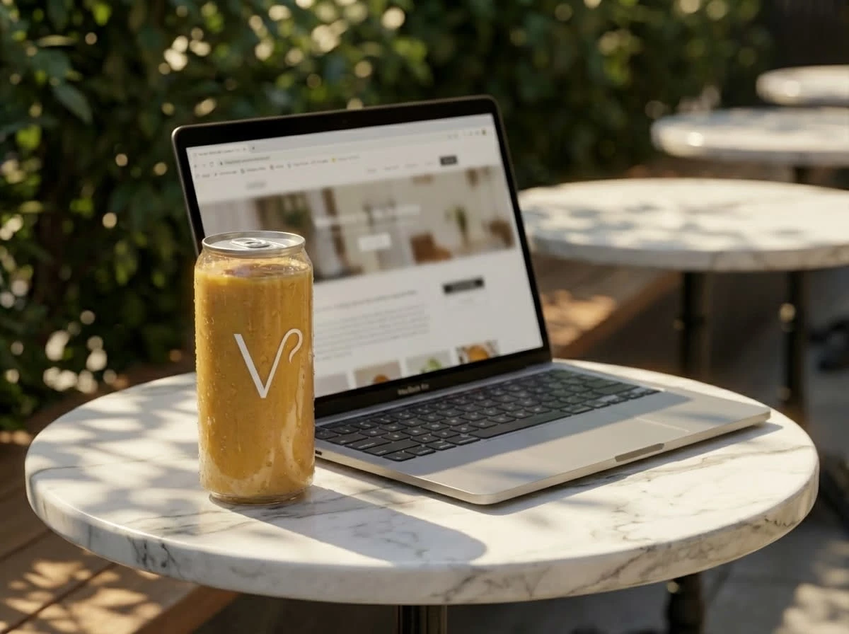 The Mark: A bespoke, minimalist "V" icon featuring a leaf-inspired flourish. This shorthand allows for high-signal branding on small surfaces like can tops and social media icons.