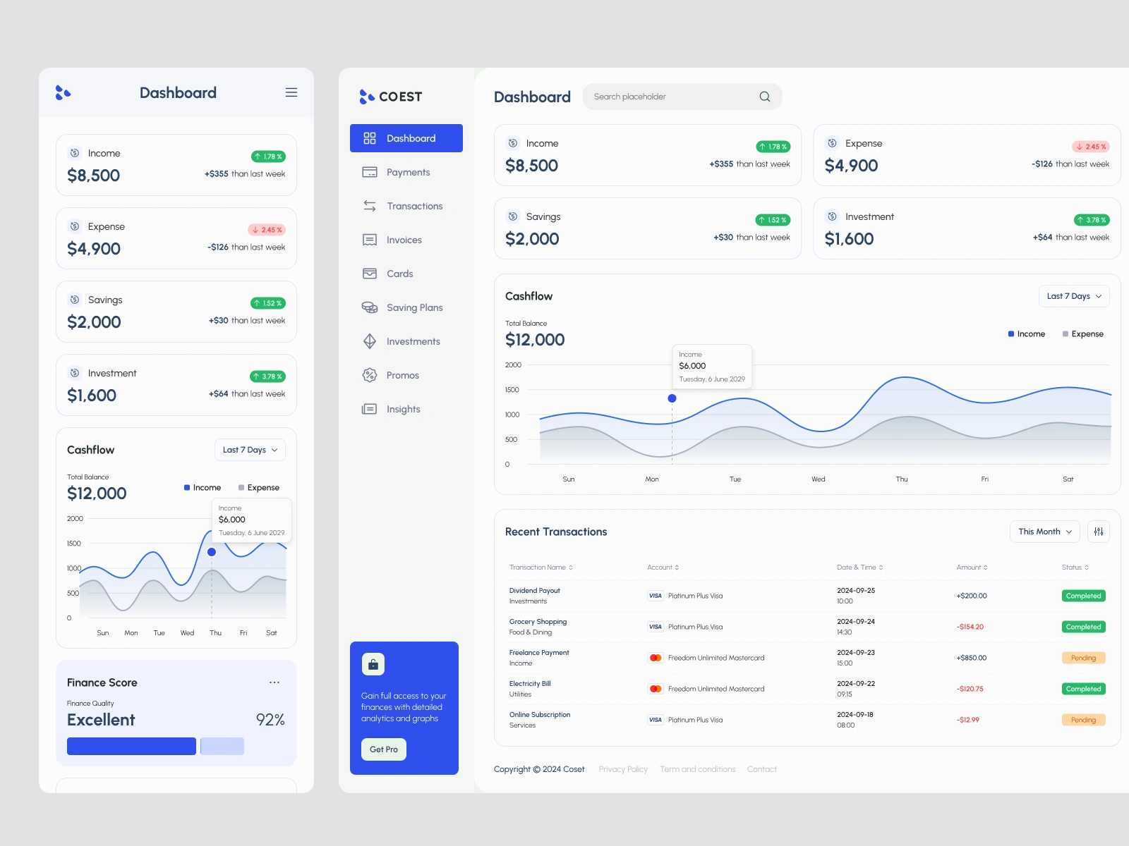 I designed COEST, a modern personal finance dashboard that empowers users to understand and manage their money with confidence.