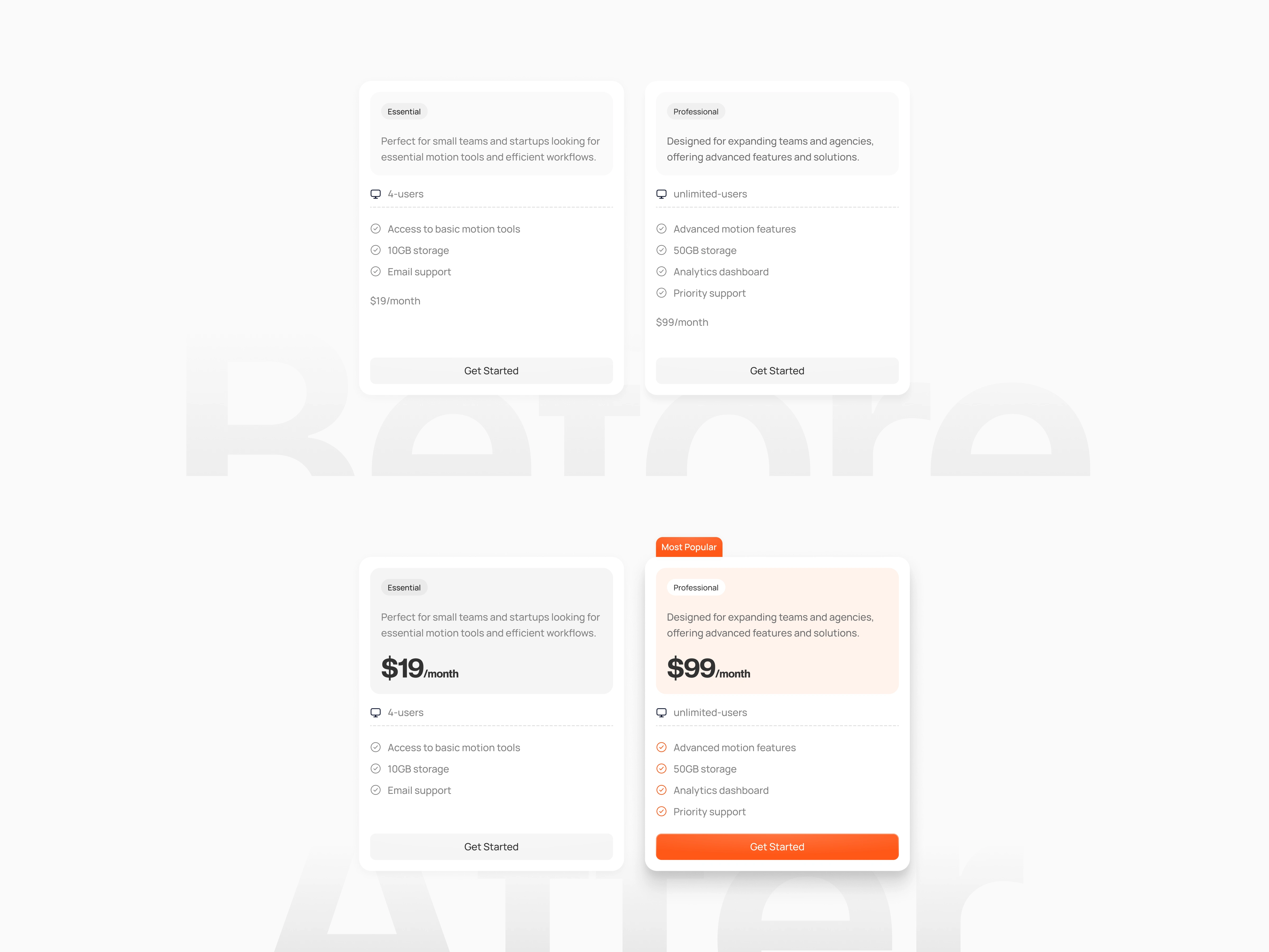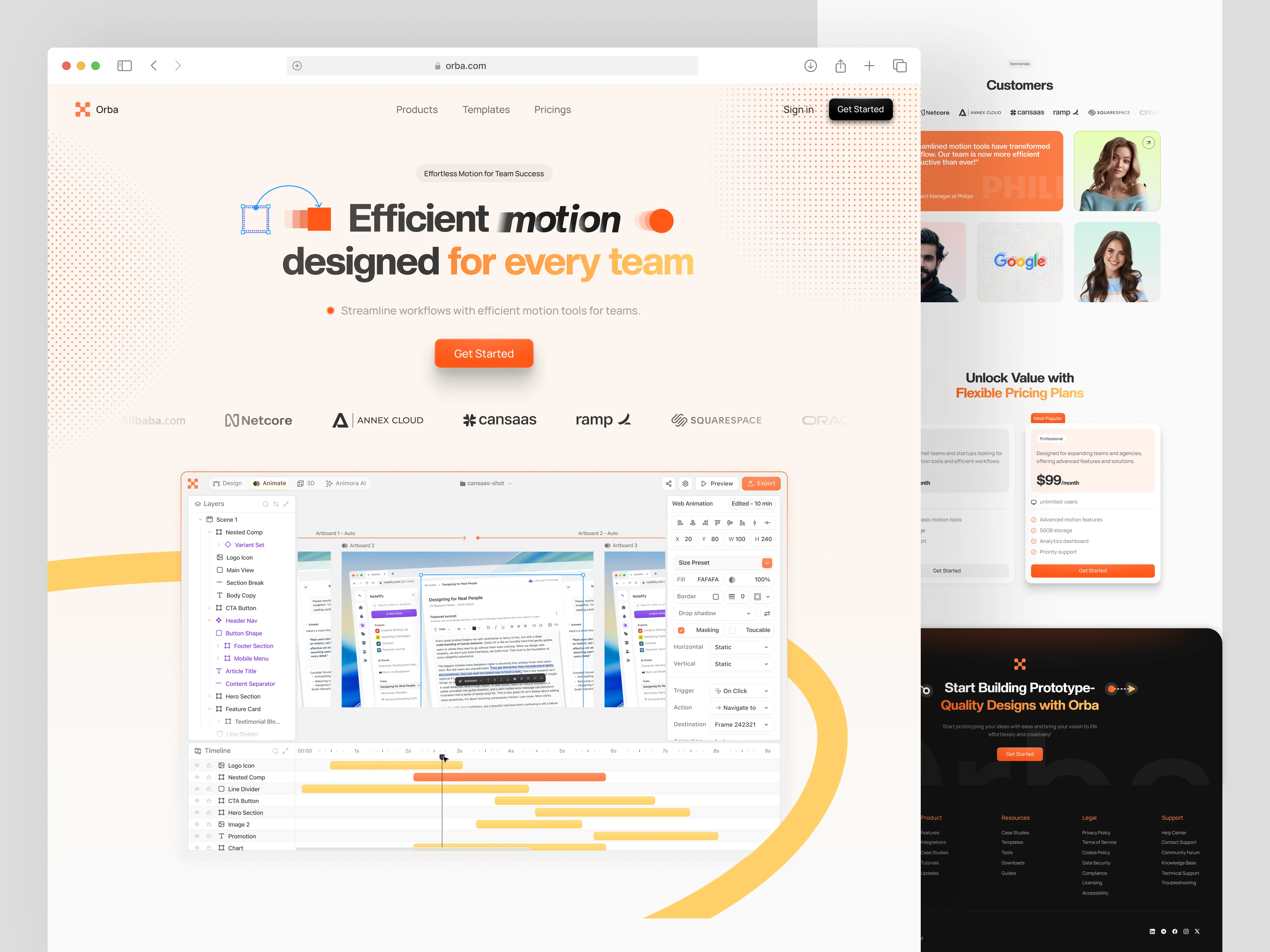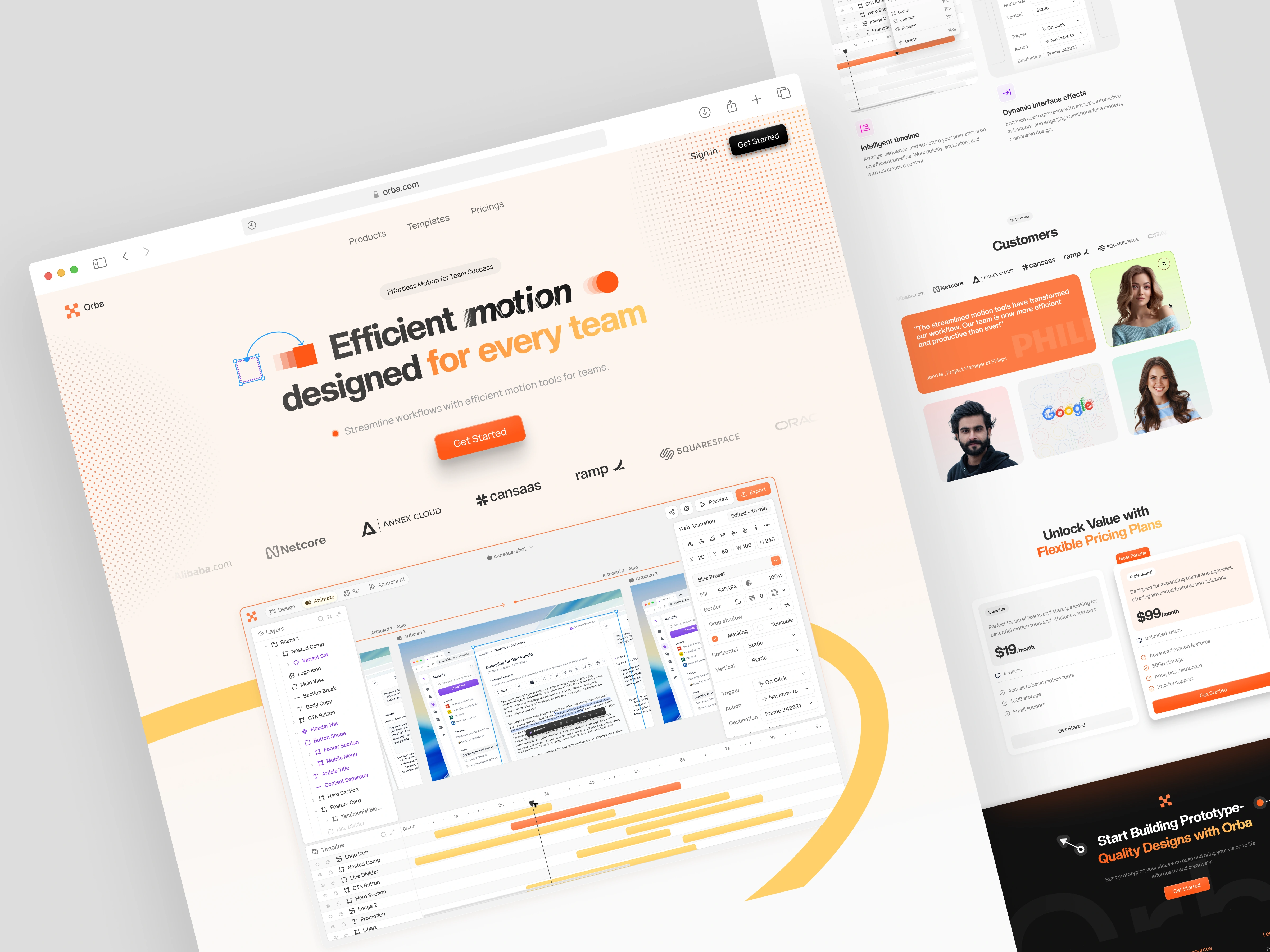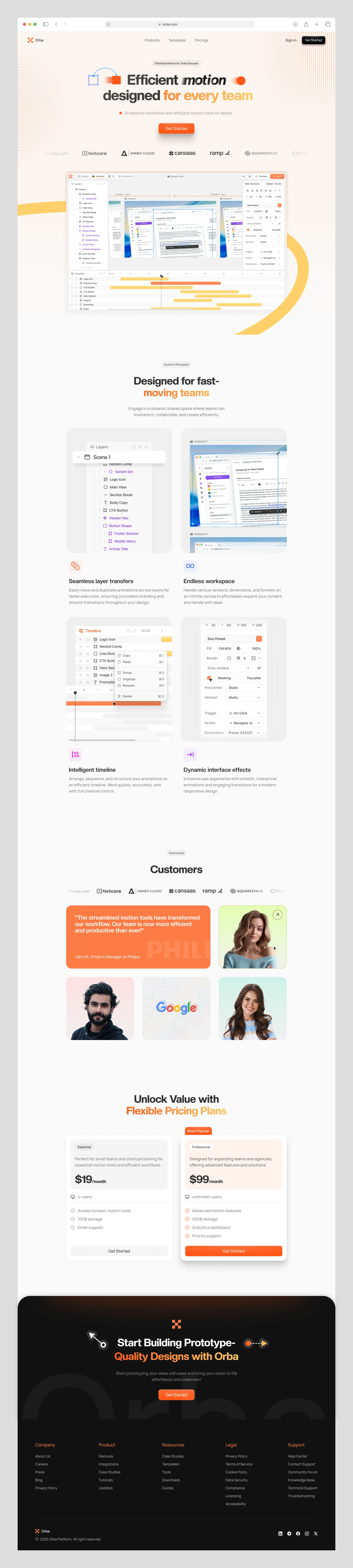 We designed a landing page that explains motion based prototyping with clear sections, previews, and pricing to help users understand Orba’s workflow tools.