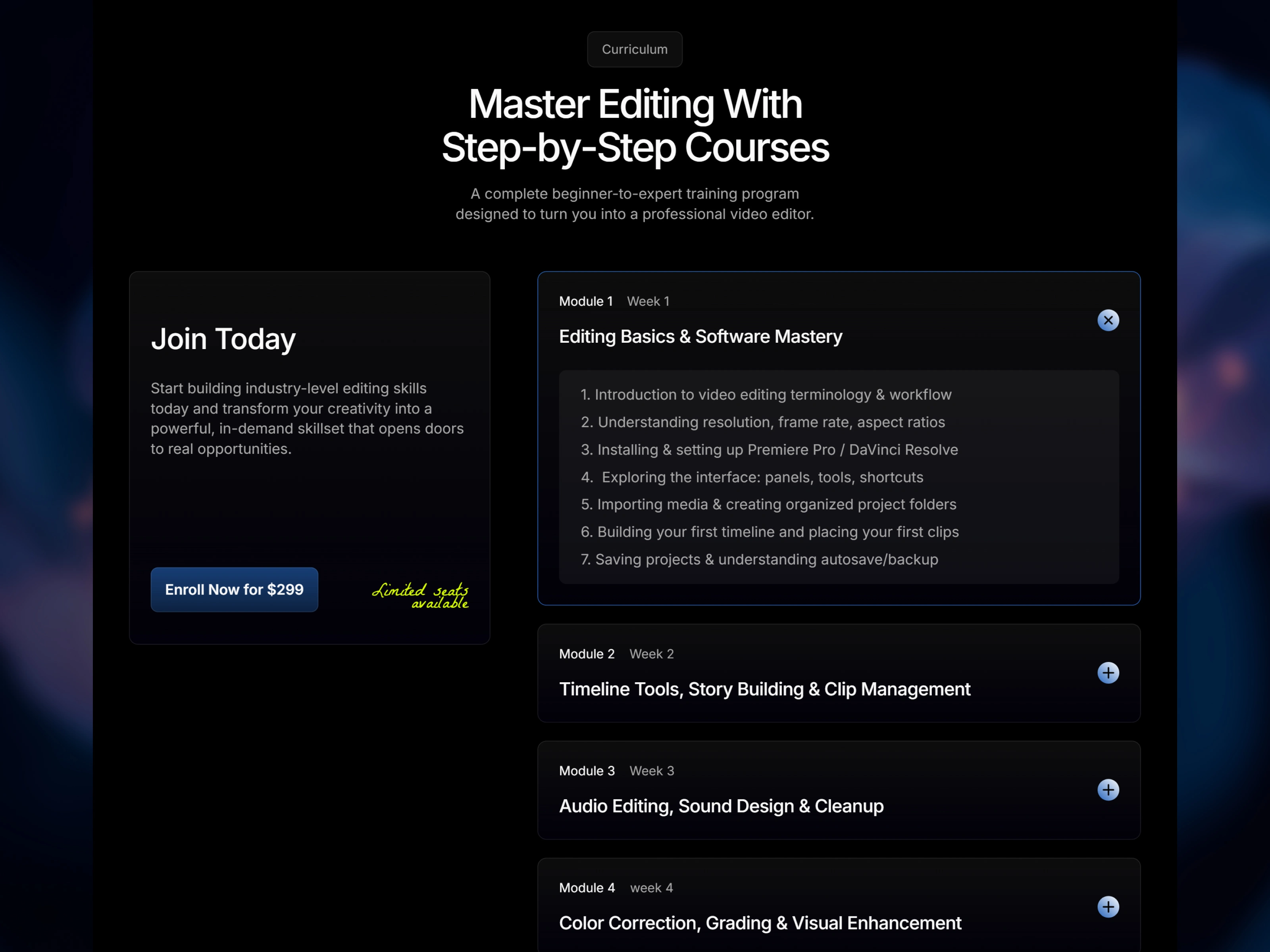 Structured Curriculum — A clean breakdown of modules and lessons to showcase your teaching path and build value.
