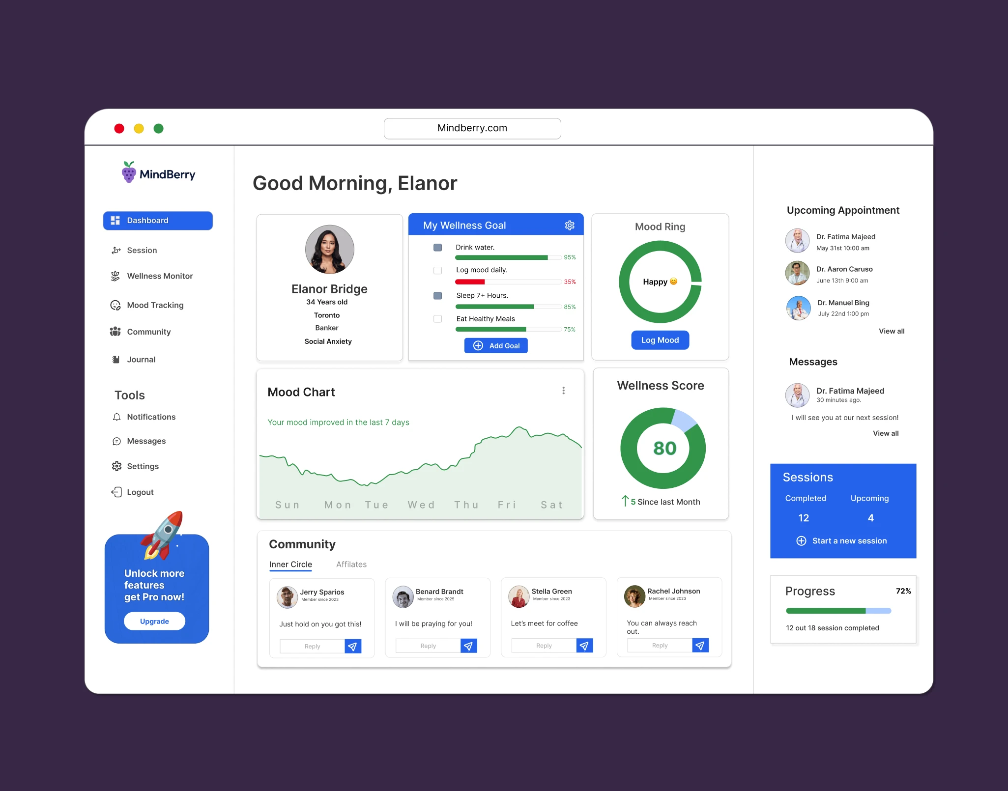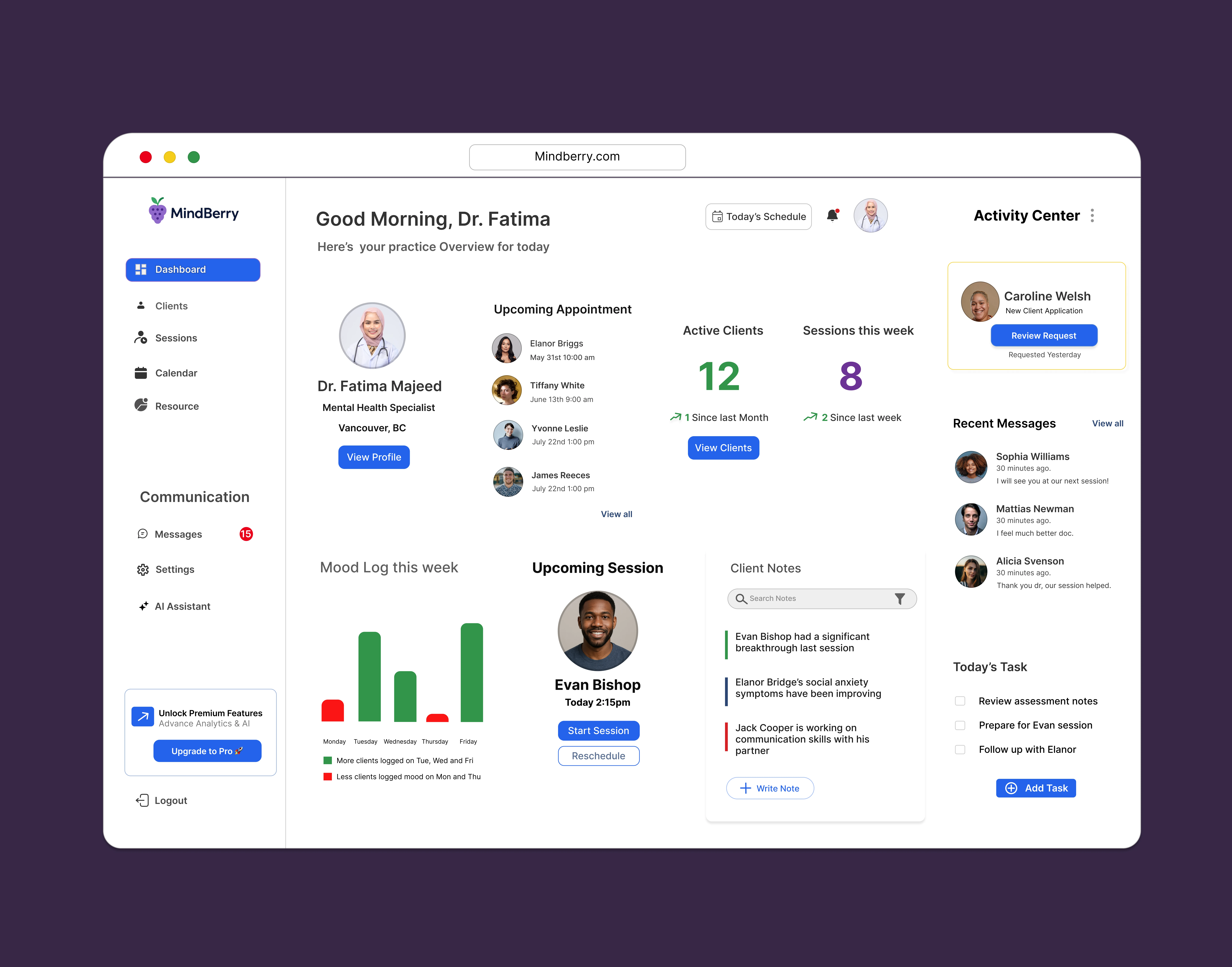 Mind Berry Mental Wellness Saas Dashboard and landing page