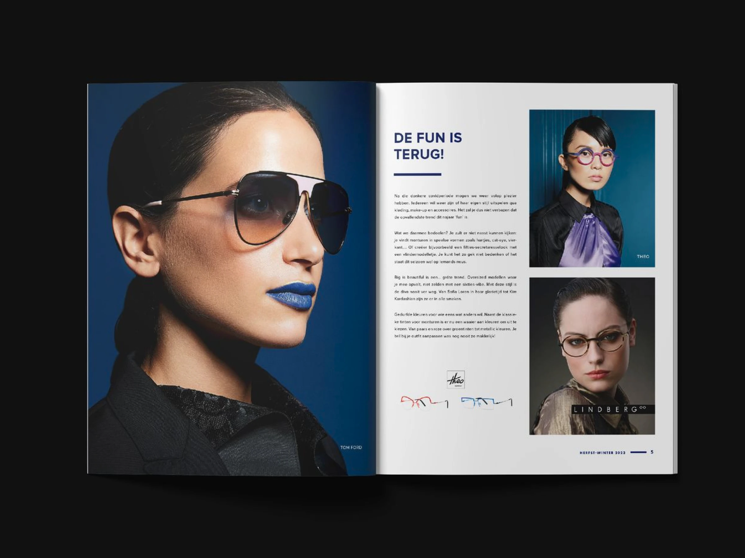 Designed Optiek Collette's bi-annual magazine, blending high-end eyewear and fashion. Directed shoots, managed brand content, and delivered striking visuals.