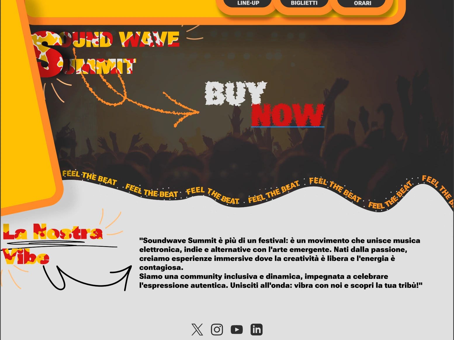 Progetto di identità visiva e web design per "Soundwave Summit", un festival di musica e arte emergente.