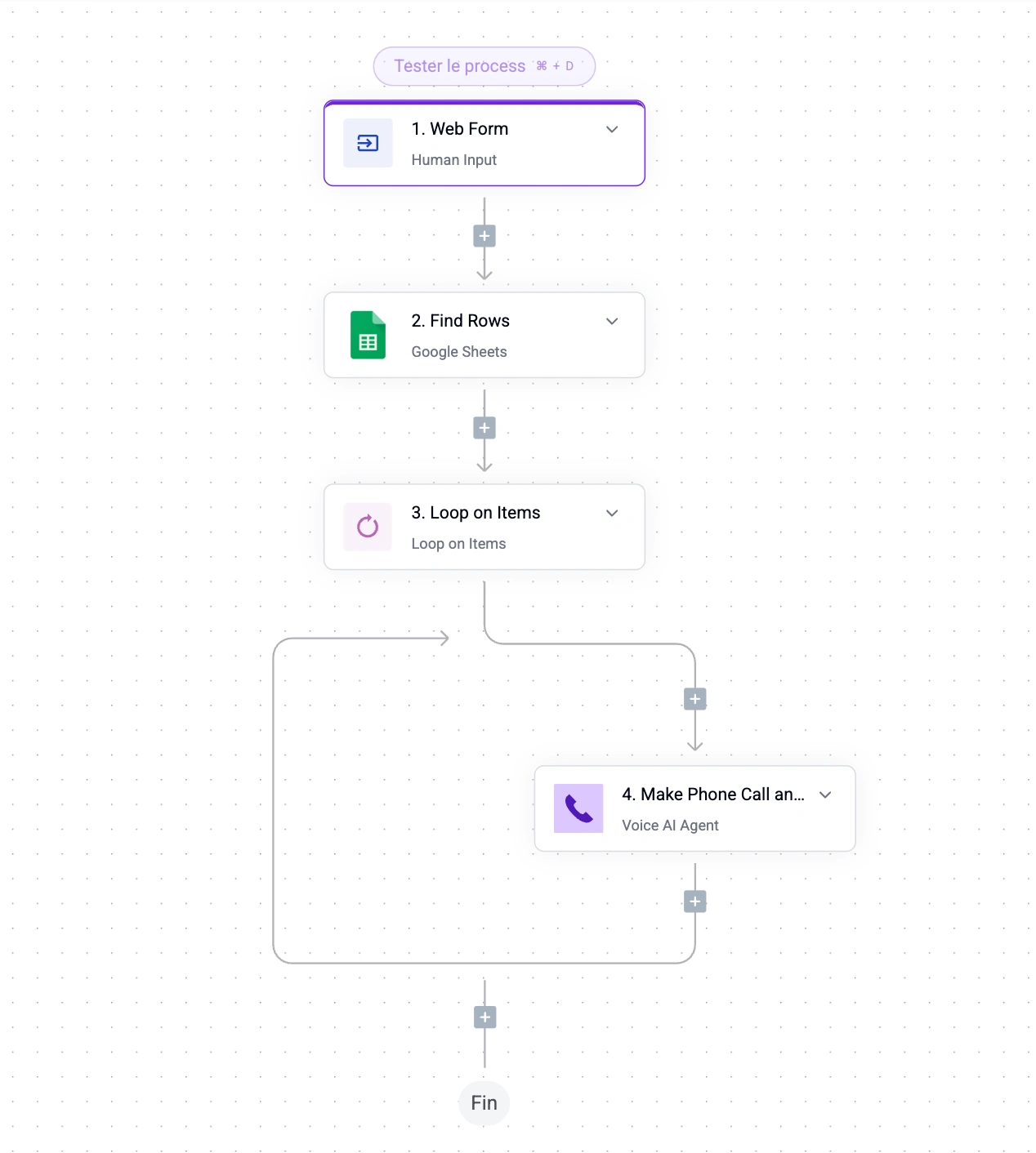 Making a flow to prospect clients from a google sheet and resolving bugs. Then adding them to the CRM Hubspot as contacts if they accepted a follow up call.