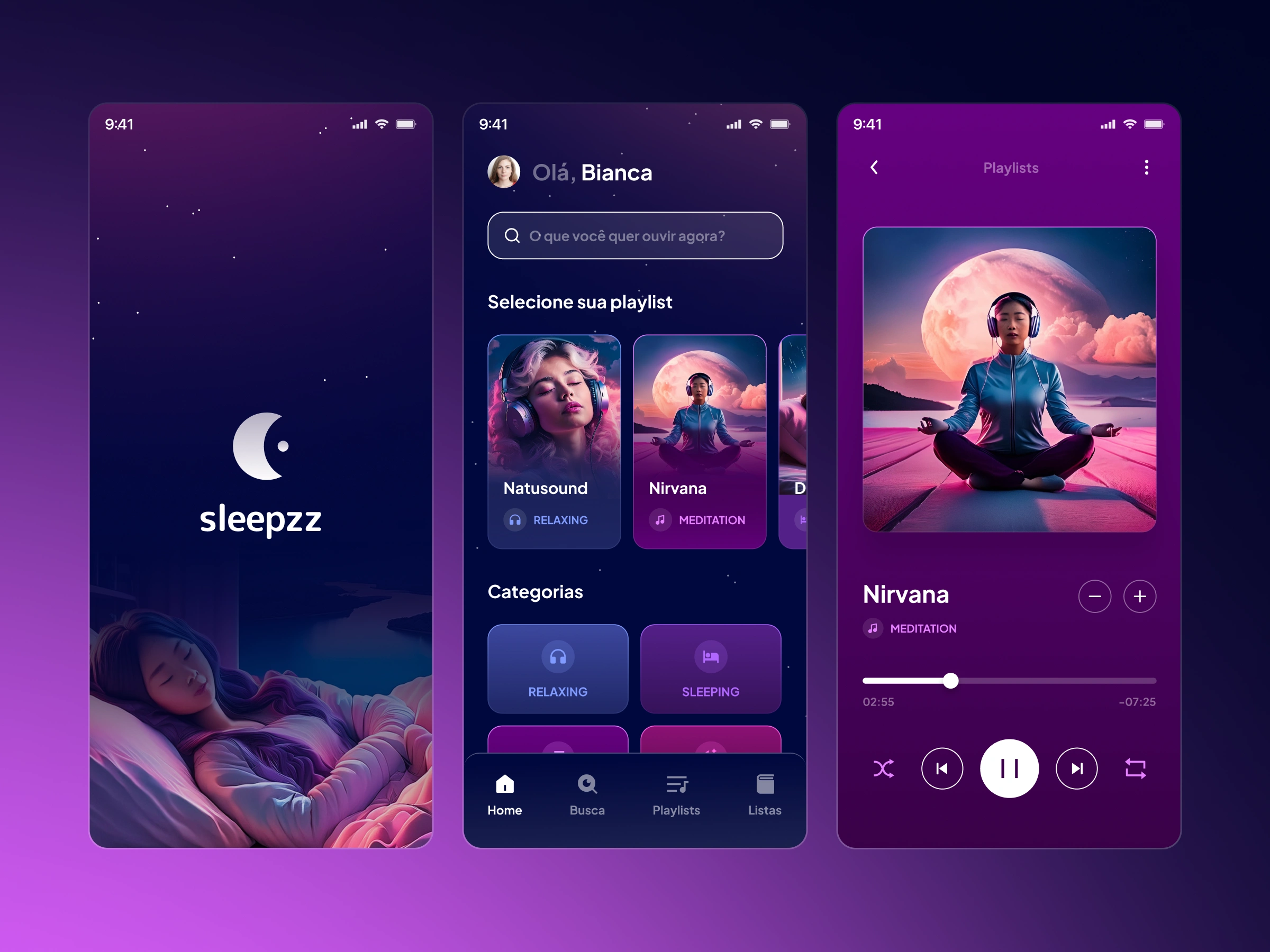 💤 The design explores how a sleep app can combine functionality and aesthetics, offering structured UI screens that balance clarity and visual harmony.