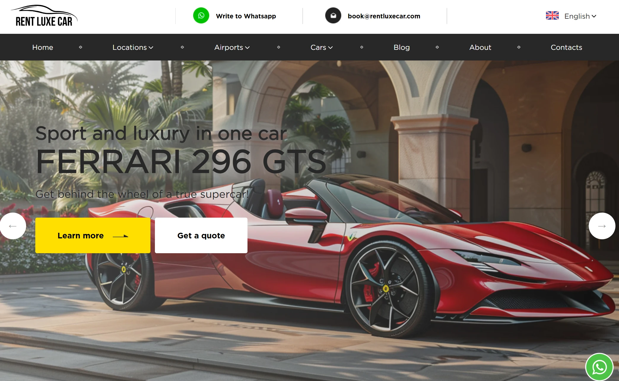 I was contracted to build a luxury car rental platform inspired by Rent Luxe Car, focusing on high-performance UX and premium visual experience. I developed a responsive web application using Next.js, React, TypeScript, Tailwind CSS, and Framer Motion, implementing dynamic vehicle listings, advanced filtering (location, brand, category), and conversion-optimized booking flows.