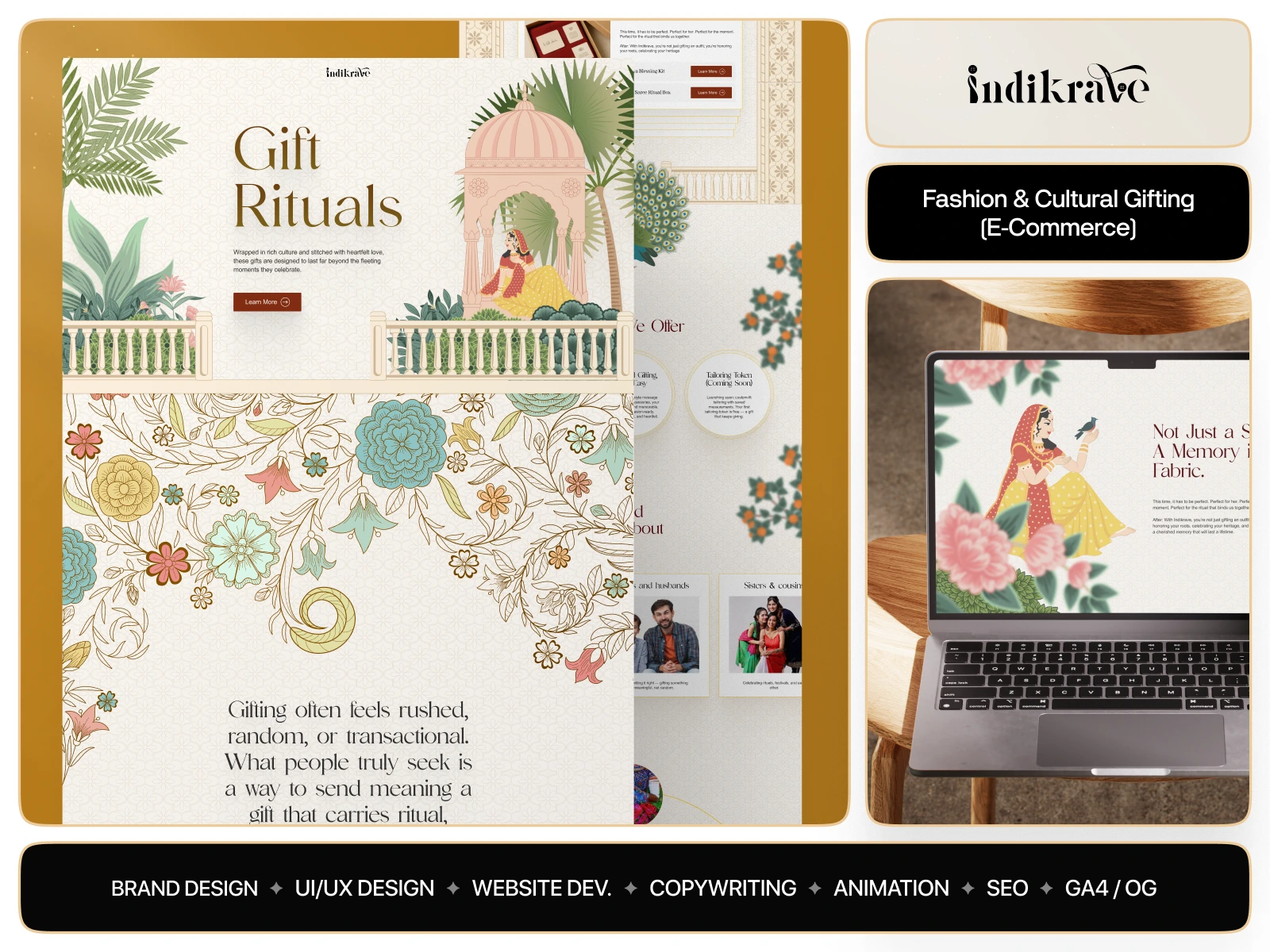 Crafted brand identity and designed a modern gifting platform, showcasing artisanal products with an emotional, storytelling-driven experience.