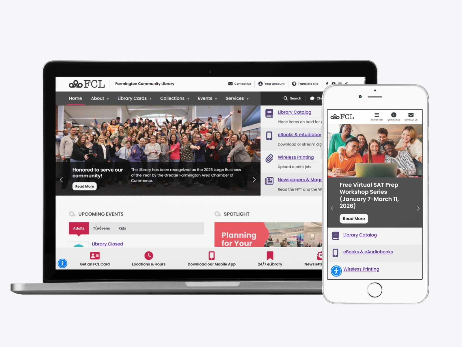 For the Farmington Community Library, an online resource hub for agricultural knowledge, I delivered a fully custom digital solution powered by Umbraco CMS. The project started with a clear goal: to create an intuitive, clean, and engaging user experience that makes it easy for visitors to discover and explore a wide range of online resources. The visual design and layout were crafted to support clarity, accessibility, and a strong sense of trust and authority.