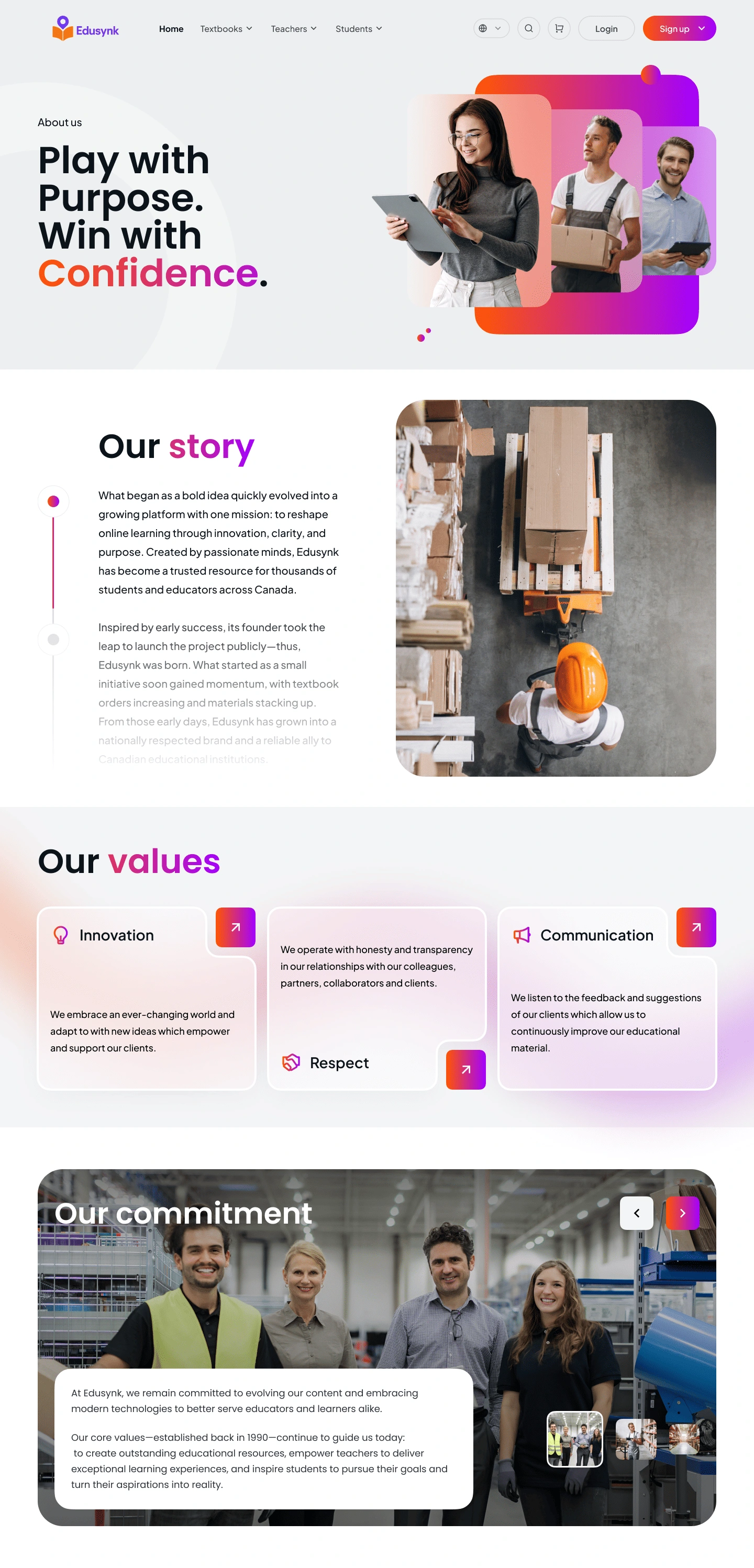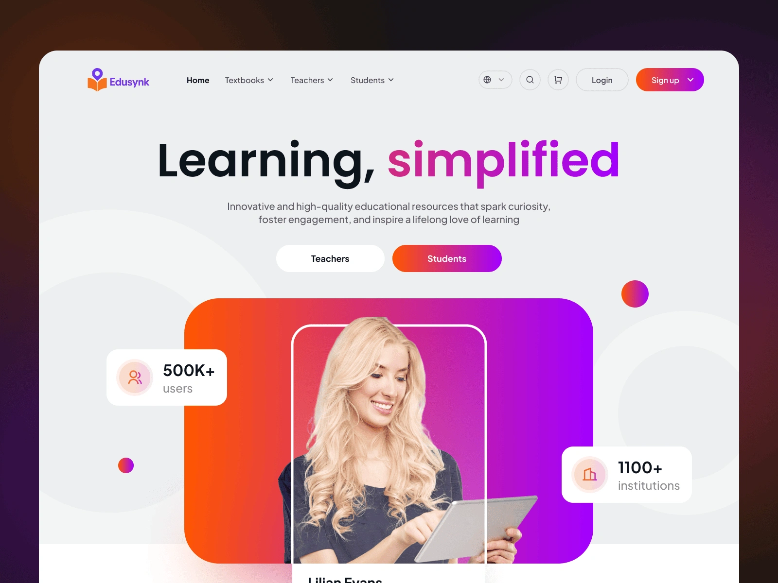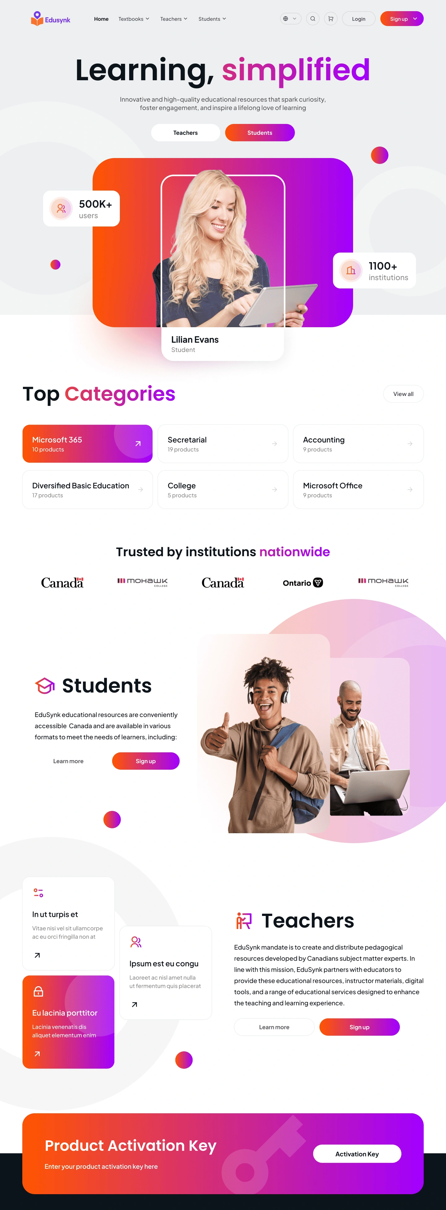 Homepage redesign for Edusynk, optimizing access to learning resources for students and teachers in Canada