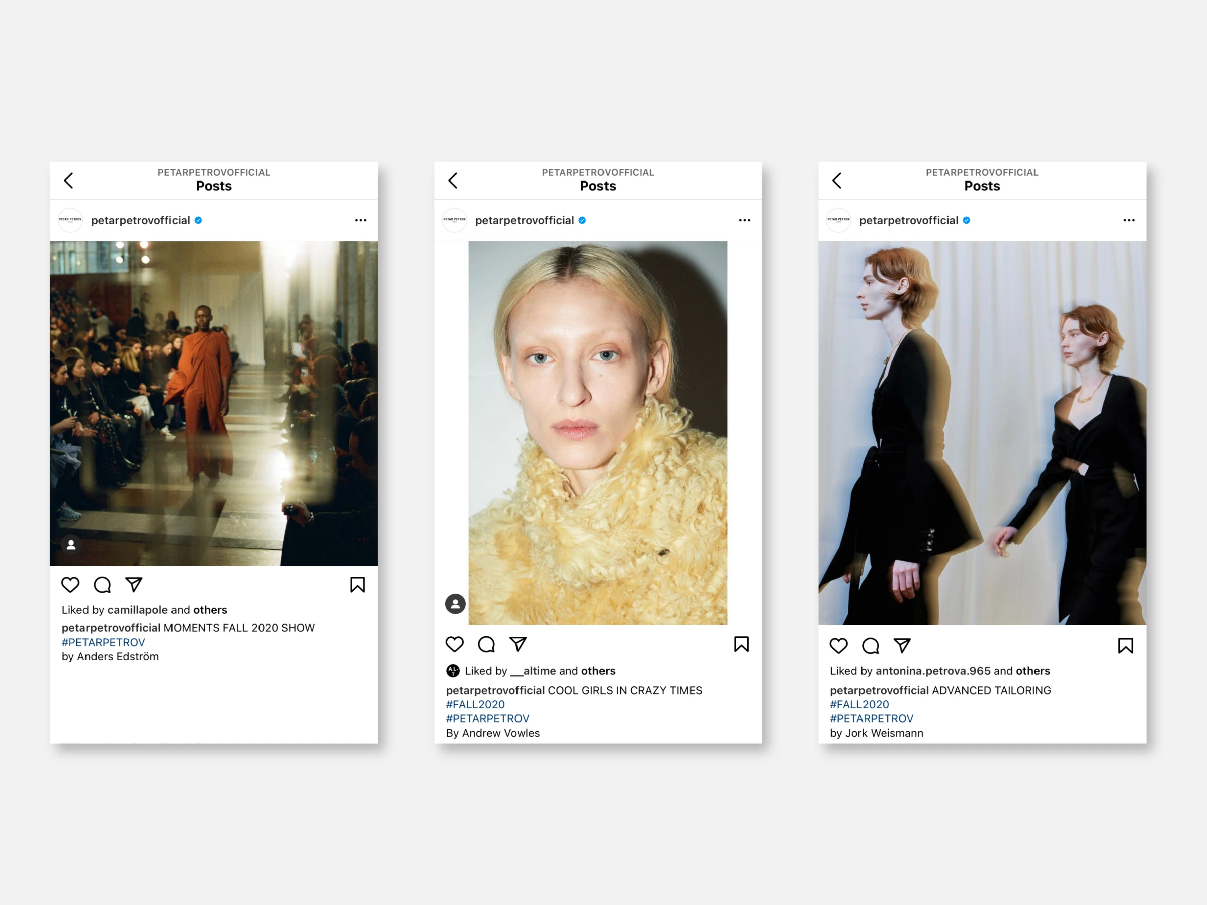 Designed the lookbook, social assets, and event collateral for Petar Petrov FW20—blending diverse visuals into a cohesive campaign under tight deadlines.