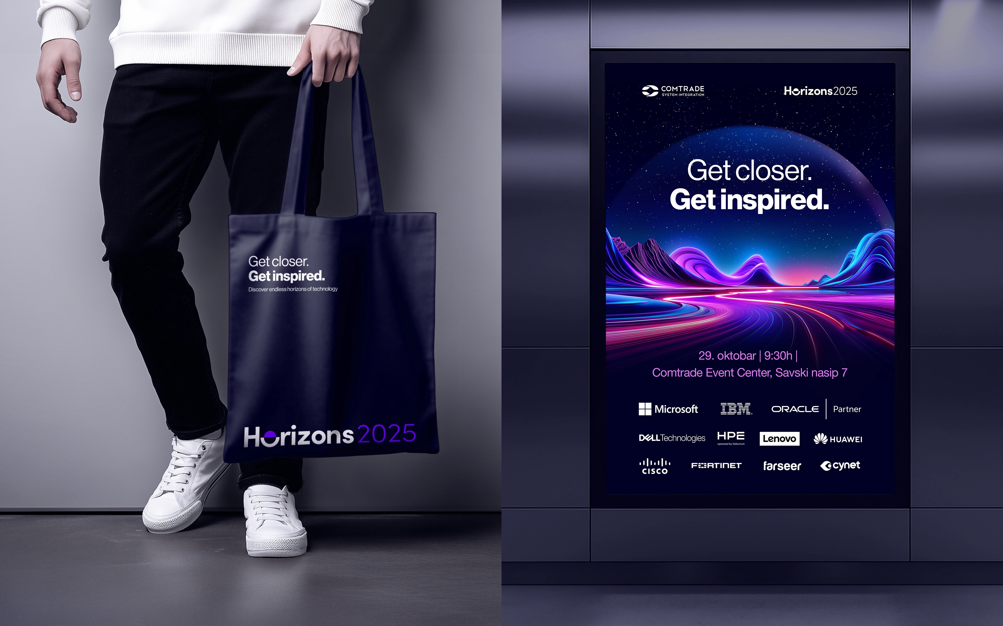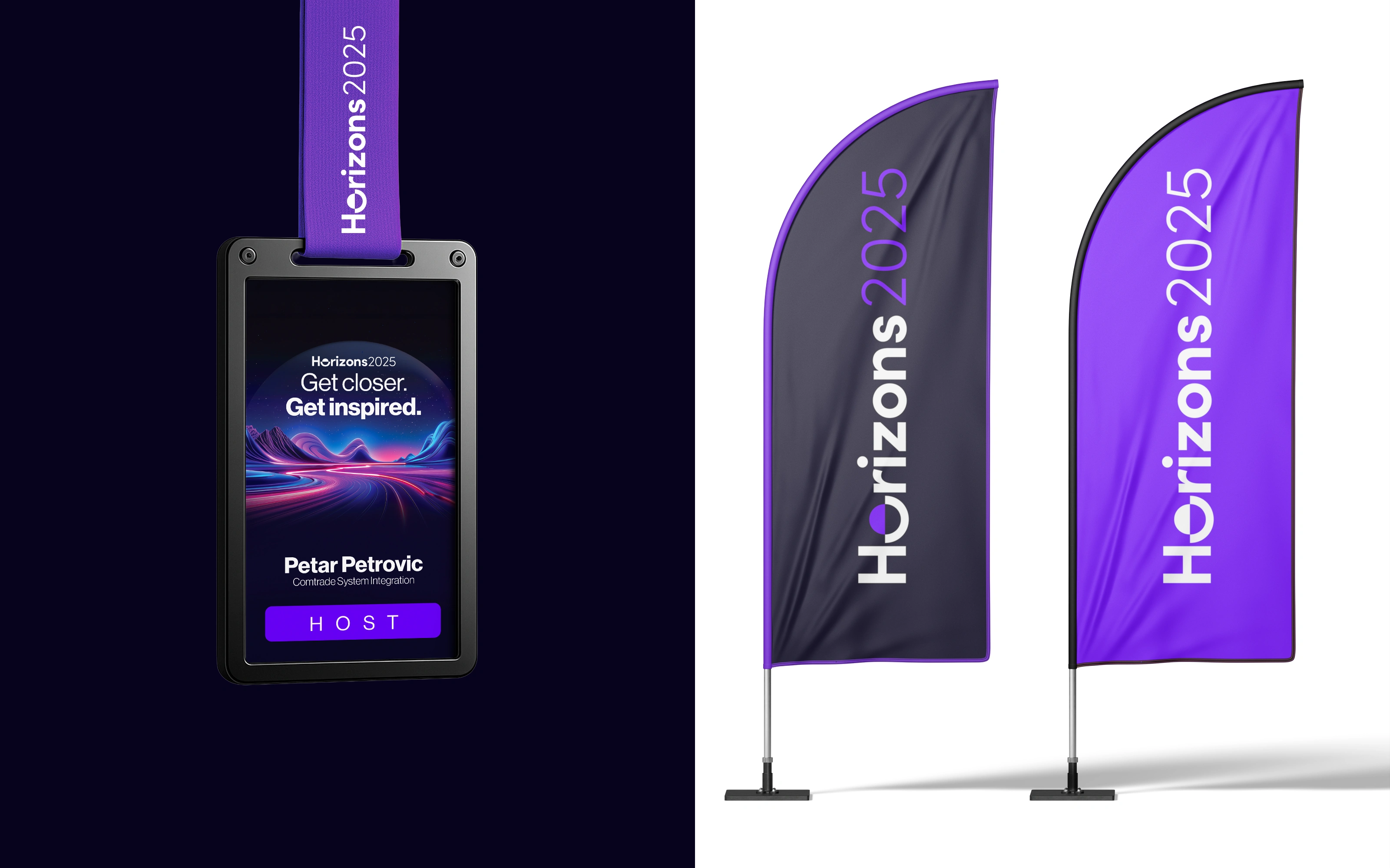 The visual identity of the Horizons conference reflects this forward-looking spirit and strong technological focus.
