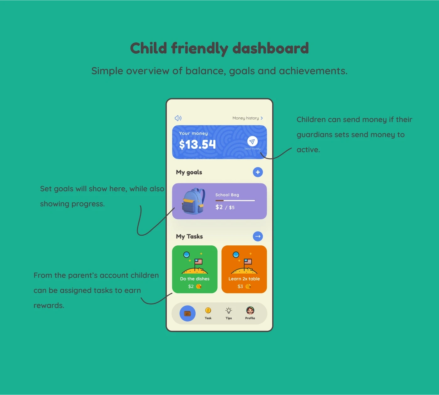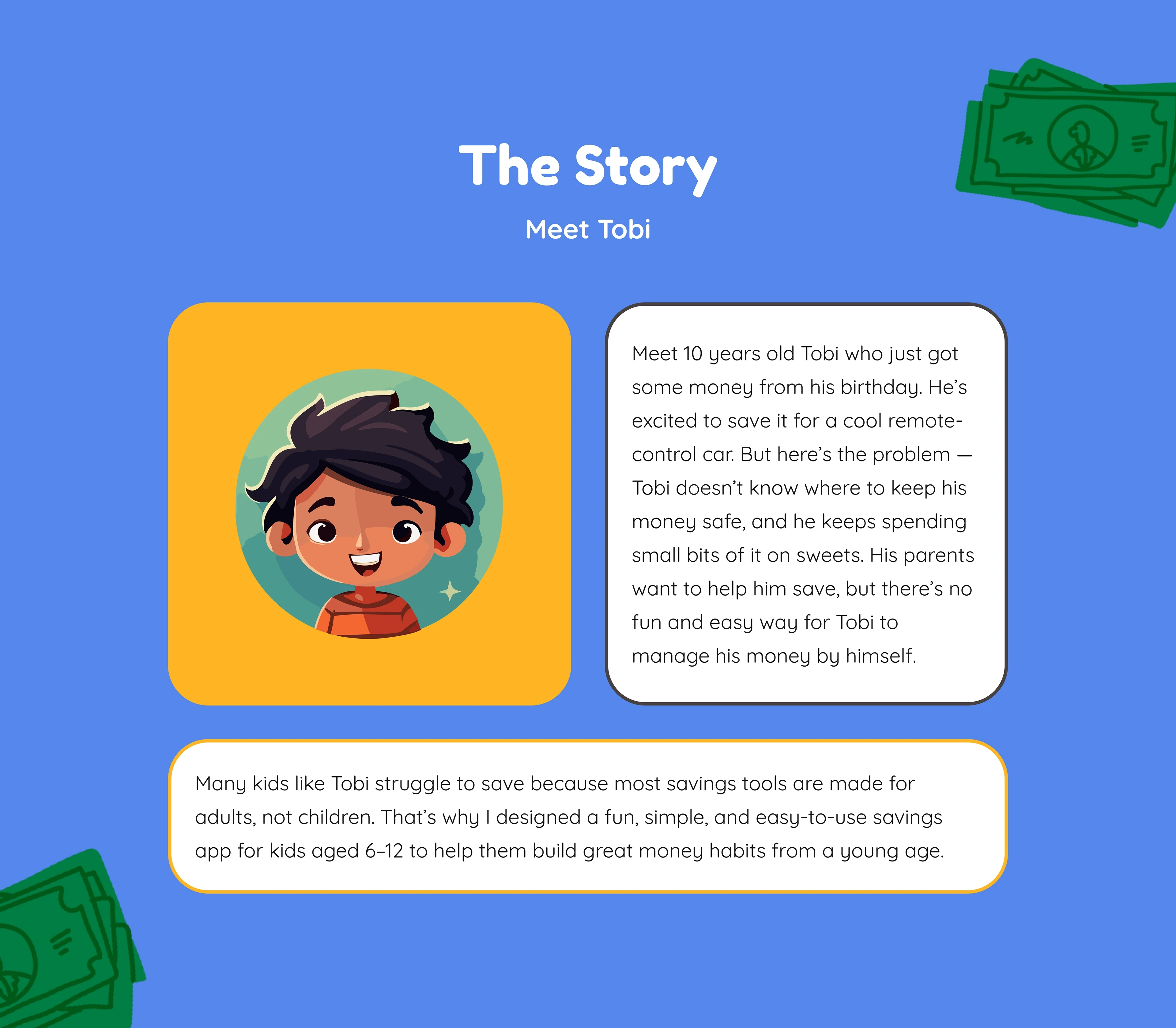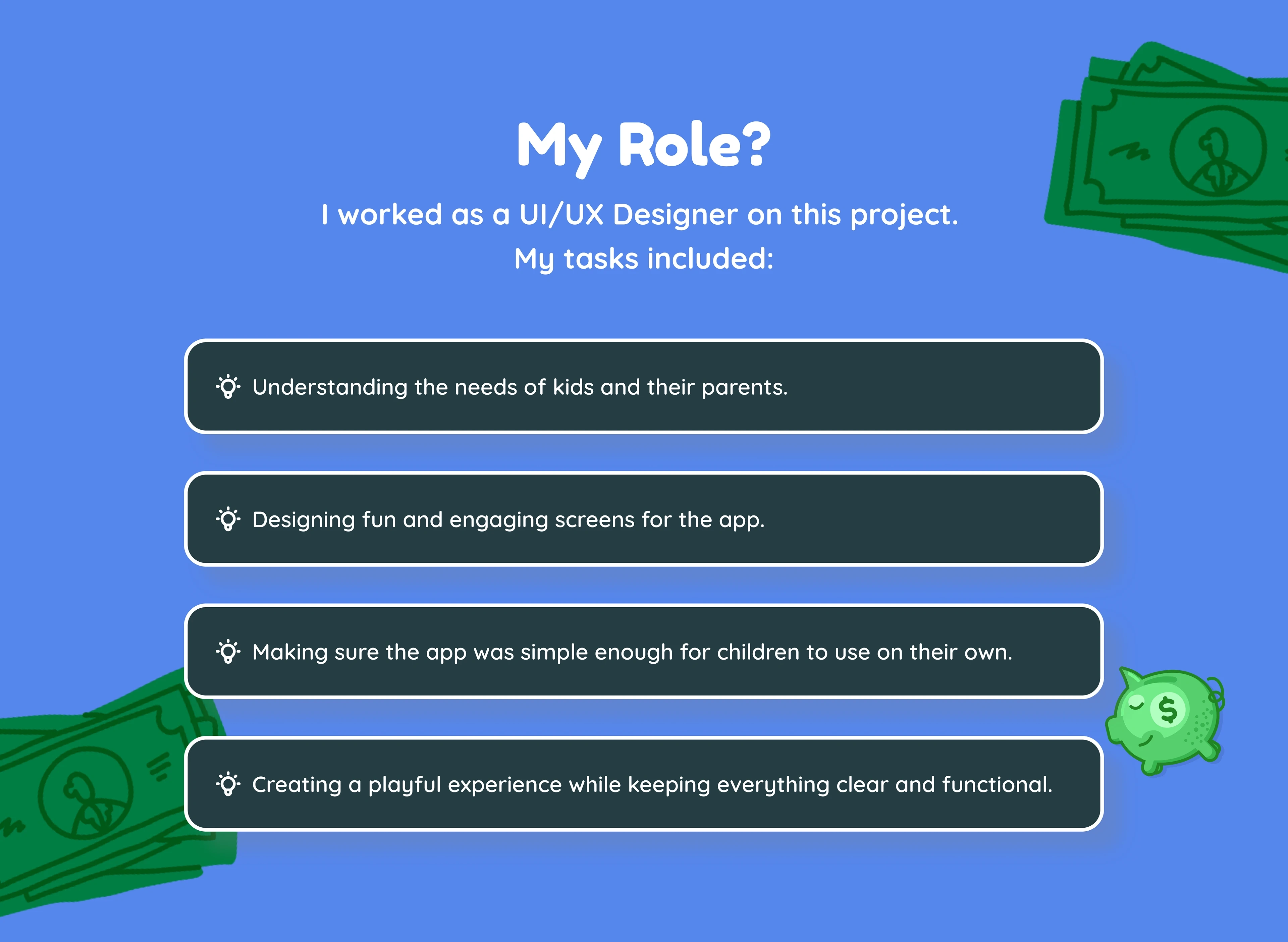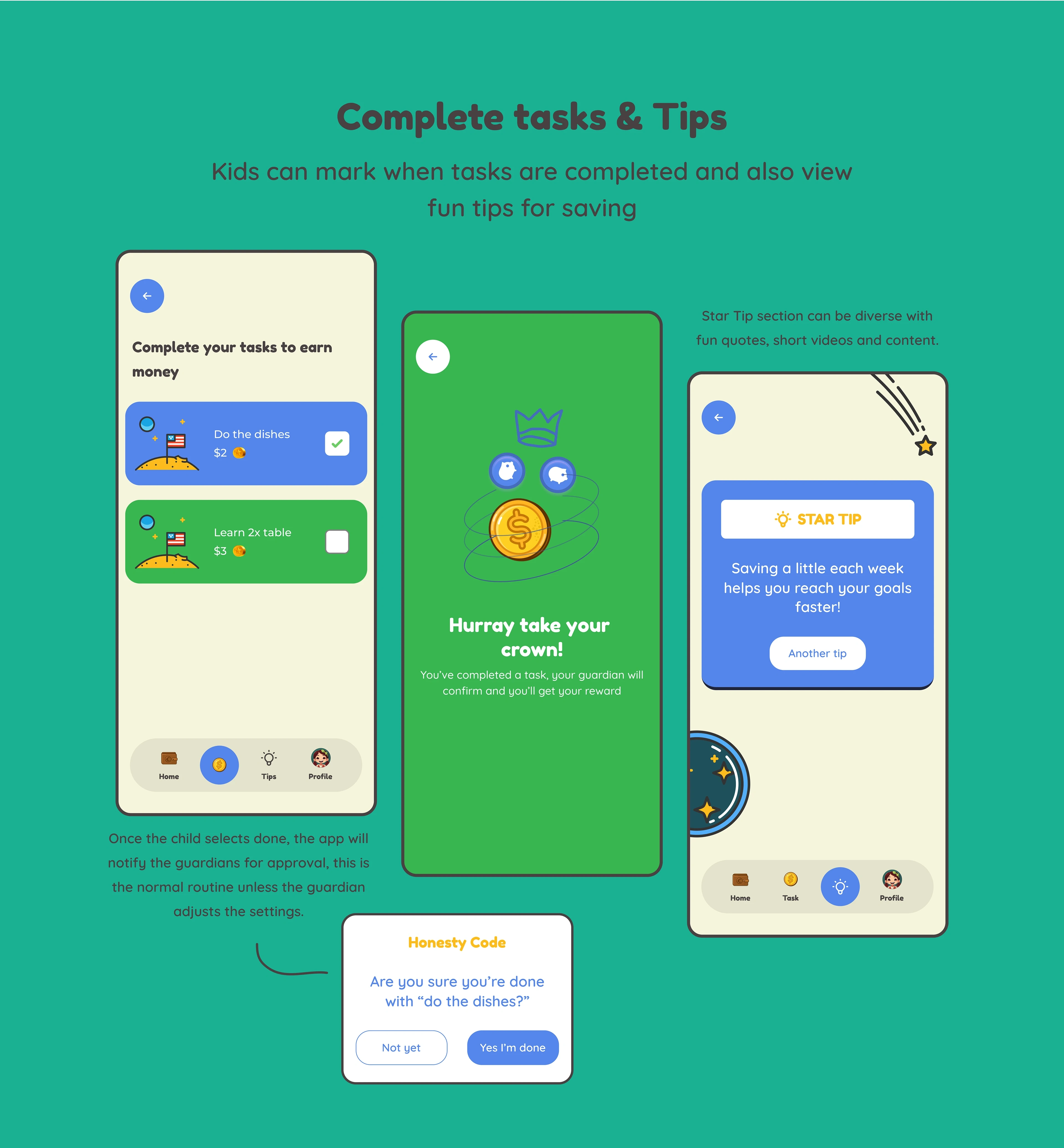 Designed a savings app for children that increased task completion by 40% through simplified UX, while keeping it fun, safe, and parent-supervised.