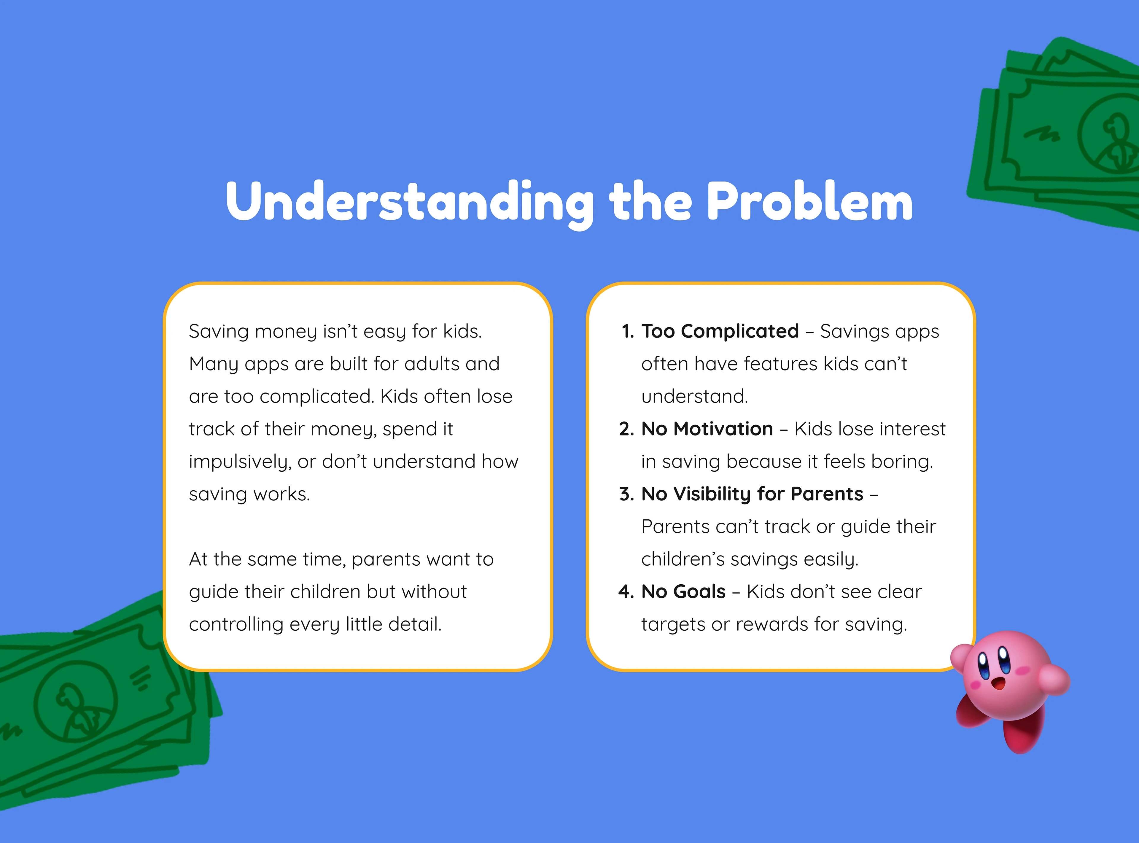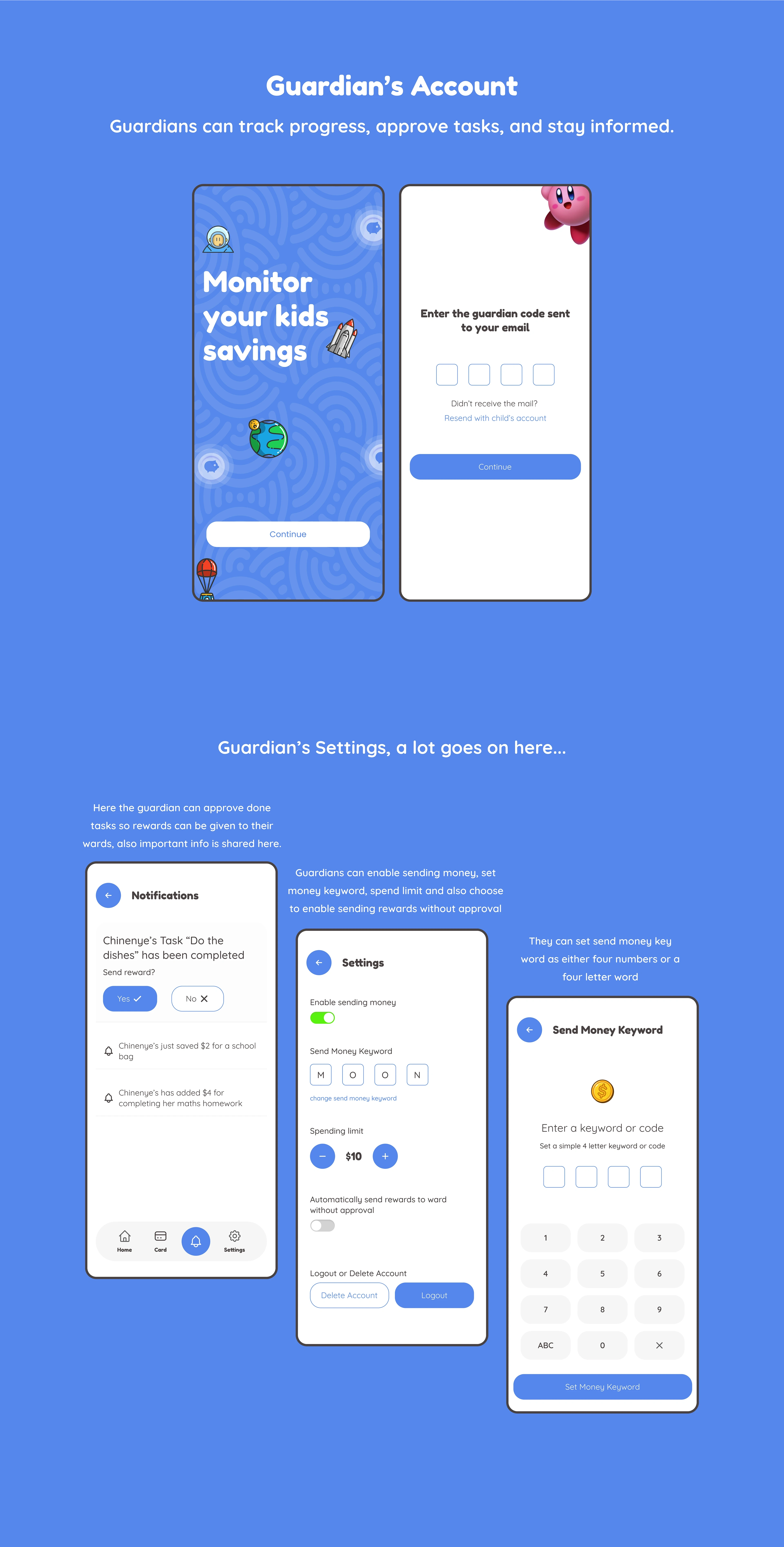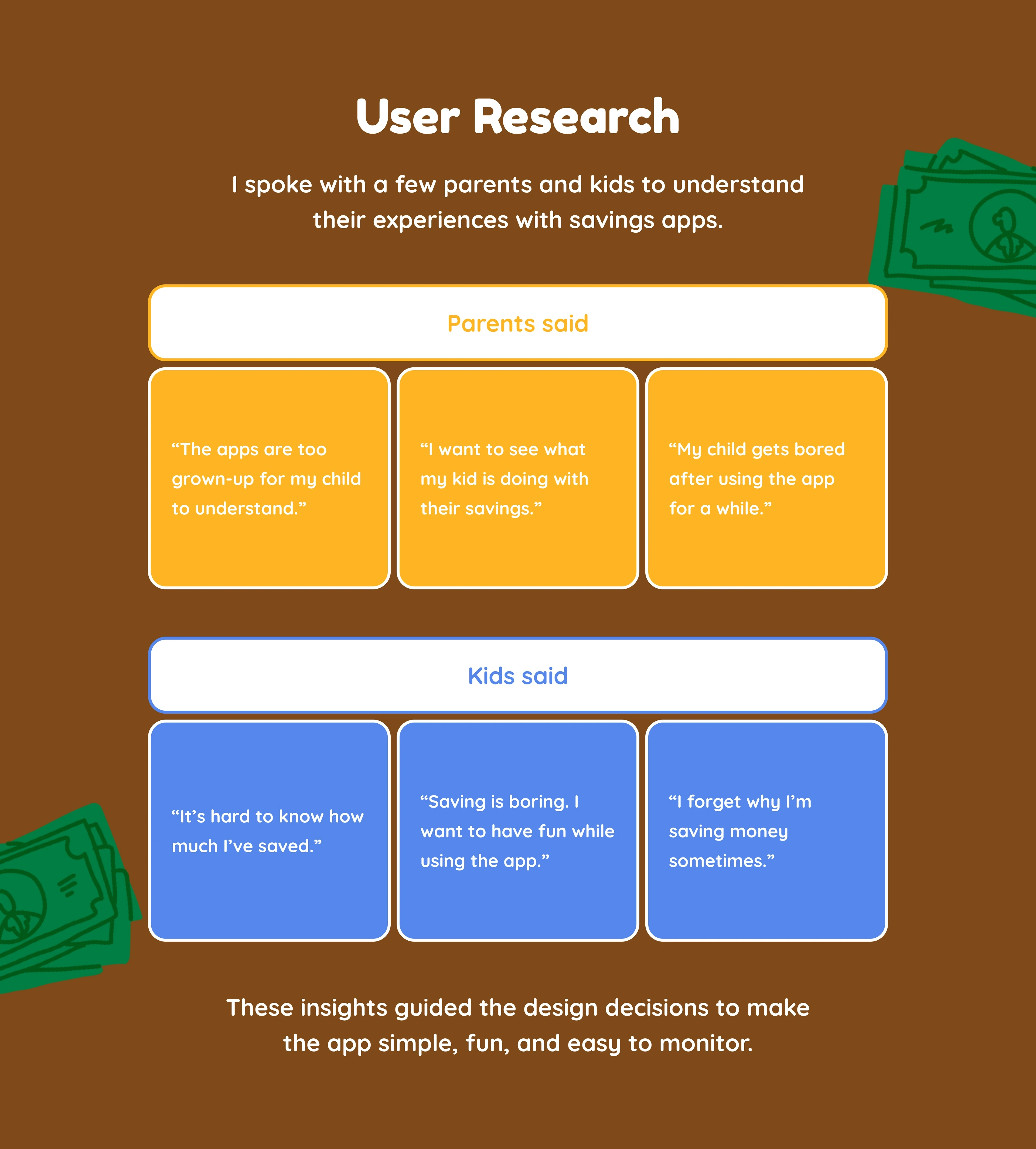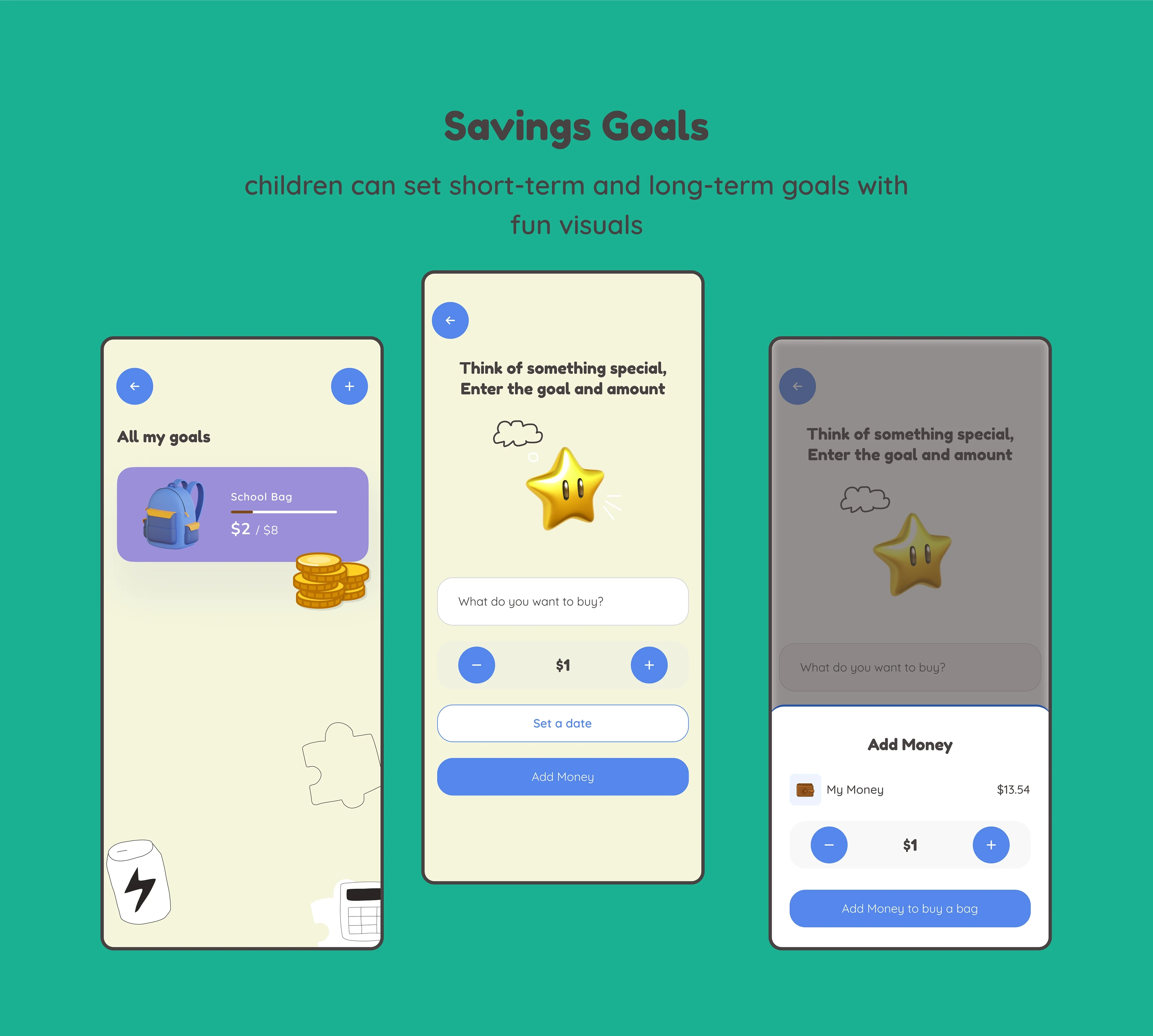 Designed a savings app for children that increased task completion by 40% through simplified UX, while keeping it fun, safe, and parent-supervised.
