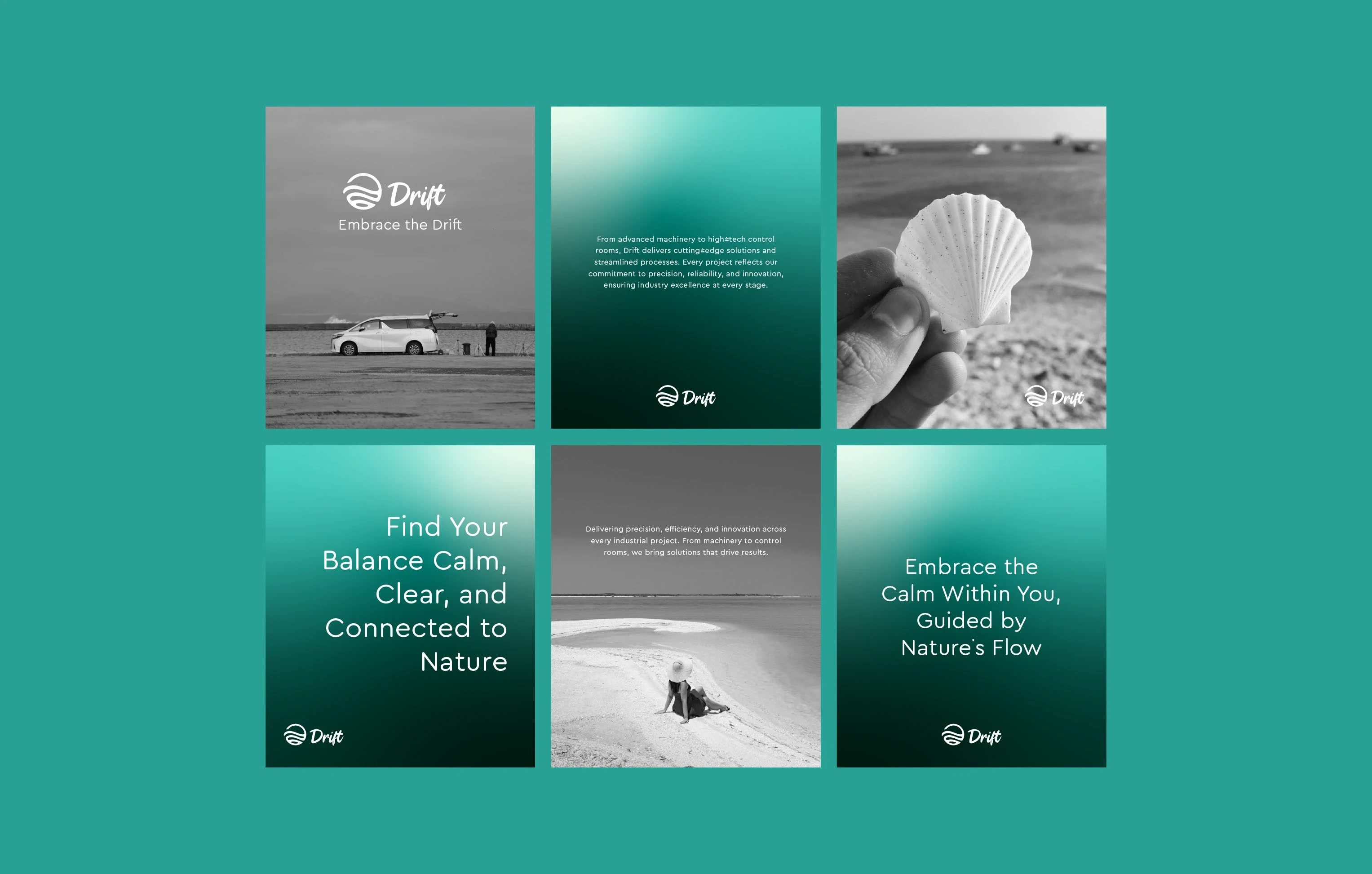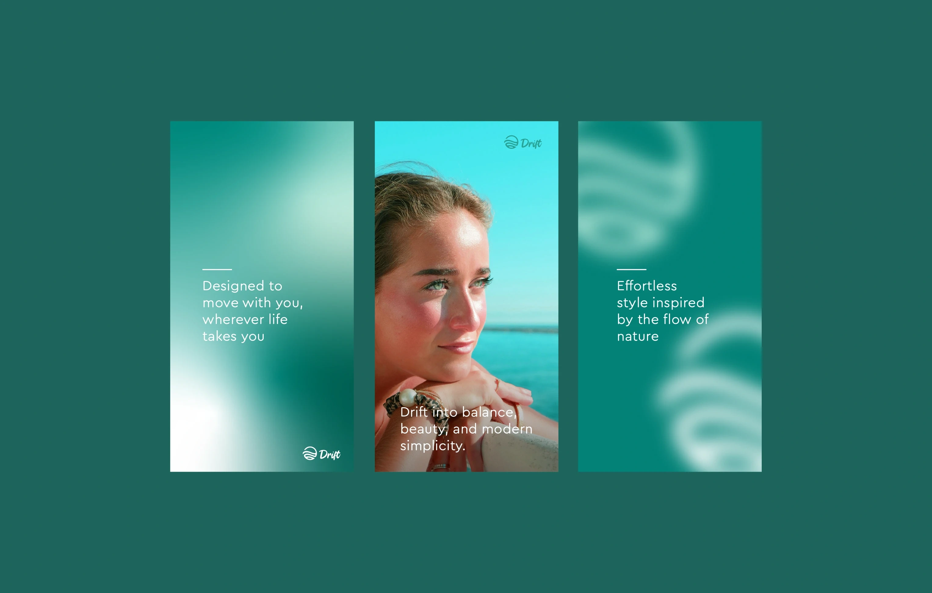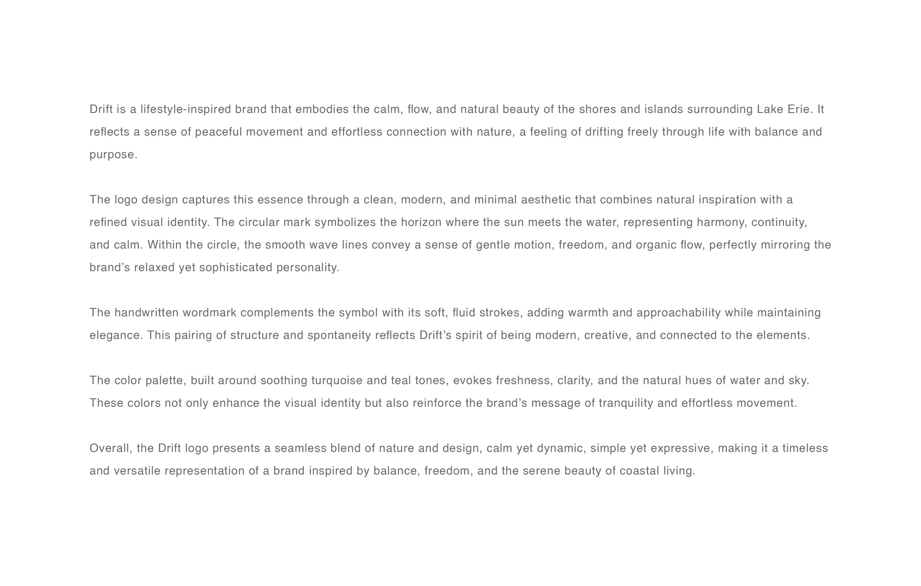 Drift is a minimal, nature-inspired brand identity built around calm, flow, and balance. The design takes inspiration from soft water waves, the horizon, and s…