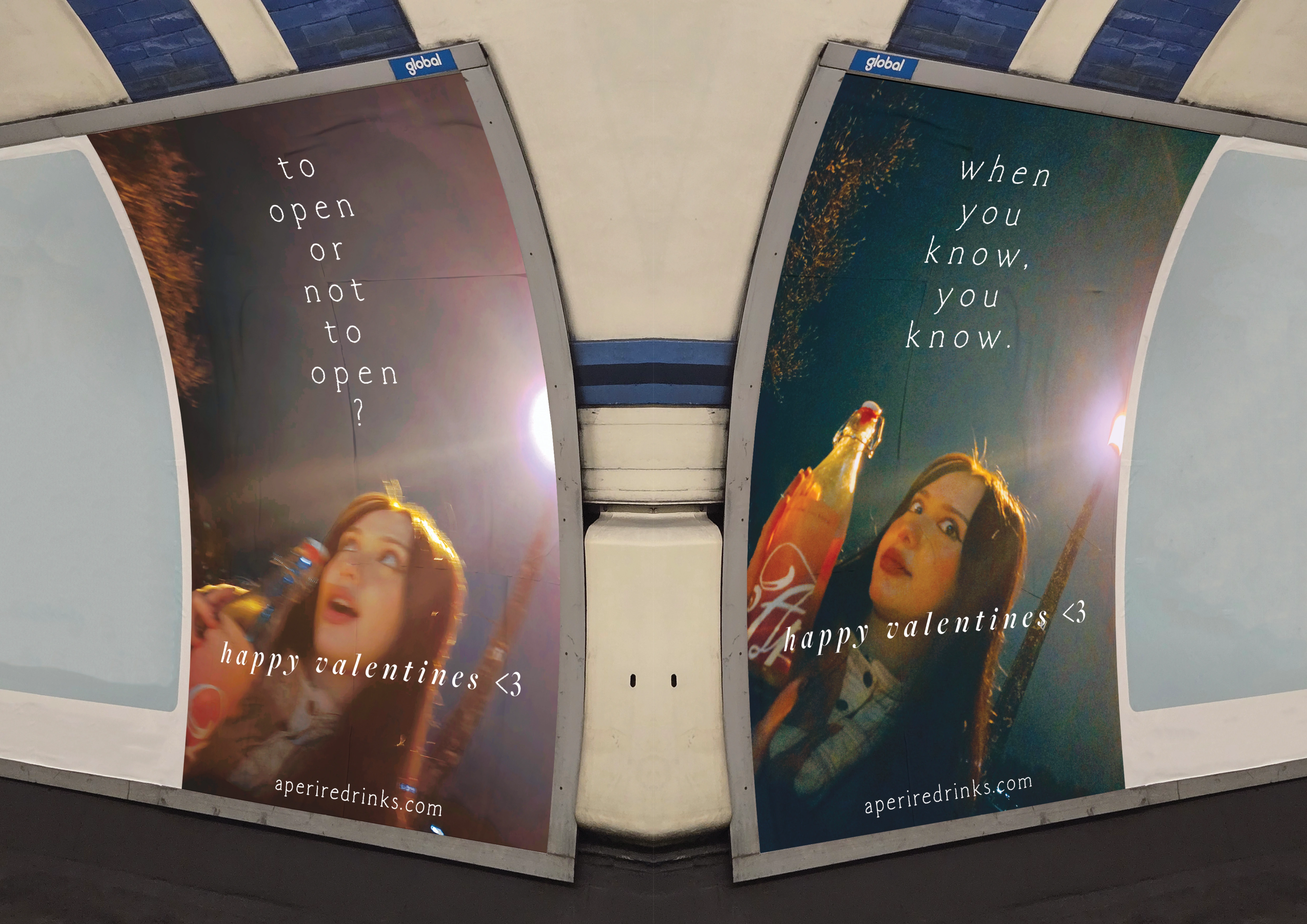 Designed to convey the essence of “when you know, you know”. Focusing on the wrap-around Aperire wordmark and the brand tagline, when the drink is finished & the full wordmark can be seen through the bottle.