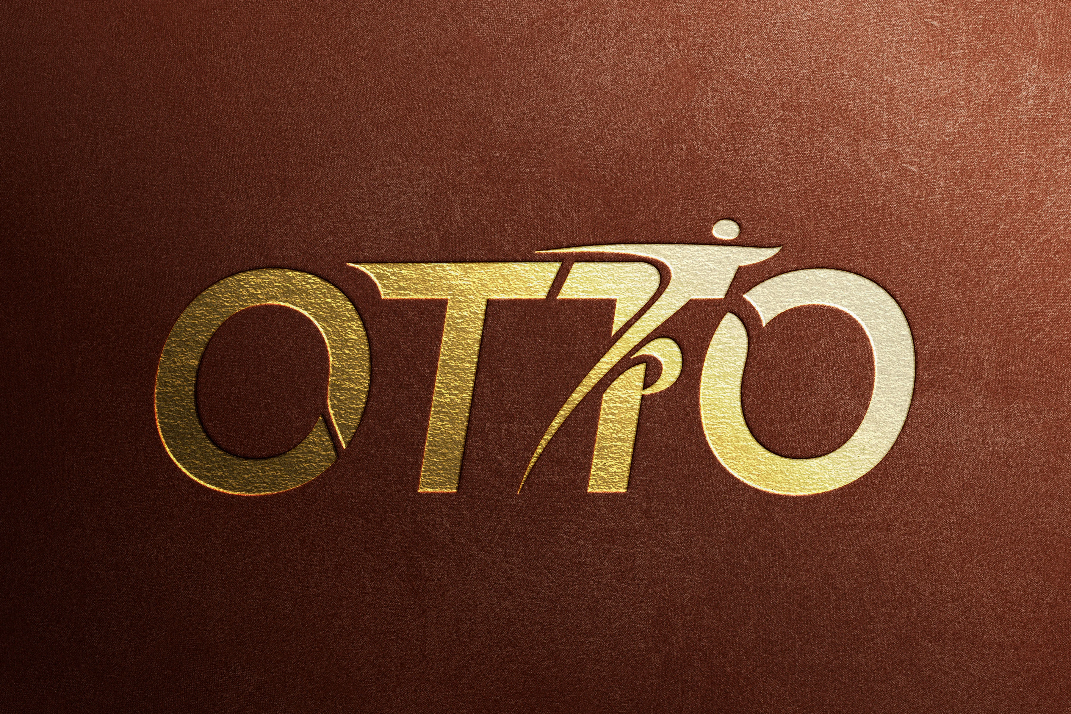 This image showcases the word "OTTO" rendered in a rich, textured gold, appearing as if embossed onto a deep brown, almost leather-like surface