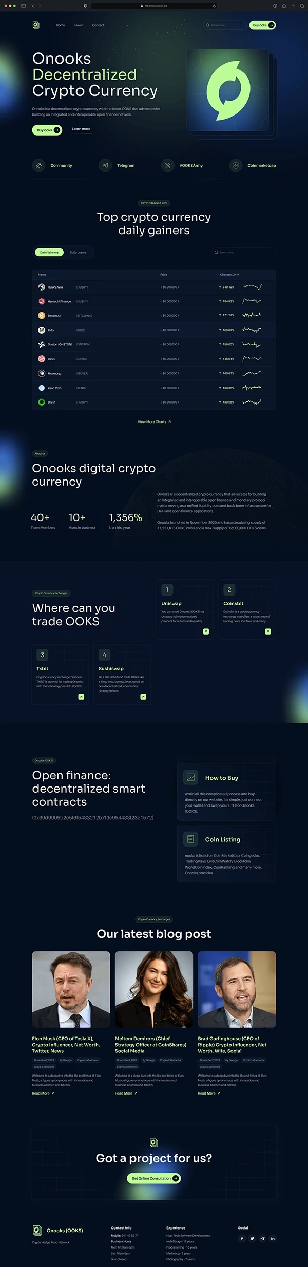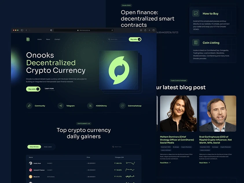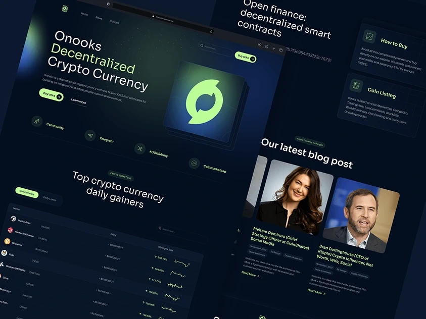 A cryptocurrency trading platform landing page design showcasing modern UI/UX for blockchain and finance applications.