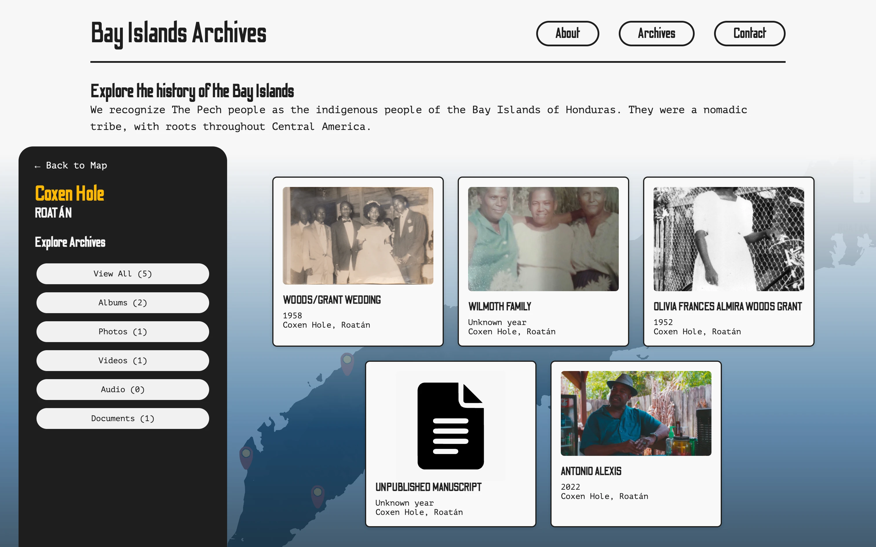 I was hired to bring this idea to life from design to development: a clean, responsive website, a CMS for managing archive entries, filtering systems, and an interactive map connecting stories to specific locations. The biggest priority was functionality. The site needed to work seamlessly on mobile devices and remain simple enough for less tech-savvy users, since much of the audience would be islanders accessing the site on their phones.