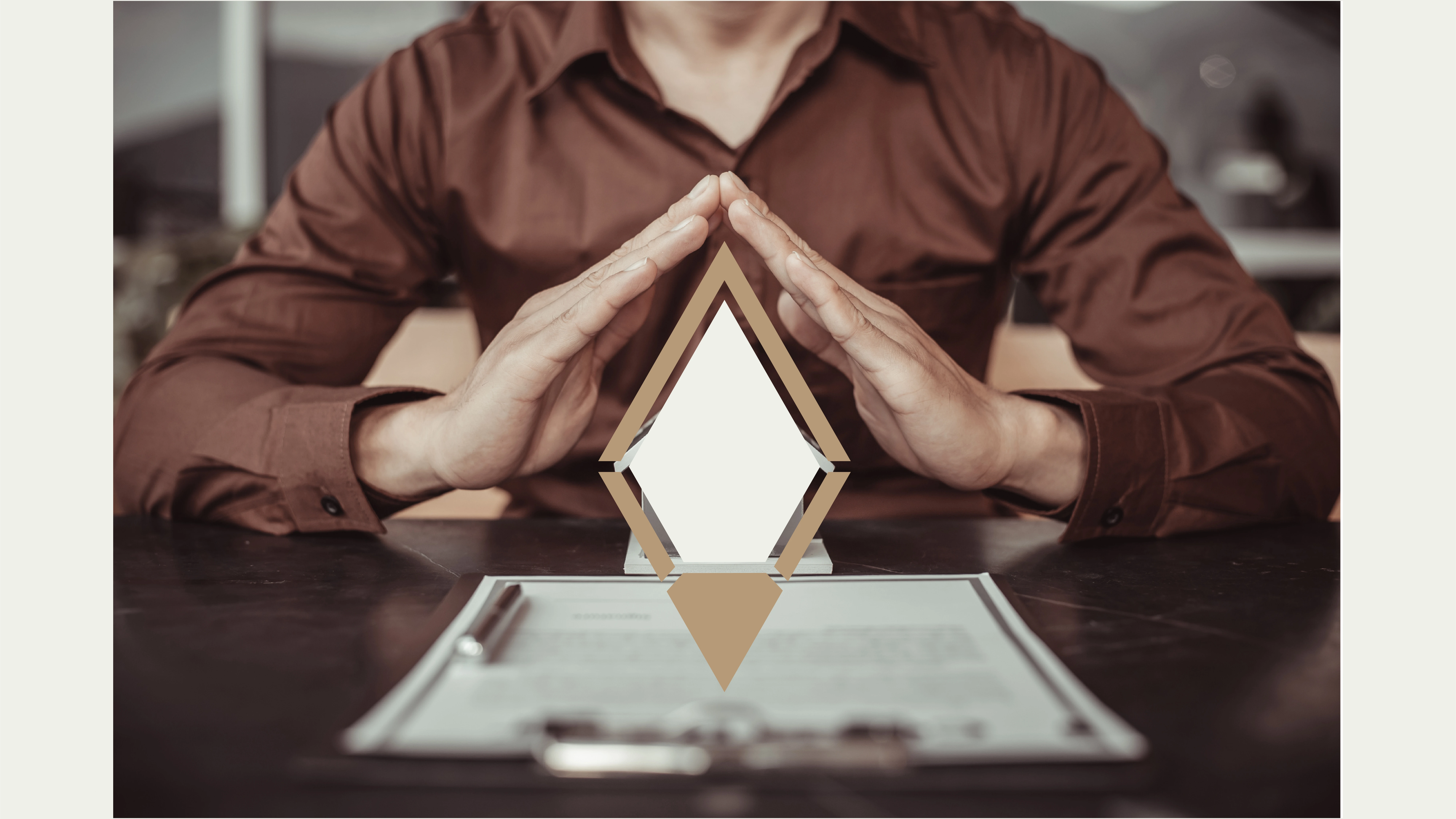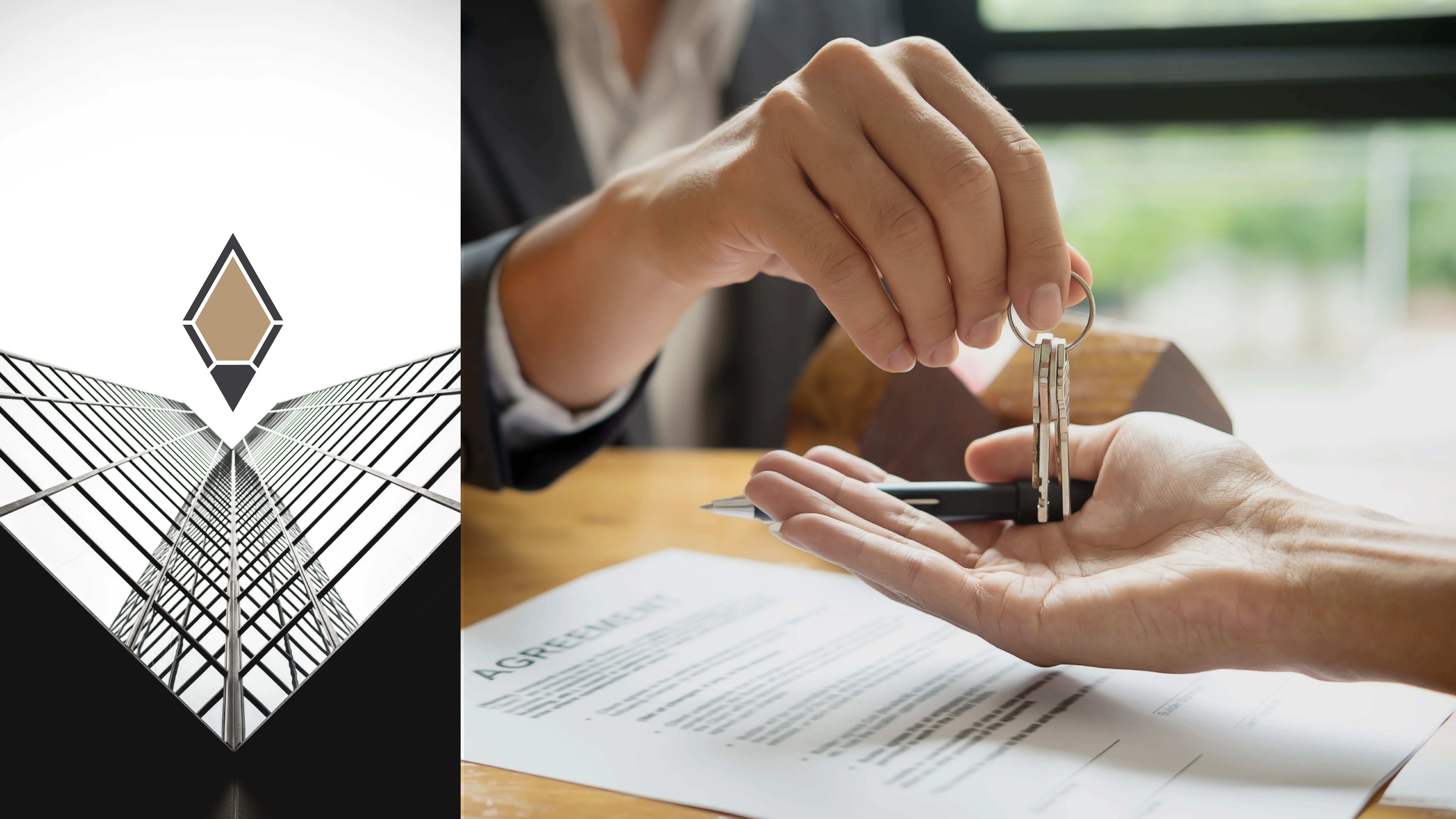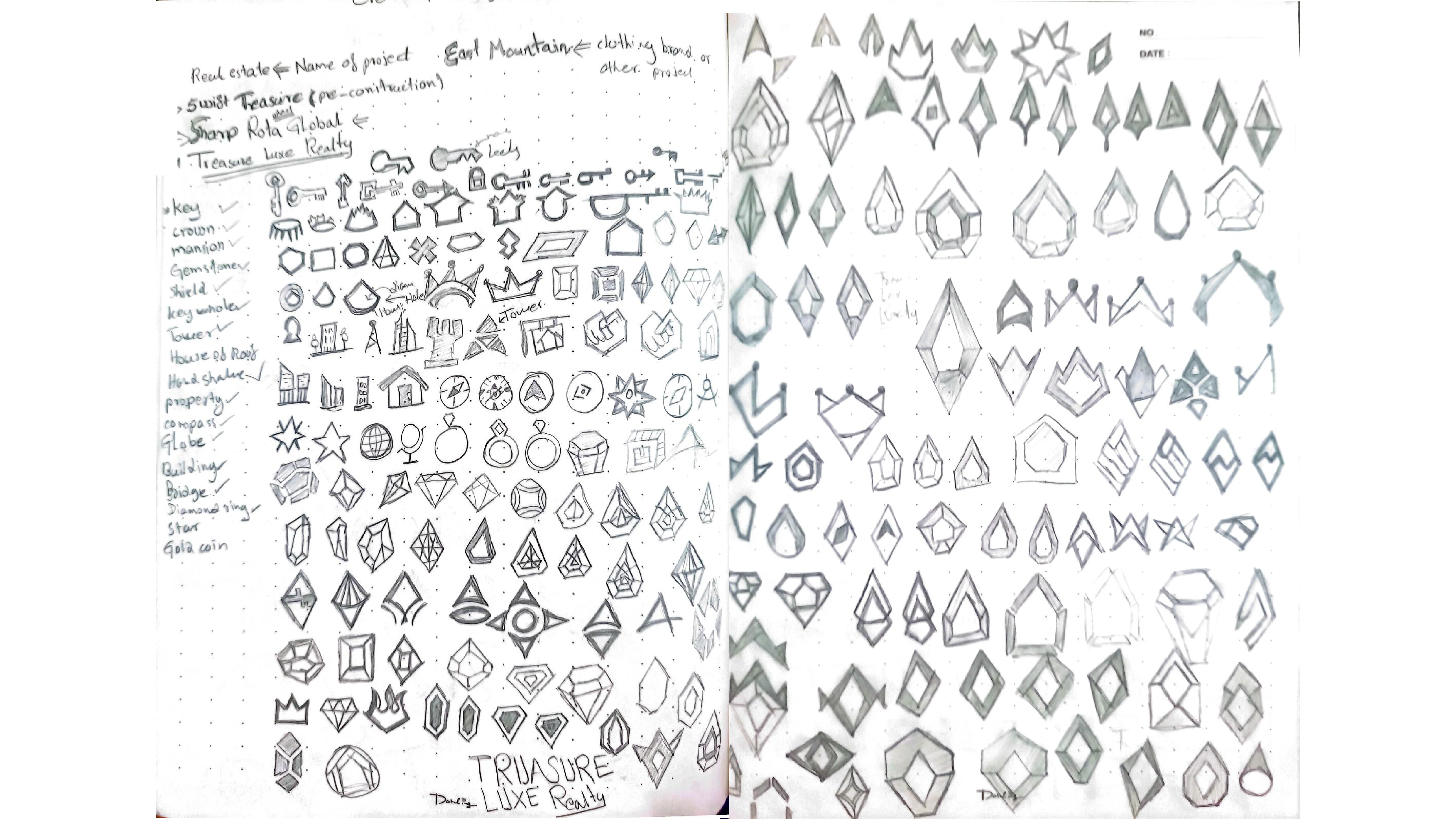The logo concept merges three key elements—a house, a diamond, and a gemstone—symbolizing security, luxury, and value. The geometric structure reflects strength and trust, essential in the real estate industry.