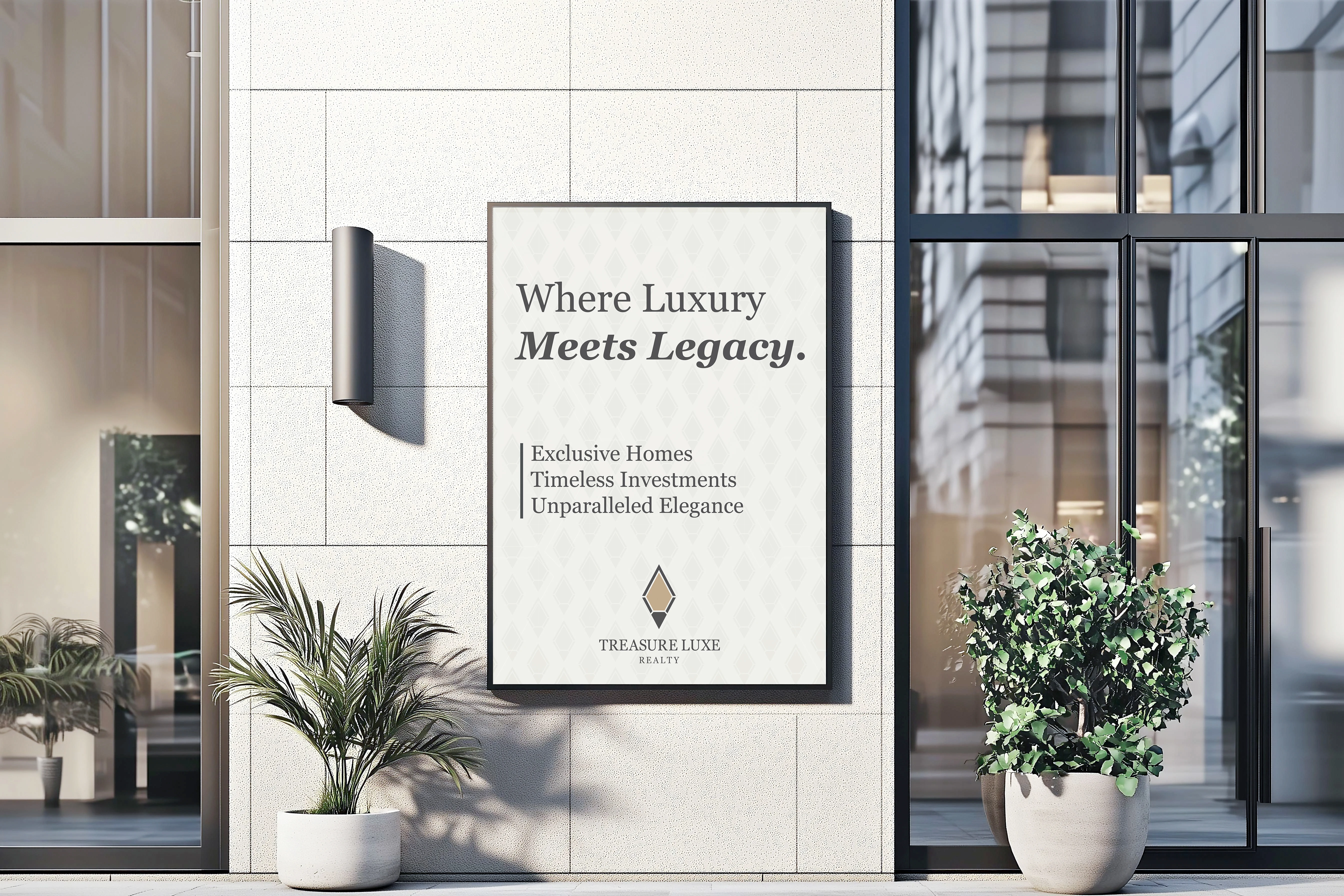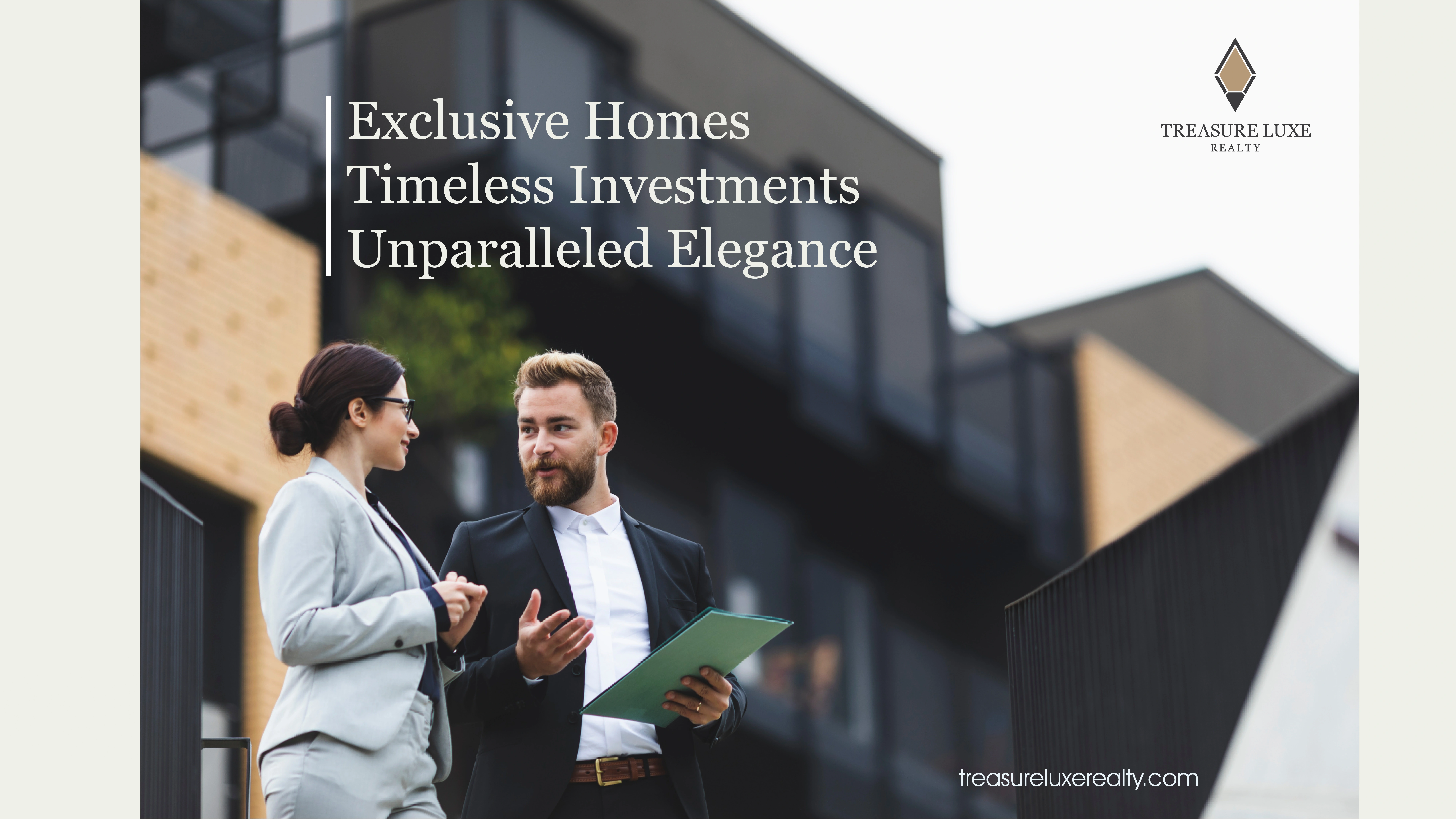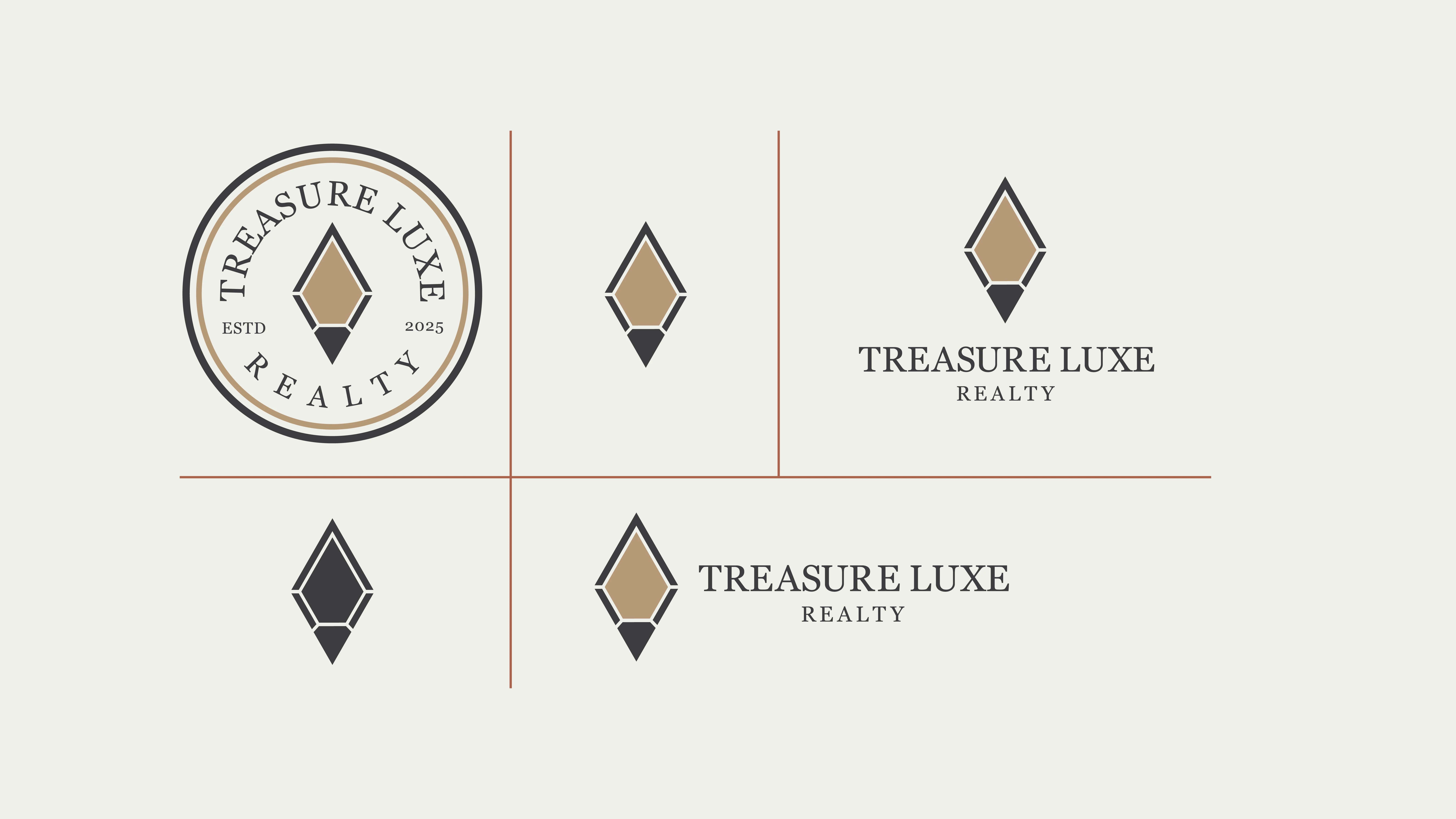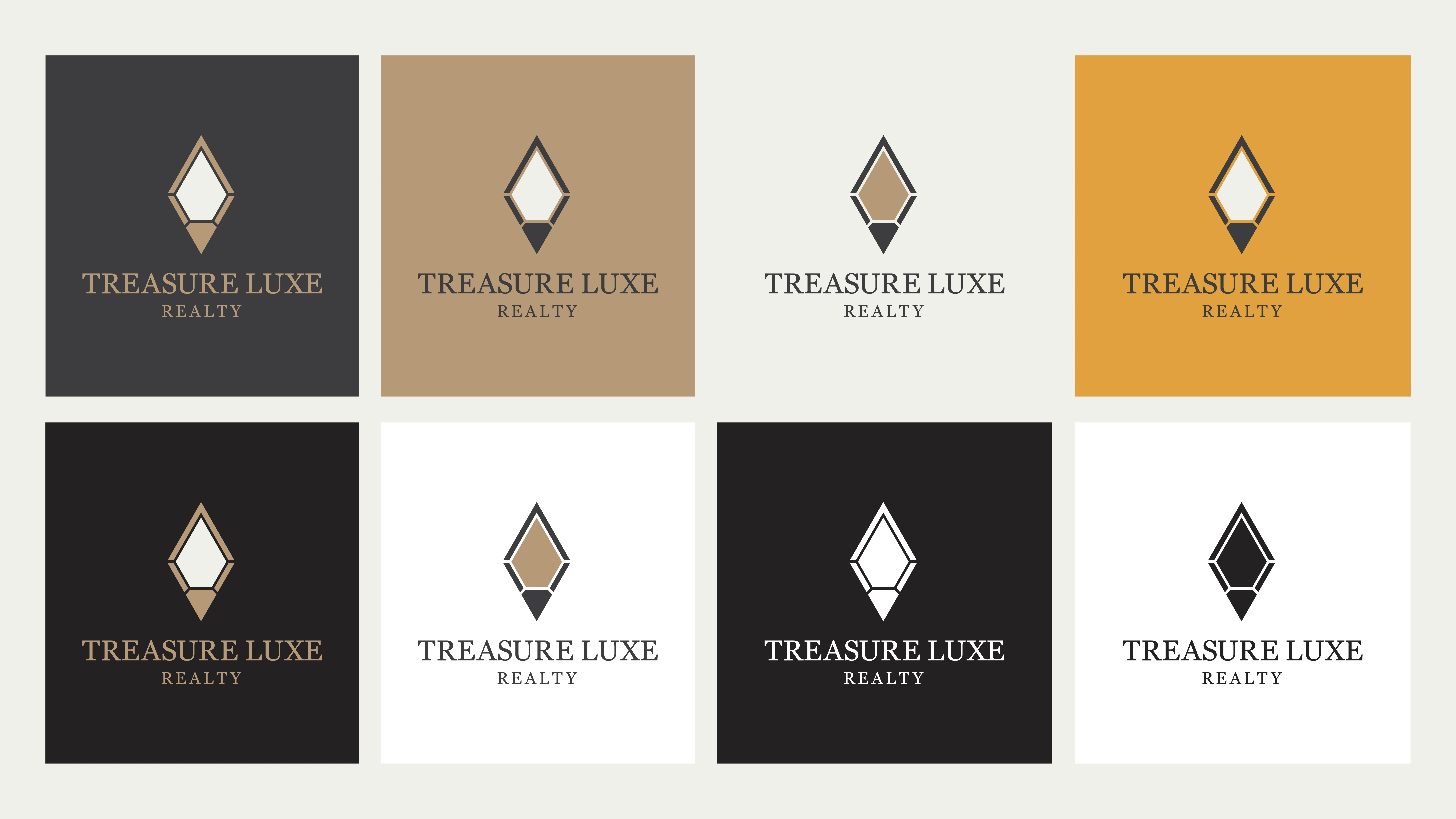 Treasure Luxe Realty is a high-end real estate brand specializing in luxury properties, premium investments, and exclusive living spaces. The brand identity embodies sophistication, prestige, and timeless elegance, catering to discerning clients seeking exceptional real estate opportunities.
