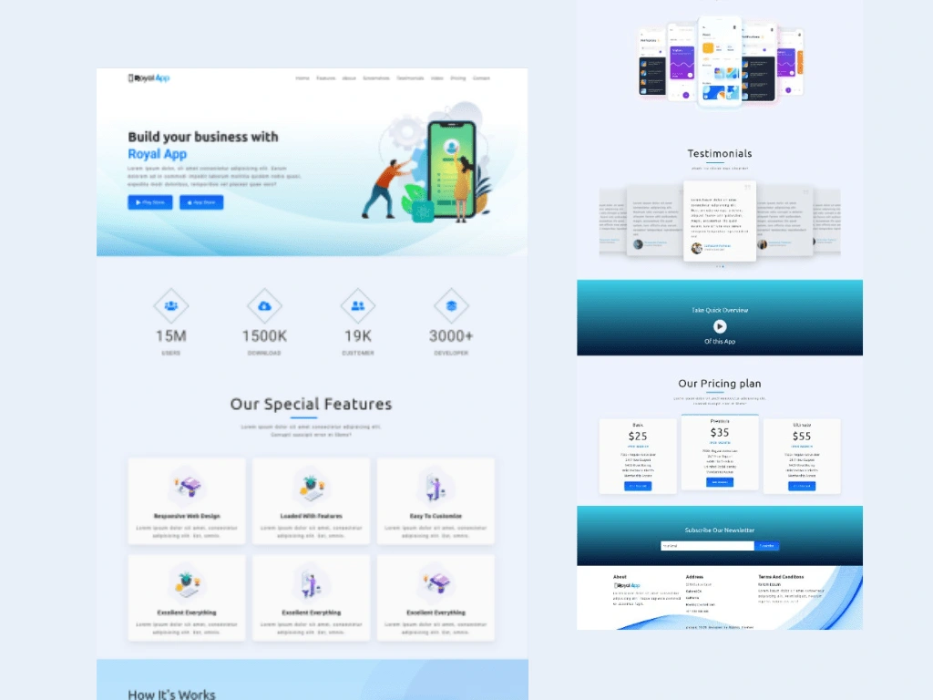 Fully responsive app landing page. Clean, modern design with smooth layout and perfect across all devices.